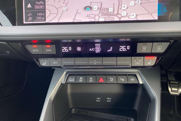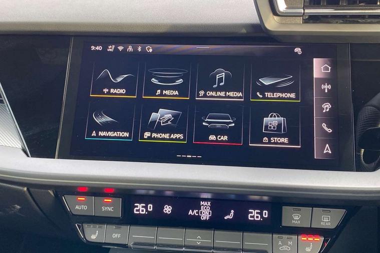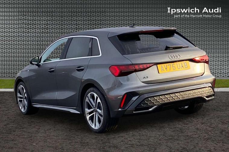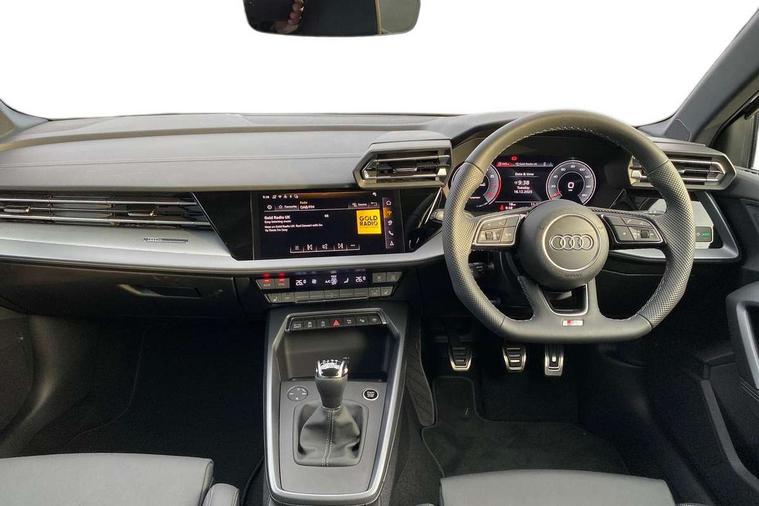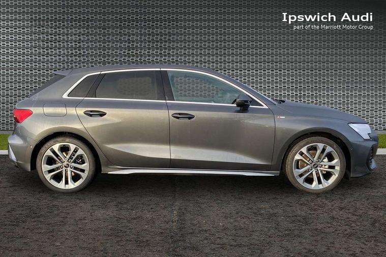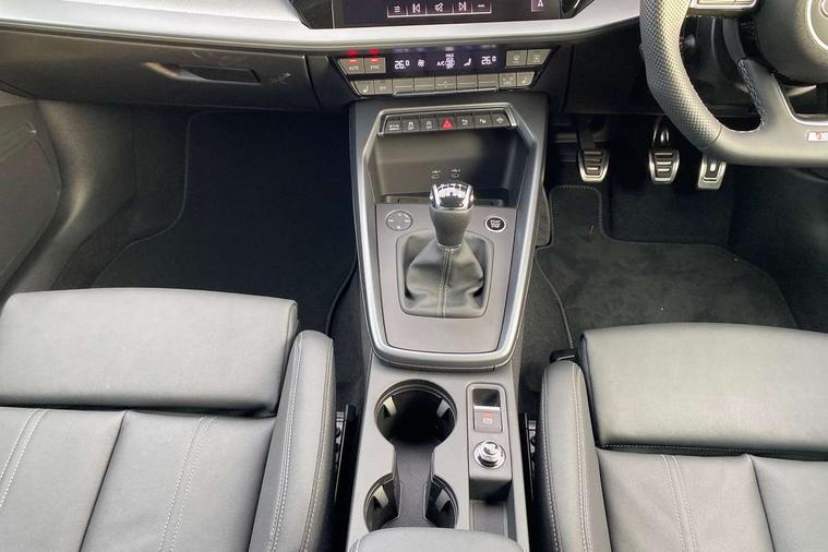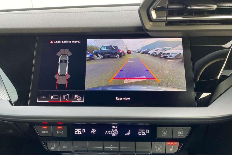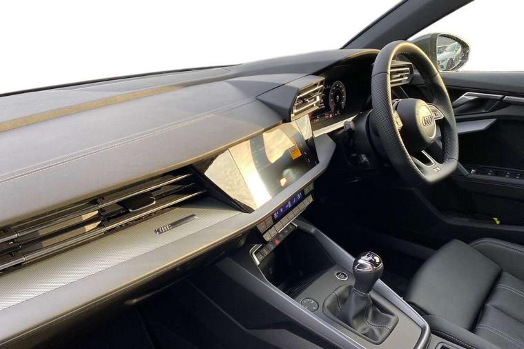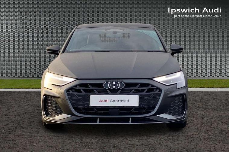 Adaptive cruise control (ACC), Adjustable speed limiter, Audi drive select (Auto, Comfort, Dynamic, Efficiency and Individual), Audi virtual cockpit plus - 12.3" full HD resolution dynamic digital instrument cluster, Automatic start/stop system with recuperation, Bluetooth interface, Camera based traffic sign recognition, Collision avoidance assistant, Driver attention and fatigue detection, e-Call (emergency call), Electromechanical power speed sensitive steering, Intersection assist, Lane departure warning system, MMI Navigation Plus with high resolution 10.1" colour touch screen display, Park Assist with parking system Plus, Reversing camera, Service indicator, Smartphone interface with app store includes wireless Apple carplay, Android auto and Amazon alexa integration, Trip computer, Voice control system with natural language interaction, Sports suspension, Audi Phonebox light with wireless charging, Audi sound system - 10 loudspeakers including centre loudspeaker and subwoofer, DAB Digital radio, USB ports with charging function in the rear, Acoustic glass windscreen, All weather light, Aluminium window trim, Auto dimming frameless rear view mirror, Automatic dynamic range control, Body colour exterior mirrors, Dipped beam, main beam, position light and turning light, Electrically adjustable/heated/folding/auto dimming door mirrors with integrated LED indications + kerb view function for passenger side, Exterior model badging, Front and rear side air inlets in grained matt black with dark liquid chrome frame, Front electric windows, Front radiator grill in high gloss dark chrome, Heat insulating glass windscreen, Illuminated door sills with aluminium inserts at the front with S logo, Intersection light, Invisible tailpipe, LED 3rd brake light, LED brake lights, LED daytime running x3, LED headlights with LED rear lights and dynamic rear indicators, LED rear number plate lights, LED reverse light, LED tail lights, Light and rain sensors, Manoeuvring light, Motorway light, Privacy glass - dark tinted rear window, rear door and side windows, Rear diffuser and grill in grained matt black with inlay in dark liquid chrome, Rear electric windows, Rear side wing doors, Rear wiper, S line bumpers, S roof spoiler, Side S line emblems on front wings, Side sill trim in dark liquid chrome, Static cornering light, 12V socket and storage compartment in front centre console, 3 seat bench in 2nd row, 3 spoke flat bottomed multi-function leather sport steering wheel, 3-zone deluxe automatic air conditioning, 4 way electrically adjustable lumbar support for driver and front passenger, 40/20/40 split folding rear seat bench, Black cloth headlining, Black front and rear floor mats, Front and rear centre armrest in artificial leather with contrasting stitching on armrests and instrument panel, Front and rear headrests, Heated front seats, Height and reach adjustable steering wheel, i-Size child seat mounting on the front passenger side and outer rear seats, i-Size and top tether on the outer rear seats, Manual boot compartment lid, Manually adjustable front seats, Rear centre armrest with cupholder, S badging on the steering wheel, Seat side bolsters, Single front passenger seat, Stainless steel pedals and front footrest in black, Twin leather upholstery with front sports seats S embossed logo, Aluminium interior elements pack - A3, Multi-coloured LED interior lighting package with Multi-coloured contour lighting of instrument panel - A3, 3x3 point rear seat belts, Driver and front passenger airbag with passenger airbag deactivation, Electronic Stabilisation Control (ESC) including ABS, ASR and EDL, First aid kit with warning triangle and 2 safety vests, Front side airbags with head airbags and interaction airbag, Hill hold assist, Pre-sense front with pedestrian and cyclist detection, Seatbelt monitoring, Tyre pressure loss indicator, Anti theft alarm, Anti-theft wheel bolts, Electronically operated child locks, Immobiliser, Black dashboard, Inlay in dark aluminium spectrum,