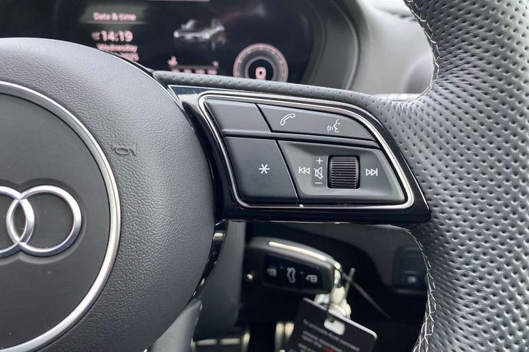 3D map display, Audi connect navigation and infotainment includes innovative services, Audi connect remote and control connects your vehicle to your smartphone, Audi drive select: S tronic - power steering assistance + engine + gearshift (modes: comfort, auto, dynamic, efficiency, individual), Audi smartphone interface - Apple carplay/Android Auto, USB connect, 2xSDXC card readers, voice control for navi, telephone, music and 3rd party apps, Audi virtual cockpit, Automatic start/stop system with recuperation, Bluetooth interface includes bluetooth audio streaming, Camera based traffic sign recognition, Cruise control, Distraction and Fatigue warning, E-call, Jukebox hard drive memory for music (10GB), Lane departure warning, MMI navigation plus with 8.8" touchscreen, Natural voice recognition, Power operated tailgate, Progressive steering, Rear parking sensors, Sport suspension, 6 passive loudspeakers, DAB Digital radio, USB type C port, Auto dimming rear view mirror, Black window trims, Body colour door mirrors, Electrically adjustable, folding, auto dimming and heated door mirrors with integrated LED side indicators, Front windscreen with grey tinted sunband, LED daytime running lights, LED headlights with dipped beam, high beam, position lights, indicators, LED rear lights, LED third brake light, Privacy glass - dark tinted rear and rear side windows from B-pillar backwards, Rear side wing doors, Rear wiper, S Line badges on the front wings, S Line body styling - front and rear bumpers, side skirts, radiator grille, rear diffuser insert and front air intakes, Variable front intermittent wipers, Wheel arch trims in manhattan grey, 12V socket in front, 3 seat bench in 2nd row, 3 spoke multi-function leather steering wheel with S badging, 4-way electric lumbar support for front seats including manual seat height adjustment for both front seats, 60/40 split folding rear seat bench, Black carpets, Black cloth headlining, Front and rear head restraints, Front centre armrest, Front sport seats, Front/rear floor mats, Height/reach adjust steering wheel, Illuminated door sill trims with S logo, ISOFIX child seat mounting in front passenger and rear outer seats, Manual air conditioning, Single front passenger seat, Stainless steel pedals, 3x3 point rear seatbelts, 6 airbags - Front, curtain and front side airbags, Electromechanical parking brake, Electronic stabilisation control including ABS, ASR and EDL, Front passenger airbag deactivation, Hill hold assist, Pre-sense front with pedestrian recognition, Seatbelt monitoring, Tyre pressure warning light with visual and acoustic warning, Warning triangle and first aid kit, Anti theft wheel bolts, Electronically operated child locks, Remote central door locking, Thatcham category 1 alarm, Aluminium interior element, Black dashboard, Gloss black centre console, Matt brushed aluminium trim inlays, Tool kit,