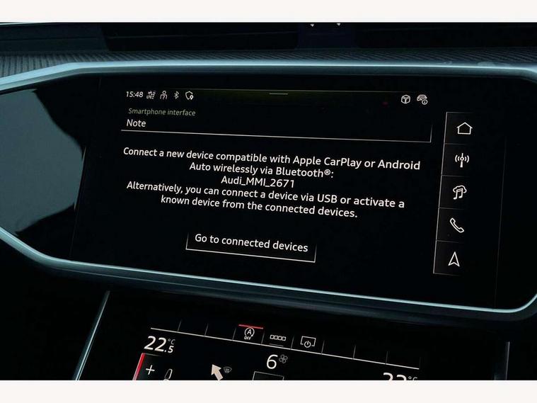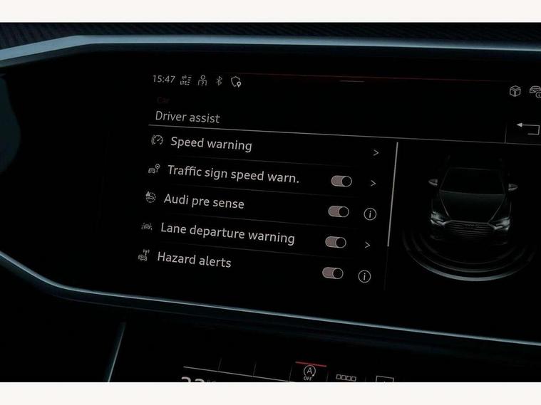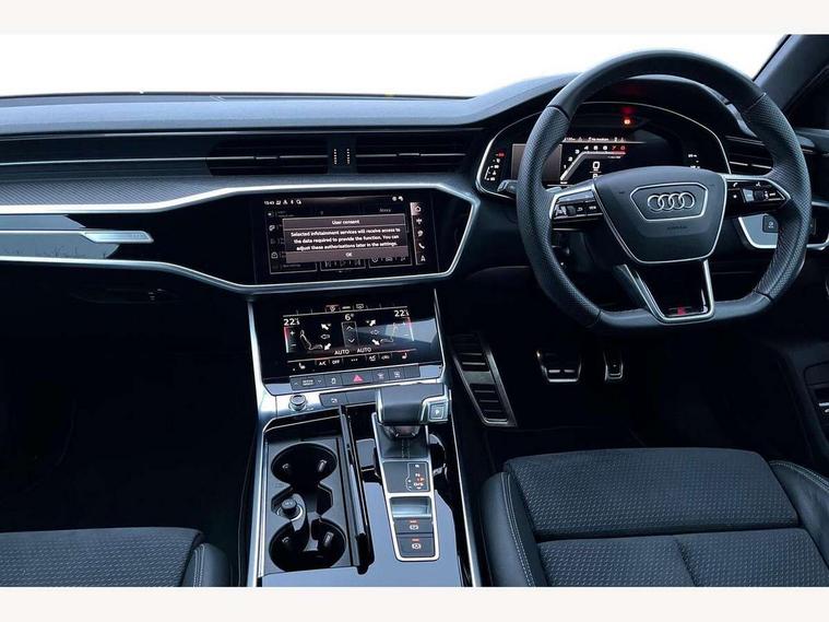 Audi connect safety and service (e-call), Audi connect with Amazon Alexa Integration, Audi drive select, Audi parking system plus - acoustic and visual park assist system for front and rear, Audi virtual cockpit, Automatic start/stop system with coasting functionality, Bluetooth interface, Camera based traffic sign recognition, Electric boot lid release, Lane departure warning system, MMI navigation plus with 10.1" and 8.6" touch screens, Progressive steering, Rear view camera, Service interval indicator, Smartphone interface includes wireless Apple carplay/Android Auto, Voice control system, Sports suspension, Audi front music interface, Audi sound system, Auxiliary input socket, DAB Digital radio, USB connection, Audi beam, Electric front/rear windows, Electrically adjustable heated and folding + automatically dimming exterior mirrors with memory function, Frameless auto dimming interior rear view mirror, Front intermittent wipers, Heat insulating darkened glass in side and rear windows, Heat insulating glass in windshield, LED rear lights with dynamic indicators, LED signature front daytime running light, LED third brake light, Matrix LED headlights, Matt black rear diffuser with diffuser strip and tailpipes in chrome, Matt black side air intake grille with inlay in matt aluminium, Omission of output/technology badging, Privacy glass, Radiator grille in anthracite black matt, single frame in chrome and horizontal struts in matt aluminium silver, Rain and light sensors, Rear boot, Rear side wing doors, 2 zone deluxe electronic climate control, 40/20/40 split folding 3 rear seat bench in 3 parts with rear centre armrest, Audi phone box light, Black cloth headlining, Electrically adjustable front seats including seat height, fore/aft position, backrest angle and 4-way lumbar with memory for driver's seat, Front and rear floor mats, Front centre armrest, Front head restraints, Heated front seats, Height/reach adjust steering wheel, Illuminated door sill trims with S logo, Illuminated sun visors with vanity mirrors, Leather gear knob, Rear headrests, Single front passenger seat, Stainless steel pedals and foot rest, Tool kit and car jack, Black styling package plus - A6 Black edition, LED Interior Ambient Lighting Pack - A6, Non smoking pack - A6, S line exterior style pack - A6, 3 point seatbelts on all seats, Airbags - Front side, front and rear including head, Audi pre-sense front, EBD - Electronic brakeforce distribution, Electromechanical parking brake, Electronic Stability Control (ESC) including ABS, ASR and EDL, Extended pedestrian protection measures, ISOFIX child seat mounting for front passenger seat and ISOFIX child seat mounting with Top Tether for outer rear seats, Manual child proof rear door locks, Seatbelt monitoring, Tyre pressure warning light, Warning triangle and first aid kit, Anti theft alarm with tow away protection, Anti-theft wheel bolts and wheel loosening detection, Immobiliser, Keyless Go, Remote central locking, Carbon twill inlays,