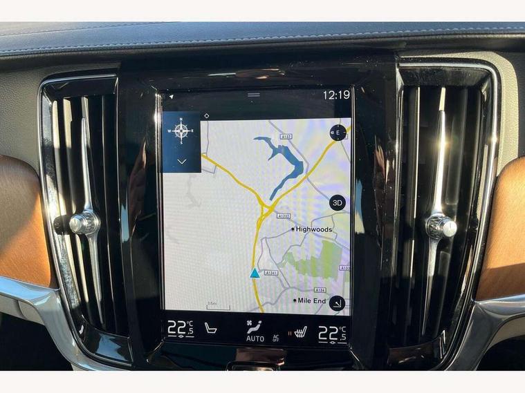 12.3" Active TFT crystal driver's instrument display, 9" centre console touch screen, Adjustable steering wheel force, Bluetooth Handsfree Phone Connection, Drive mode settings, Handsfree bootlid opening/closing, Intellisafe Assist (Pilot Assist and Adaptive Cruise Control), Lane keep assist with driver alert control, Oncoming Lane Mitigation, Power operated tailgate, Sensus navigation with European mapping and traffic information, Speed limiter, Speed sensitive steering, Voice activated control for key functions, Volvo on call, 8 speed automatic transmission with start/stop + manual change functions, DAB Radio (Digital Audio Broadcasting), Steering wheel remote infotainment controls, Active bending headlights with adaptive shadow technology, Adaptive brake lights with high level LED brake lights, Auto dimming interior + exterior mirrors, Automatic headlamp levelling, Automatic LED Headlights + Active high beam incorporating daytime running lights, Chrome door handles, Chrome front lower bumper, Chrome lower door mouldings, Chrome window surround, Colour coordinated auto folding and heated power door mirrors, Dual integrated exhaust pipes, Front and rear power windows, Headlight cleaning system, High gloss black front grille with chrome inserts, Home safe and approach lighting, Integrated roof rails in silver, LED front fog lights with static cornering light function, Puddle lights in exterior door handles, Rain sensor with automatic windscreen wiper activation, Roof antenna, Roof spoiler, Twin exhaust tailpipes with chrome sleeves, Visible VIN plate, 60/40 split folding rear seat, A-pillar parking ticket holder, Ambient door and instrument panel lighting, B Pillar ventilation, Bright metal luggage threshold, Cargo divider with grocery bag holder, Centre armrest storage illumination, Centre console cupholders and storage, Colour coordinated nappa Leather Key Integrated Remote, Driver's side lower dashboard storage compartment, Extended front seat cushions, Front and rear aluminium tread plates, Front footwell and side step illumination, Front head restraints, Front seat backrest massage, Front tunnel net pocket, Front/rear door pockets and front cupholder illumination, Front/rear reading lights, Heated front seats, Height/reach adjustable steering column, Illuminated front and rear tread plates, Illuminated gear knob, Illuminated glovebox with lock, Illuminated luggage compartment, Illuminated tailgate, Illuminated vanity mirrors + ticket holder, Isofix system on outer rear seats, Load cover, Load protection net, Luxury floor mats, Multicolour theatre lights, Nappa soft leather perforated /ventilated upholstery, Passenger seat lumbar support, Power driver seat with multi directional lumbar support and memory for seat and exterior mirrors, Power Folding Rear Seat Backrests and Headrests, Power front seat side support, Power passenger seat with memory, Rear armrest with storage + cupholders, Rear footwell and side step illumination, Ski hatch, Sports steering wheel with gear shift paddles, Underfloor cargo storage, 3x3 point rear seatbelts, Active bonnet, City safety with steering support with Pedestrian + cyclist + large animal detection + front collision warning with full auto brake, Drivers knee airbag, Dual stage driver/passenger airbags, Fasten seatbelt reminder, Front seats SIPS airbags, Hill start assist, IC (Inflatable Curtains) - Full Length, Passenger airbag cut-off device, Power parking brake with auto hold function, Road sign information display, Run off Road Mitigation, Run off Road Protection, Seatbelt pre-tensioners, Seatbelt reminder and pretensioners for all seats, SIPS (Side Impact Protection System), Slippery road and hazard light alert, Stability and Traction Control with Spin control, Engine Drag Control and Corner Traction Control, Tyre pressure monitoring system, Vehicle deceleration control with Anti-lock Brake System, Electronic Brake Distribution and Emergency Brake Assist, Warning triangle and first aid kit, WHIPS whiplash protection system - front, Anti-theft alarm including immobiliser/volume sensor + level sensor, Key integrated remote control central locking + fuel flap with deadlocking system and auto open/close power windows, Keyless drive with remote tag, Locking wheel nuts, Private locking for tailgate, Tailored Instrument Panel and Door Tops with Contrast Stitching,