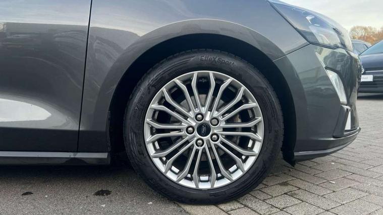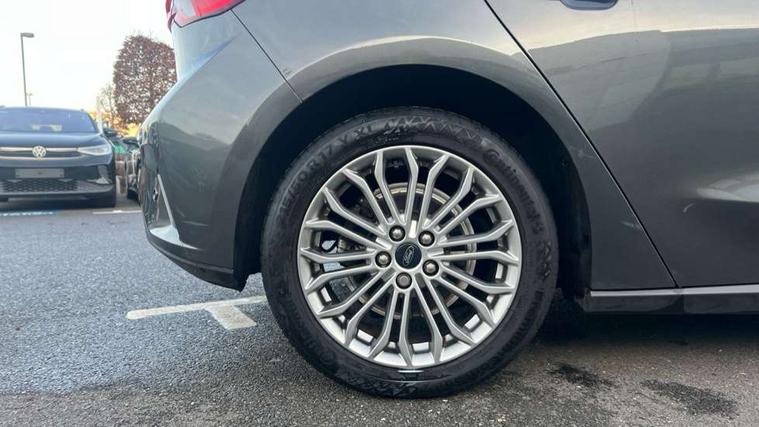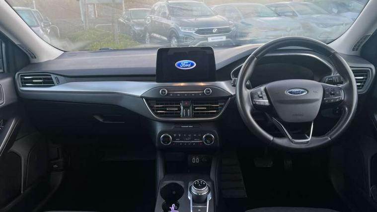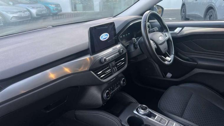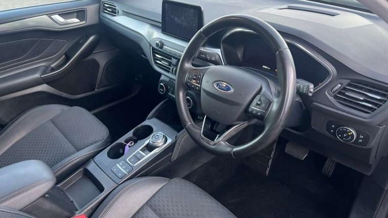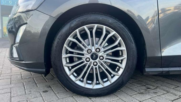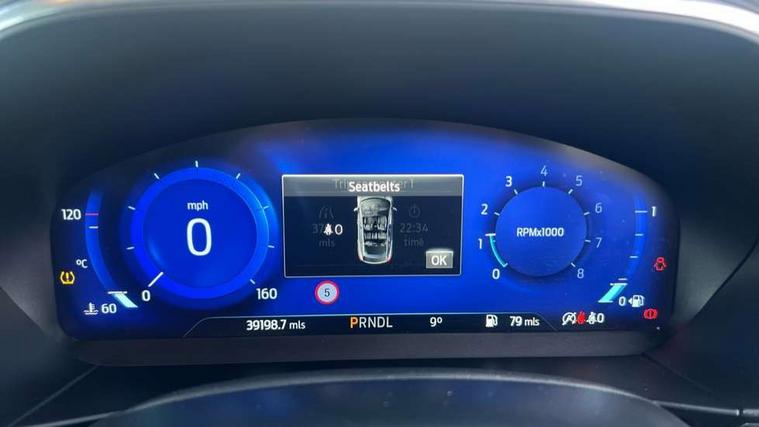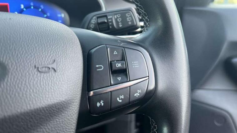 Bluetooth system, Digital clock, Easy fuel capless refuelling system, Eco mode, Ford pass connect, Ford SYNC 3 nav system with DAB radio, 8" colour touch screen, voice control, app link, Apple car play/Android auto and 4.2" TFT coloured cluster, Front and rear parking sensors, Intelligent speed assist, PAS, Rotary gear shift dial, Selectable drive mode, Trip computer, 2 USB ports, Aux input, 'Quickclear' heated windscreen/heated washer jets, Auto dimming rear view mirror, Auto headlamps (on/off), Automatic rain sensing wipers, Body coloured bumpers, Body coloured door handles, Body coloured electrically operated and heated door mirrors with side indicators, Electrically operated front and rear windows with one touch opening and closing, Front fog lamps with cornering function, Front variable intermittent wipers with electric wash, Heated rear window, LED daytime running lamp, LED rear lamps, Power folding door mirrors with puddle lights, Rear privacy glass, Tailgate wash/wipe, Unique door and instrument panel inserts, Upper grille with chrome surround and horizontal bars, 3 spoke leather trimmed steering wheel with integrated audio controls, 6 way power adjustable driver seat, 60/40 split back and cushion rear seats with 2 height adjustable headrests, Ambient lighting, Centre console with sliding front armrest, Dual zone electronic air temperature control, Front passenger seat manual height and lumbar adjust, Front/rear floor mats, Heated front seats, Height adjustable front headrests, Isofix child seat preparation, Paddle shift controls, Part leather upholstery, Reach + rake adjustable steering column, Rear centre headrest, Soft console knee pads, ABS+Electronic Brake force Distribution, Auto hold function, Driver airbag, Electronic parking brake, Electronic stability control, Front and rear seatbelt reminder, Front inertia reel height adjustable seatbelts with pre-tensioners, Front passenger airbag, Front side airbags, Hill start assist, Passenger airbag deactivate switch, Post collision braking, Pre collision assist with autonomous emergency braking and pedestrian/cyclist detection, Side curtain airbags, Three rear inertia reel lap/diagonal seatbelts, Tyre pressure monitoring system, Ford keyfree system with Keyless entry and keyless start, MyKey system, Remote central locking & engine immobiliser, Thatcham category 1 alarm, 17" 10x2 spoke luster nickel alloy wheels, Mini steel spare wheel,