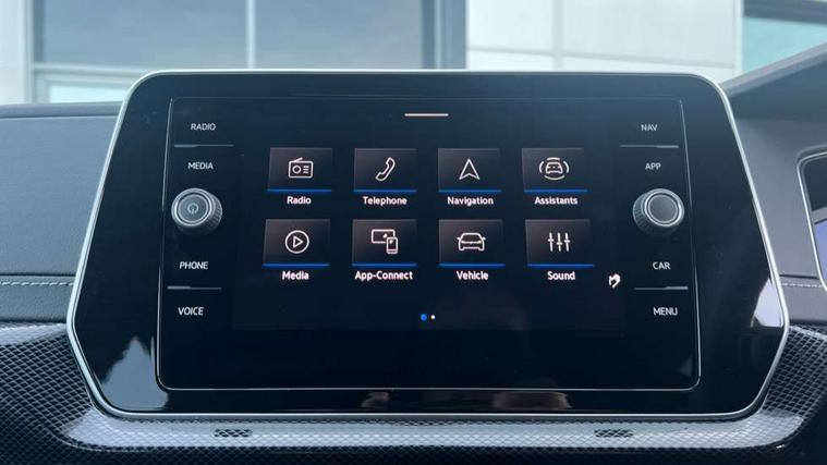 'Lights On' Reminder warning buzzer, 10.25" Digital cockpit pro, Advanced driver attention and drowsiness monitor, Blind spot monitoring, Car information display, Driver profile selection including ECO function, Dynamic road sign display, E-Sim card for online connectivity, eCall emergency call system, Front and rear parking sensors, Front assist, forward collision warning, autonomous emergency braking and speed limiter, Low washer fluid warning light, Multifunction computer with visual gear change recommendation for fuel consumption, Multifunction front facing camera for distance control, Operating permit alteration, Power assisted steering, Predictive adaptive cruise control, Preparation for navigation system with media and internet package, Preparation for We connect and We connect plus, Semi-automated driving assistance, travel assist including lane keeping system Lane Assist and emergency assisst, Speedo, rev counter, electronic odometer, trip, service interval display, exterior temperature and fuel gauge, Warning sound and light for doors and tailgate open, Warning sound and light for front seatbelts unfastened, Wireless Car net app connect with Apple CarPlay, combined functionality of Apple CarPlay/Android Auto and MirrorLink, Wireless charging, Misfuel prevention device, Start-stop system with battery regeneration (recuperation - energy recovery during braking), 2 USB C ports in front, 2 USB charging sockets on the centre console in the rear charging capacity upto 45W, Diversity antenna for FM reception, Music playback - MP3, WMA and AAC files, Radio, Automatic dimming interior rear view mirror, Automatic hazard lights activation under emergency braking, Automatic headlight control with LED separate daytime running light and coming home and leaving home feature, Body colour door handles, Body colour door mirrors, Body coloured bumpers, Dynamic headlight range control with self adjusting whilst driving, Electric folding door mirror, adjustable, heated with front passenger exterior mirror lowering function, Exterior mirrors convex on the left and aspherical on the right, Front and rear electric windows, Front door sill protectors with R-Line logo, Galvanised body, Heat insulating and laminated safety glass windshield, Heat insulating darkened glass in side and rear windows, High Beam Assist, automatic sensing for switching between dipped and main beam, LED rear combination lights, LED third brake light, Lower door sills and door pillars in black, Privacy glass for rear side windows and rear window, Rain sensor, Rear fog light on one side, reversing light on both sides, Rear side wing doors, Rear window aerial, Rear window wiper with intermittent control, Reflectors in all doors, Scuff plates, Tailgate with integrated roof spoiler, 12V Accessory socket in centre console, 2 Front and rear reading lights incorporating LED technology, 3 rear head restraints, 3 seat bench in 2nd row, 60/40 split folding rear seat backrest, Air care climatronic 2 zone air conditioning system, Ambient lighting, Brushed stainless steel pedals, Chrome plated radiator grille inserts, air vent surrounds and light switch surrounds, Cloth upholstery, Comfort front sport seats, Door and side trim panel, Drawer under drivers seat, Driver and front passenger sunvisor with vanity mirror, Dust and pollen filter, Front + rear carpet mats, Front centre armrest with storage compartment, Front footwell illumination, Front seat back storage pockets, Glove compartment door with light, Heated front seats, Heating and fresh air system with 4 stage blower, Height/reach adjust steering wheel, Instrument lighting white adjustable panel illumination, Interior light with switch off delay and dimmer, Isofix anchors for child seats on outer rear seats and front passenger seats, Leather gearshift handle, Leather wrapped multifunction steering wheel, Luggage compartment floor, Luggage compartment lighting, Manual front seats with height adjustment, Padded dashboard, Removable luggage compartment cover, Single front passenger seat, Storage compartment in drivers and front passengers door, Titanium black roof lining, Unsplit sliding rear seat bench, 3 point outer rear seat belts with ECE label, 3 Point seatbelt for centre rear seat, Anti-lock Braking System (ABS) with Hydraulic Brake Assist (HBA), Automatic post collision braking system, Disc brakes in front, Disc brakes in rear, Driver and front passenger safety-optimised head restraints, Drivers and Front Passengers airbags with front passengers airbag deactivation switch, ESC with EDL and ASR (traction control), Extended and predictive pedestrian/cyclist protection, Front and rear passenger curtain airbag system including front side airbags, Height adjustable front 3 point seatbelts + pretensioners, Hill start assist, Pre crash preventive occupant protection, Proactive passenger protection system in combination with front assist, Rear door child safety locks, Rigid safety cell with front and rear crumple zones, Single tone horn, Tyre pressure loss indicator, Volkswagen roadside assistance, Alarm with interior protection, Anti theft alarm system, Electronic engine immobiliser, Remote tailgate unlocking using key fob, Titanium Black Decorative inserts - R Line, Low rolling resistance tyres,