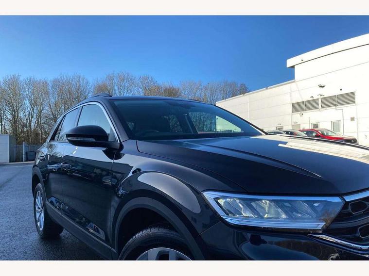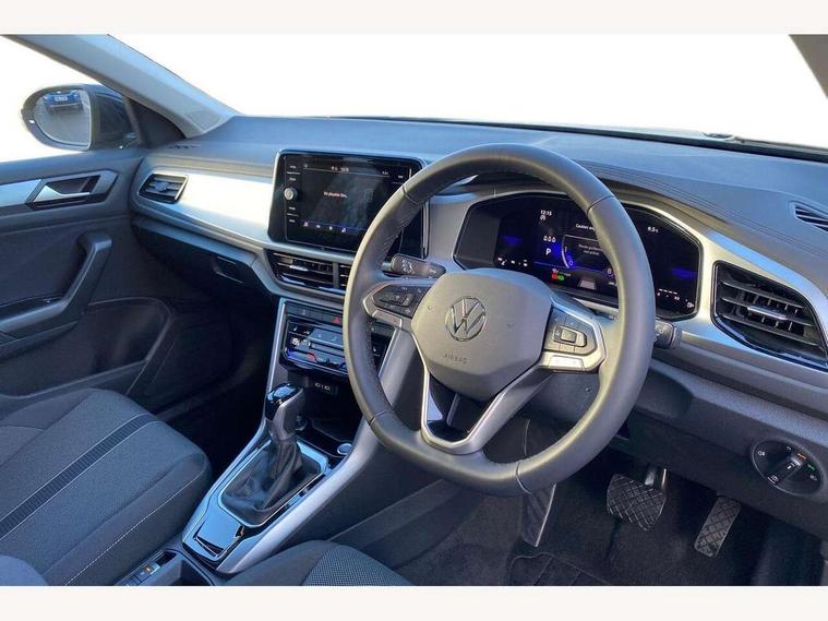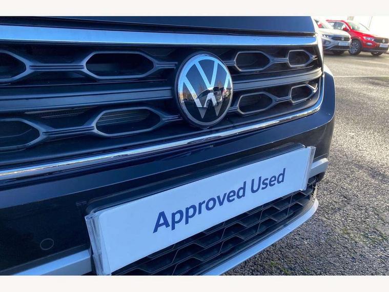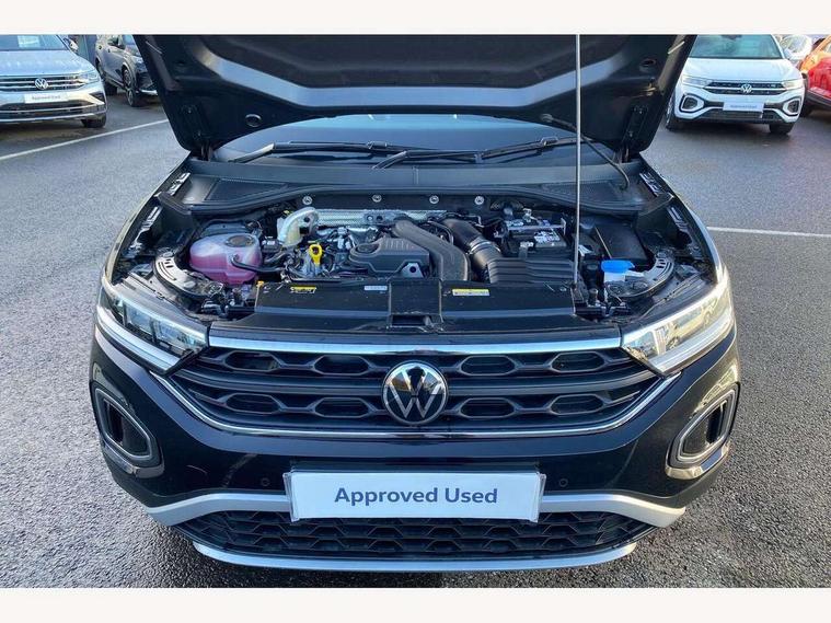 Advanced driver attention and drowsiness monitor, Dynamic road sign display, Emergency call service, Lane keeping system Lane Assist, Mobile phone interface, Modified key software - reduce switch off time for key status change to Long no motion, Online services, Park assist including front and rear parking sensors, Power assisted speed sensitive steering, Rear view camera, Service interval indicator, Tailgate/trunk lid release from outside, Think blue trainer driver tips and journey analysis, Warning sound and light for front seatbelts unfastened, Wireless app connect, Battery regeneration during braking, Front shock absorption, Rear shock absorption chassis with increased ride height, Start/stop function with battery regeneration, DAB Digital radio, Diversity antenna for FM reception, Music playback - MP3, WMA and AAC files, Premium USB cable in choice of either Apple or Android smartphone compatibility, SD card slot, Simultaneous pairing of 2 compatible mobile devices, Title and cover art display, We Connect and We Connect Plus functionality, Auto dimming interior rear view mirror, Automatic hazard lights activation under emergency braking, Automatic headlight control with LED separate daytime running lights with coming/leaving home function, Black roof rails, Body coloured bumpers and radiator grille with chrome trim and front fog lamps with chrome bezel, Body coloured exterior mirror housings and door handles, Electrically adjustable and heated door mirrors, Extended roof spoiler, Exterior mirrors aspherical on driver side, convex on front passenger side, External USB type C socket and charging sockets, Front windscreen wiper with intermittent wipe and 4 position delay, Heated rear window, LED 3rd brake light, LED rear combination lamps, LED rear number plate lights, Power windows with comfort operation and circuit breaker, Privacy glass for rear side windows and rear window, Rain sensor, Rear exhaust tailpipe, Rear fog light on one side and reversing lights on both sides, Rear side wing doors, Rear wash/wipe with intermittent wipe setting, Remote electrically foldable door mirrors, puddle lights and reverse activated passenger's door mirror, 12V power socket in centre console, 3 rear head restraints, 3 seat bench in 2nd row, 4 load lashing points in luggage compartment, Air care climatronic air conditoning system with active combination filter and 2-zone temperature control, Black stitching for floor mats, Ceramique roof liner, Cloth upholstery, Door and side trim panel in cloth, Drawer under drivers seat, Driver/front passenger seat height adjustment, Front centre armrest, Front comfort sports seats, Front cupholders x 2, Front reading light, Front seat back storage pockets, Glove compartment door with light, Instrument lighting, white adjustable panel illumination, Interior ambient lighting and surround lighting, Interior light delay, Isofix child seat preparation, Leather gearshift handle, Load-through provision with cup holder when folded down ('Unsplit rear seat bench, split folding backrest, with centre armrest), Luggage compartment lighting, Lumbar support for driver's and front passengers seat, Non-folding front passenger seat backrest, Single front passenger seat, Storage compartment in left and right luggage area, Storage compartment in rear doors, Storage compartments in driver and front passenger doors, Sunvisors with illuminated vanity mirrors, Variable boot floor, height adjustable and removable, Driver assistance pack without proactive passenger protection - T-Roc Life/Match, 3 point height adj front seatbelts + pretensioners, 3 point seatbelts in outer rear with ECE label, ABS, Child locks on rear doors, City emergency braking and pedestrian monitoring, Driver and front passenger airbag with front passenger airbag deactivation, Driver and front passenger safety-optimised head restraints, Drivers seatbelt reminder, Electronic parking brake, Electronic Stability Control (ESC) inc EDL (Electronic Differential Lock) and ASR (Traction Control), Front and rear passengers curtain airbag system including front side airbags, Front disc brakes, Hill start assist, Predictive pedestrian protection, Rear disc brakes, Two tone horn, Tyre pressure loss indicator, Volkswagen roadside assistance, Alarm with interior protection, Keyless locking and starting system keyless access with safelock, Pewter matt decorative inserts for intrument panel, centre console and door panels at the front, Trims for alloy wheels,