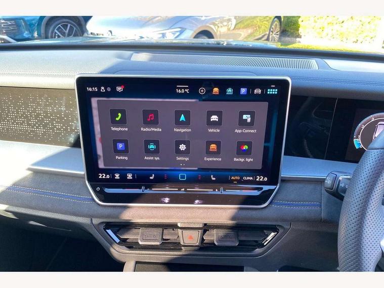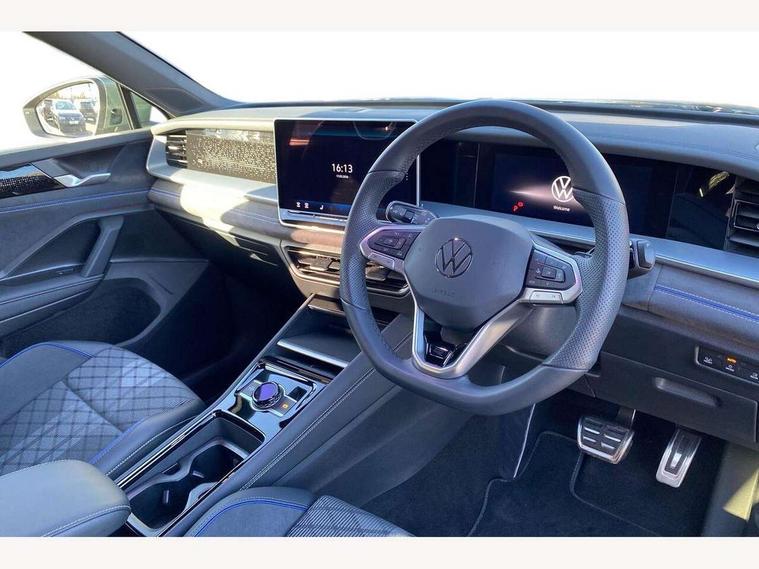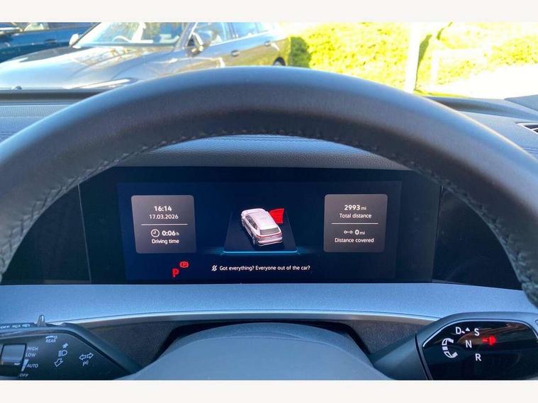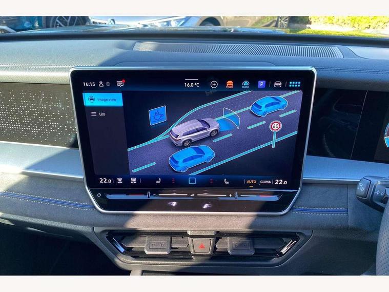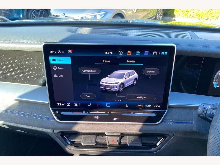 Adaptive cruise control (ACC), Digital Cockpit Pro - 10.25" high resolution dash display screen with customisable menus and information, Driver alert system, Driver attention monitoring system, Dynamic road sign display, E-Sim card for online connectivity, eCall emergency call system, Lane change system, Side assist, Rear traffic alert and Exit warning system, Multifunction front facing camera, Oncoming vehicle braking when turning including swerve support, Start/stop system with regenerative braking, Voice activation spoken voice commands for telephone and navigation system, Warning signal and warning light for front and rear seatbelts not fastened, Wireless App-Connect, Front wheel drive, Digital radio reception (DAB), Diversity antenna for FM reception, Air intake with Chrome trim, Auto dimming interior rear view mirror, Automatic headlight control system, Body colour door handles, Chrome moldings on the side windows, Coming/leaving home lighting function, Dynamic headlight range control with dynamic cornering light, Exterior mirrors convex on the left and aspherical on the right, Heat insulating glass in side and rear windows, Illuminated Volkswagen logo rear with animation, Laminated safety glass winshield, heat insulating, LED 3rd brake light, LED separate signature day time running light, Puddle lights, Rain sensor windscreen wipers, Rear fog light on one side, reversing light on both sides, Rear side wing doors, Rear wiper, Reverse activated passenger's door mirror, Surround lighting with welcome light, Volkswagen logo in front, illuminated lighting animation with wake up/goodbye scenario and illuminated door handles, 10 colour interior ambient lighting, 12V outlet in center console rear and in luggage compartment, 3 rear headrests, 3 rear seat bench in 2nd row, backrest split folding with centre armrest and 2 seats in 3rd row of seats, Black roof lining, Brushed stainless steel pedals, Carpet mats, front and rear, Centre console with illuminated storage compartment with sliding cover and two drinks holders, Chrome elements on the mirror switch and power window switches and door pulls, Door and side trim panel insert in Art velour, Flat luggage compartment floor, Front centre armrest, Front scuff plates in alumium, ISOFIX anchors for child seats on outer rear seats and front passenger seat compatible with i-Size, Mechanical rear seat release, Power adjustable lumbar support in front, Single front passenger seat, Sports comfort seats in front, Sun visors with illuminated vanity mirrors, 3 Point seat belts in front with pretensioners, 3 point seatbelts in outer rear with ECE label, Autonomous emergency braking front assist with pedestrian and cyclist monitoring, Driver and front passenger airbag with front passenger airbag deactivation, Electronic parking brake with auto hold, First aid kit with warning triangle and safety vest, Front and rear curtain airbags, Front and rear side airbags, Front centre airbag, Front disc brakes, Hill start assist, Rear disc brakes, Two tone horn, Decorative material set R-Line, Interior door handle in matte chrome,