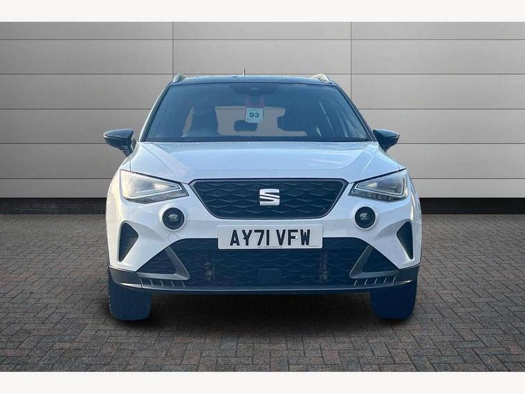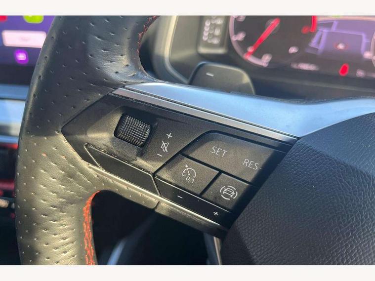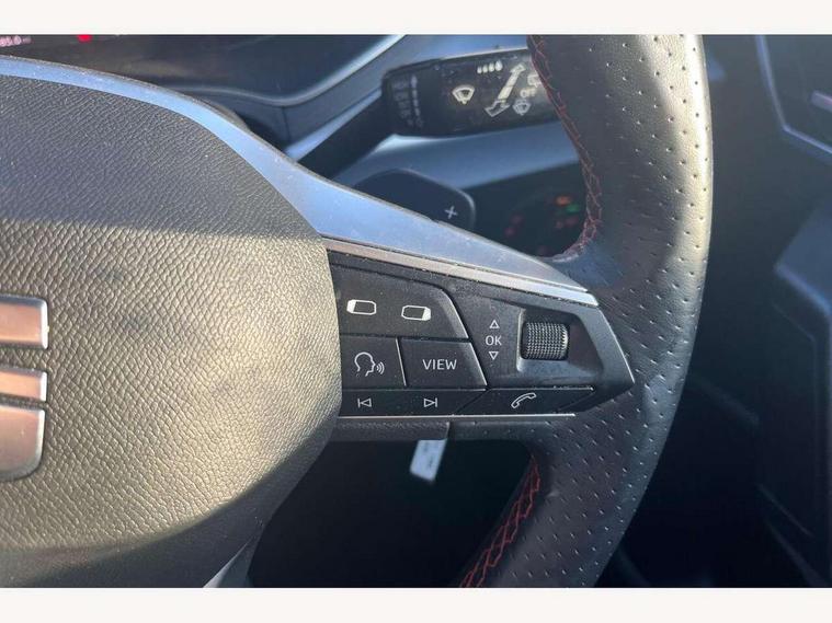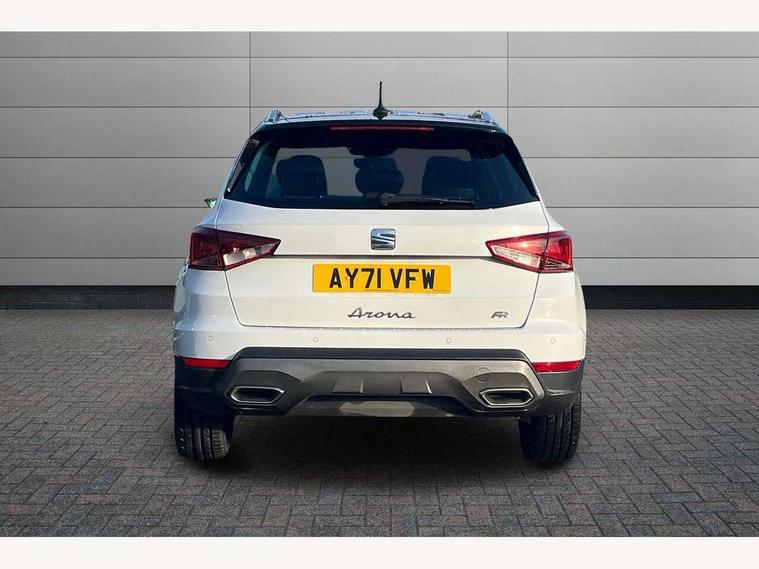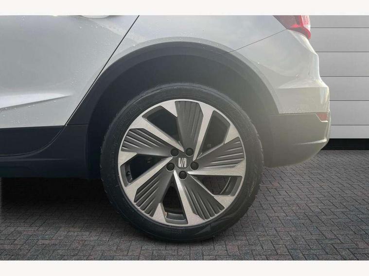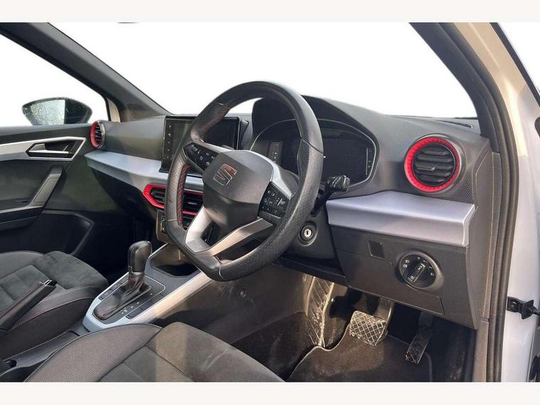 Digital cockpit, Electric speed sensitive power steering, Full Link Smartphone Integration with Mirror Link, Apple Car Play, Google Android Auto with USB Type C cable for Apple and Android compatibility, Lane keeping system, Rear parking sensor, Seat connect with safety, service, remote and online, SEAT Drive profile - Four different models normal-sport-eco-individual, steering response, throttle response and gear shifts mode, Bluetooth interface for hands free and audio streaming, DAB digital radio and AM/FM radio, Steering wheel mounted audio controls, Anti theft roof antenna, Auto dimming interior rear view mirror, Automatic activation of hazard warning lights, Body coloured bumpers, Body coloured door handle inserts, Chrome roof rails and window surrounds, Chrome window trim, Dark tinted rear windows, Electric front/rear windows, Electrically adjustable, heated and folding door mirrors, FULL LED automatic headlights with dynamic headlight range control, coming and leaving home, LED daytime running lights, LED rear tail lights and licence plate lights, Protective side mouldings, Rain sensing wipers, Rear spoiler, Rear window wash/wipe, Roof colour door mirrors, Twin exhaust pipe styling hidden exhaust pipe, Visible VIN plate, Windshield wiper with intermittent control and potentiometer, 2 cupholders, 60/40 split folding rear seat, Aircare filter, Black interior roof, Daring red Illuminated coloured air vent, Double boot floor, Driver sunvisor with covered mirror + card holder, Dual zone climate control, Front courtesy light with 2x front and 2x rear reading lights, Front seat back storage pockets, Front sport seats, Heated front seats, Height adjustable front seats, Height/reach adjustable steering column, Illuminated boot, Interior ambient lighting, Interior light in footwell, central console and door panel, ISOFIX points in outer rear seats with top tether anchorage points, Microsuede cloth upholstery, Passenger sunvisor with vanity mirror, Perforated flat bottomed leather steering wheel/gear knob/handbrake with red stitching and FR logo, Steering wheel mounted gearshift paddles, Two front and three rear height adjustable headrests, Connectivity pack plus - Arona, Interior chrome pack - Arona, 3 point seatbelts on all rear seats, ABS, Active front headrests, Child locks on rear doors, Driver and front passenger airbags with front passenger airbag de activation, front side and curtain airbags, Electronic stability control, Emergency Brake Assist (EBA) and front assist, Front and rear seatbelt reminder, Hill hold control, Multi-Collision braking, Tiredness recognition system, Traction control, Tyre pressure monitoring system, Alarm with back-up horn, Electronic engine immobiliser, Locking wheel bolts, Remote central locking + deadlocks, Tow away protection, Titan black dashboard, 18" Performance Cosmo grey matt alloy wheels,