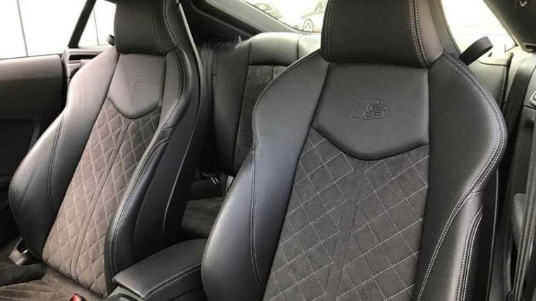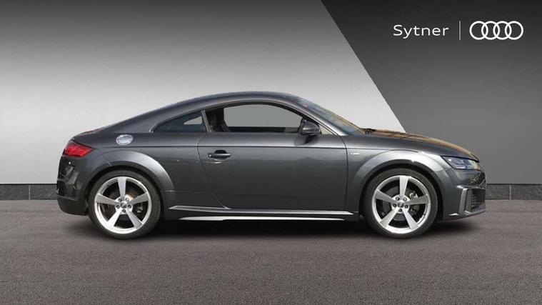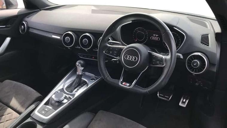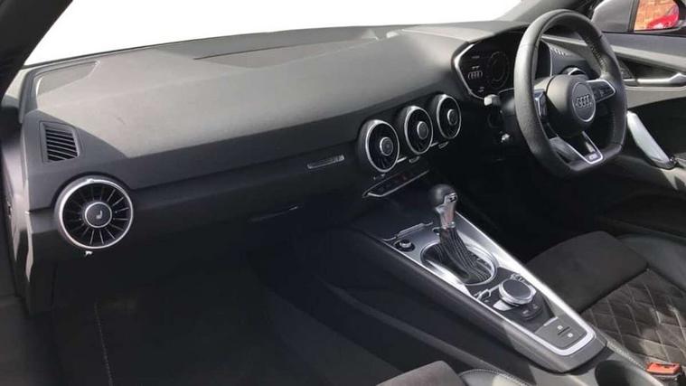 Audi drive select with 4 Pre configured modes, Audi virtual cockpit - 12.3" high-resolution LCD display with fully customisable instrument cluster, Cruise control + speed limiter, MMI touch panel, Mobile phone preparation with bluetooth interface, Progressive power assisted steering, Service interval indicator, Start/Stop system with energy recuperation, TP memo, S line sports suspension, AM/FM radio, Audi music interface, Bluetooth audio streaming, DAB Digital radio, MMI Radio with CD player and SD/XC card slot, Auto dimming rear view mirror, Auto headlight range control, Body colour bumpers, Body colour electrically adjustable and heated door mirrors with built in LED side indicators, Dynamic rear indicators, Electric folding door mirrors, Electric front windows, Front fog lights, Green tinted heat insulating glass, Headlight wash system, High gloss black radiator grille, LED daytime running lights, LED headlights with LED rear lights + dynamic rear indicators, Light and rain sensors, Retractable rear spoiler, S line badges on front wings, S Line body styling, S Line front and rear bumpers, S line rear diffuser with platinum grey insert, S line sill plates, Sunband for windscreen, 12V socket, 3 spoke flat bottomed high multi-function leather sport steering wheel with gearshift paddles, 4 way electric lumbar support for driver and front passenger, Air conditioning, Black headlining, Door sill trims with S line logo, Extended aluminium look with stainless steel pedals, Front centre armrest, Front super sports seats, Heated front seats, Height adjustable driver's seat, Height adjustable front head restraints, Height/reach adjust steering wheel, ISOFIX child seat mounting for front passenger seat with airbag deactivation, Perforated leather gearknob, Rear head restraints, Rear top tether child seat ISOFIX attachment, S Line badge on steering wheel, Split folding rear seat, Tool kit, Top tether anchor plate for isofix child seat, Non smoking pack - TT/TT RS, 3 point front seat belts, ABS, ASR traction control, Brake energy regeneration, Curtain airbags, Driver and front passenger airbag with front passenger airbag deactivation, EDL traction control, Electromechanical parking brake, ESP, First aid kit, Front side airbags, Head airbags, Hill hold assist, Seatbelt warning, Tyre pressure warning, Warning triangle, Anti theft alarm, Anti theft wheel bolts, Immobiliser, Keyless Go, Remote central locking, Matt brushed aluminium inlays, Tyre repair kit,