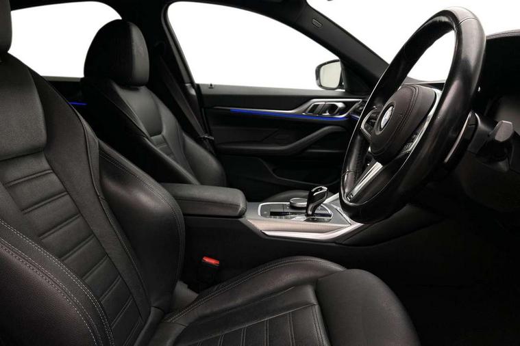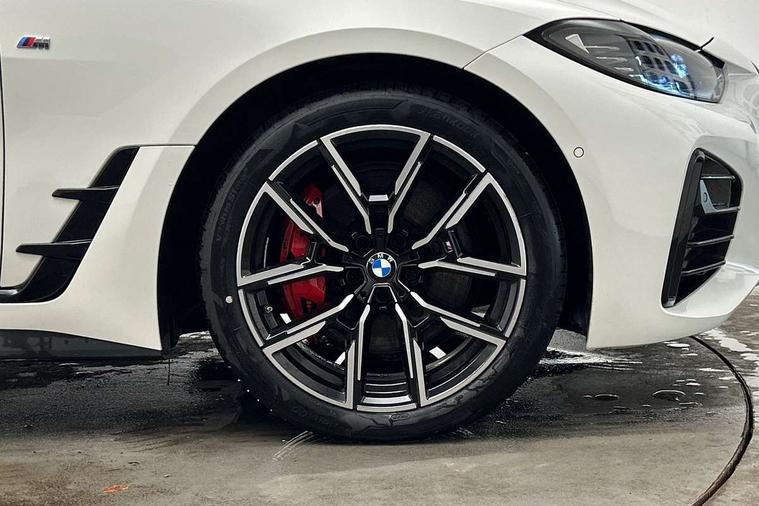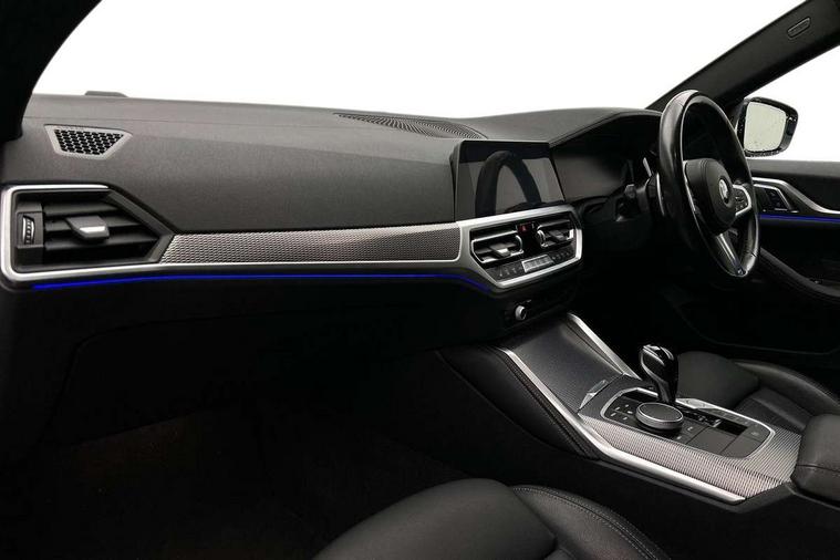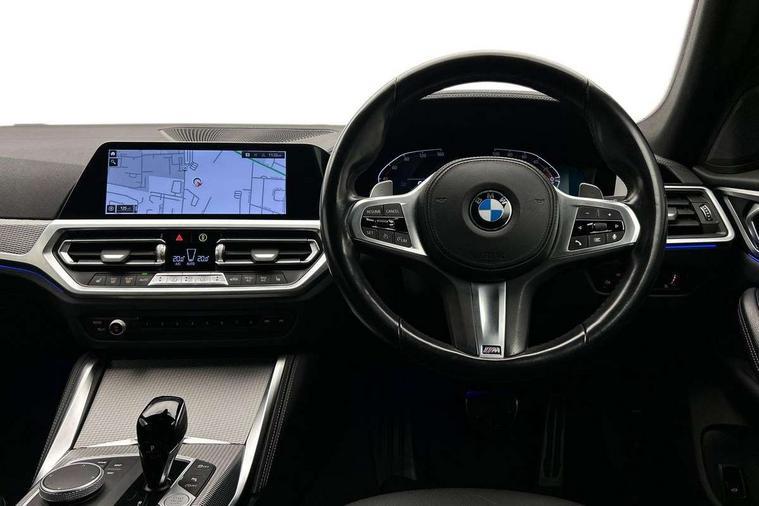 Active guard plus, Attentiveness assist, Auto start-stop, BMW ConnectedDrive online services, BMW iDrive controller on centre console, BMW Live Cockpit Professional Nav with 12.3" instrument display + 10.25" display, Intelligent Voice Assist, BMW OS 7, HDD, 2USB, 4G LTE connect, BMW service history, BMW Teleservices, Brake pad wear indicator in front and rear, Check Control warning system for monitoring of lights and door/luggage compartment open warning, Condition based service, Cruise control with speed limit function, Electric bootlid, Electric power steering with Servotronic steering optimised at all speed ranges, Gearshift time display in manual mode, Instrument cluster with speedometer with mph readout, tachometer, fuel gauge and oil temperature gauge, Integrated owners handbook, Oil sensor for level and grade, warning by check control system, On board computer - average speed, fuel consumption, outside temp display with acoustic warning, clock/date, service interval, odometer/trip meter, Optimum shift indicator, Shifting point display, Tailgate, Variable sport steering, 8 speed automatic steptronic transmission with gearshift paddles, Double joint spring strut front axle, Double VANOS, Drive performance control - ECO PRO, comfort and sport modes, High precision injection, Low centre of gravity, M sport suspension, Petrol Particulate Filter, Stroke dependent dampers, VALVETRONIC engine management, 2x USB Type C ports in front centre console for charging and data transfer, DAB tuner, Electronic service booklet, Acoustic glazing, Automatic headlight beam throw control with load dependent regulating reaction, dynamic compensation of braking dive and acceleration squat, Automatic windscreen wipers and automatic headlight, Automatically dimming electrochromatic rear view mirror, BMW emblem on engine compartment lid and tailgate, BMW kidney grille with mesh grille front side of the nuggets in matt aluminium and frame in chrome high gloss, Body colour fuel filler flap, Body colour roof fin, Brushed aluminium inserts in the front door sill finishers with BMW designation, Door sill strips, Dynamic brake lights, Electric windows - front and rear, with open/close fingertip control, anti trap facility and comfort closing function all round, Exterior mirrors - electrically folding with anti-dazzle, Fading support, Follow me home headlights, Front and rear bumper system, Front apron plastic in body colour, Green tinted heat protection glazing, High gloss shadow line exterior trim, Illuminated bow type door handles in body colour drivers side with door lock, Interior rear view electrochromatic mirror with automatic anti dazzle function, LED daytime running lights, LED front fog lights, LED front indicators, Licence plate panel integrated into front bumper and tailgate, Lightweight engineering, M designation on front side panels, left and right, M sport rear boot spoiler with body colour gurney, Model designation on right side of tailgate, One piece front bumper cover including towing eye cover in body colour, Preparation for high beam assistant, Rear side wing doors, Rear wiper, Reversing light, Side frame decorative moulding black matt, Two part LED tailights in L-shape with components in smoked glass, brake light, LED turn indicator and rear fog light, Visible exhaust tailpipe finisher, Visible VIN plate, Welcome lights in interior and door handle area, Widened track and increased camber values for max transverse dynamics, agility and steering precision, Window recess cover black high gloss, Windscreen wipers with integrated heated washing jets, 12V power socket in front centre console, 2 front cupholder in centre console with clamping elements and matt black inlay, 3 rear headrests, 3 seat bench in 2nd row, 3 spoke M sport leather multifunction steering wheel, 3 zone automatic air conditioning, 4 pieces lashing eyelets in luggage compartment, 40:20:40 split folding rear seat and rear centre armrest with two cupholders, Anthracite headlining, Armrest integrated in front and rear door trim + front centre console armrest, BMW ID, Driver seat backrest width adjustment, Four grab handles integrated in roof lining, Front and rear door pockets, Front and rear reading lights, Front sport seats, Heated driver and front passenger seats, Height adjustable front headrests, Height adjustable mechanically and infinitely variable steering column, Illuminated armrest storage compartment, Illuminated glove compartment with separate small compartment, Make-up mirror lights, Single front passenger seat, Storage compartment in rear centre console, Sunvisors with illuminated vanity mirrors and ticket pocket, Toolkit located in luggage compartment, Velour front floor mats, Vernasca leather upholstery, Ambient lighting pack - 4 Series, Connected professional pack - 4 Series, M sport exterior styling pack - 4 Series, 3 point seatbelts on all seats, Battery safety cut-off, BMW emergency call, Brake energy regeneration, Braking pre-tensioning, Child proof locking system in rear door, Child seat ISOFIX attachment for the two outer rear seats, Coasting in idle in ECO PRO mode, Cornering brake control (CBC), Crash sensor activating of airbags, Unlocking doors, hazard warning lights, interior light, safety battery terminal, Driver and front passenger side airbags, integrated in the door side seat backrest bolsters for all seat variants, Driver/Front Passenger airbags, Dry braking, Dynamic brake control, Dynamic stability control + (DSC+) - Anti-lock Braking System (ABS) with brake assist and cornering brake control + Automatic Stability Control (ASC), Dynamic Traction Control - DTC, Electric parking brake including automatic hold function and automatic release of the parking brake when driving off, Electronic differential lock control (EDLC), Front and rear ventilated brake disc, Front passenger manual airbag deactivation, Head airbags for all 4 outer seats, Hill start assistant, Seat belt security check for driver and fro