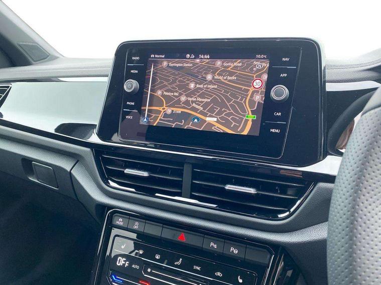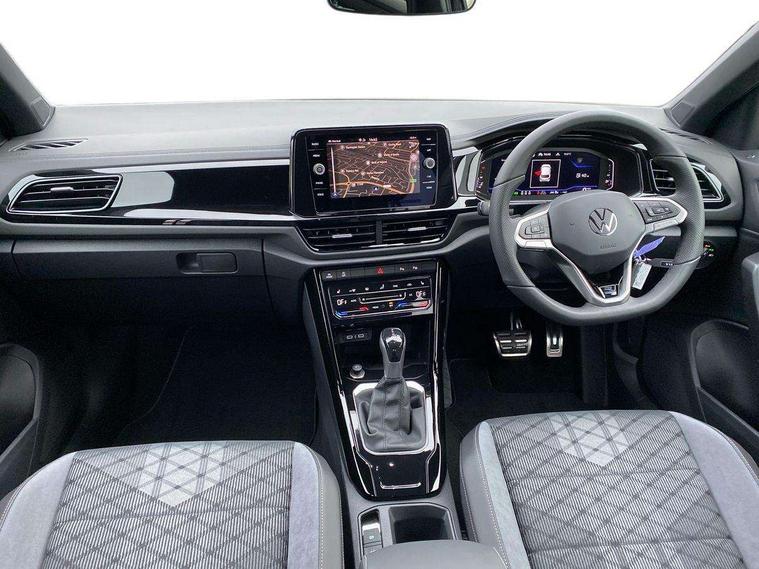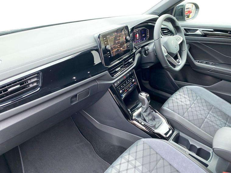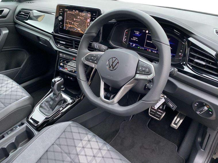 10.25" Digital cockpit pro, Advanced driver attention and drowsiness monitor, Emergency call service, Lane keeping system Lane Assist, Mobile phone interface, Modified key software - reduce switch off time for key status change to Long no motion, Online services, Park assist including front and rear parking sensors, Power assisted speed sensitive steering, Service interval indicator, Tailgate/trunk lid release from outside, Think blue trainer driver tips and journey analysis, Warning sound and light for front seatbelts unfastened, Wireless app connect, Battery regeneration during braking, Rear shock absorption chassis with increased ride height, Start/stop function with battery regeneration, DAB Digital radio, Diversity antenna for FM reception, Front and rear 6 speakers, Music playback - MP3, WMA and AAC files, Premium USB cable in choice of either Apple or Android smartphone compatibility, SD card slot, Simultaneous pairing of 2 compatible mobile devices, Title and cover art display, We Connect and We Connect Plus functionality, Auto dimming interior rear view mirror, Automatic hazard lights activation under emergency braking, Automatic headlight control with LED separate daytime running lights with coming/leaving home function, Dynamic cornering light, Electrically adjustable and heated door mirrors, Extended roof spoiler, Exterior mirrors aspherical on driver side, convex on front passenger side, External USB type C socket and charging sockets, Front windscreen wiper with intermittent wipe and 4 position delay, Heated rear window, Illuminated front grille, IQ LED matrix headlights, LED 3rd brake light, LED rear number plate lights, LED rear tail lights with dynamic turn signal, Light mode for poor weather, rain, fog or snow, Power windows with comfort operation and circuit breaker, R-Line design body coloured bumpers, Rain sensor, Rear exhaust tailpipe, Rear fog light on one side and reversing lights on both sides, Rear side wing doors, Rear wash/wipe with intermittent wipe setting, Remote electrically foldable door mirrors, puddle lights and reverse activated passenger's door mirror, 12V power socket in centre console, 3 rear head restraints, 3 seat bench in 2nd row, 4 load lashing points in luggage compartment, Air care climatronic air conditoning system with active combination filter and 2-zone temperature control, Artvelours cloth upholstery, Black roof lining, Chrome plated radiator grille inserts, air vent surrounds and light switch surrounds, Door and side trim panel with leatherette insert, Drawer under drivers seat, Driver seat height adjust, Driver's seat lumbar support, Front + rear carpet mats, Front centre armrest, Front comfort sports seats, Front cupholders x 2, Front footwell illumination, Front reading light, Front scuff plates with R Line logo, Front seat back storage pockets, Glove compartment door with light, Instrument lighting, white adjustable panel illumination, Interior ambient lighting and surround lighting, Interior light delay, Isofix child seat preparation, Leather gearshift handle, Leather wrapped multifunction steering wheel with paddle shift, Load-through provision with cup holder when folded down ('Unsplit rear seat bench, split folding backrest, with centre armrest), Luggage compartment lighting, Non-folding front passenger seat backrest, Passenger seat height adjuster, Passenger seat lumbar support, Single front passenger seat, Stainless steel pedals, Storage compartment in left and right luggage area, Storage compartment in rear doors, Storage compartments in driver and front passenger doors, Sunvisors with illuminated vanity mirrors, Variable boot floor, height adjustable and removable, Winter pack without heated windscreen washer jets - T-Roc, 3 point height adj front seatbelts + pretensioners, 3 point seatbelts in outer rear with ECE label, ABS, Child locks on rear doors, City emergency braking and pedestrian monitoring, Driver and front passenger airbag with front passenger airbag deactivation, Driver and front passenger safety-optimised head restraints, Drivers seatbelt reminder, Electronic parking brake, Electronic Stability Control (ESC) inc EDL (Electronic Differential Lock) and ASR (Traction Control), Front and rear passengers curtain airbag system including front side airbags, Front disc brakes, Hill start assist, Predictive pedestrian protection, Rear disc brakes, Two tone horn, Tyre pressure loss indicator, Volkswagen roadside assistance, Tool kit, Trims for alloy wheels, Tyre mobility kit including compressor and sealing foam,