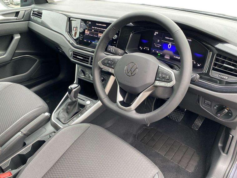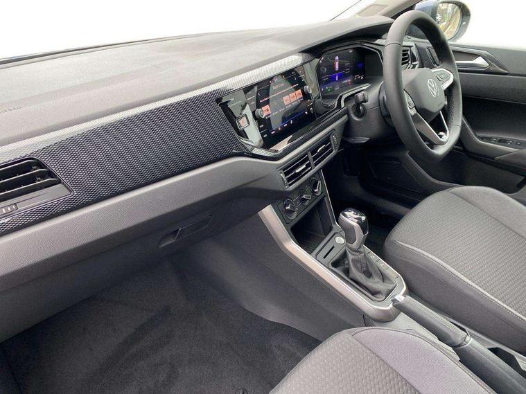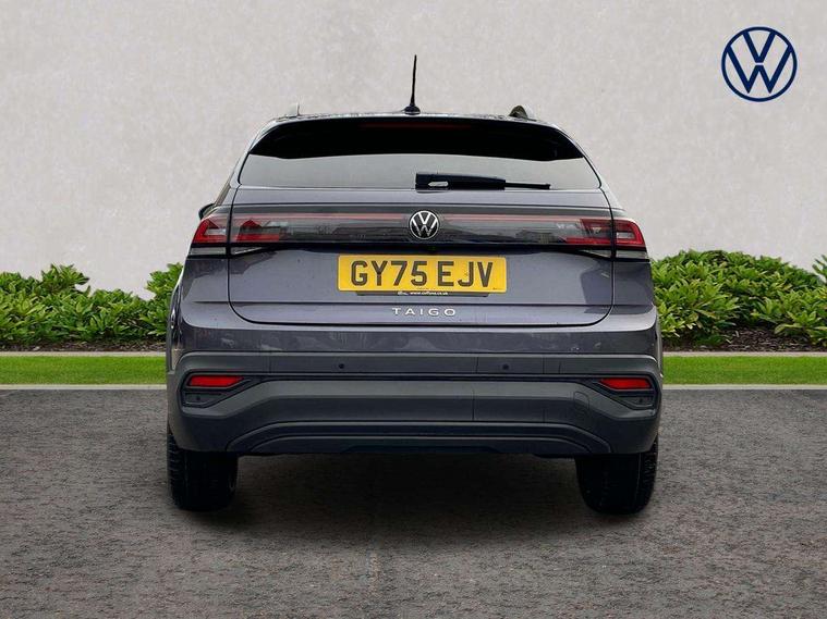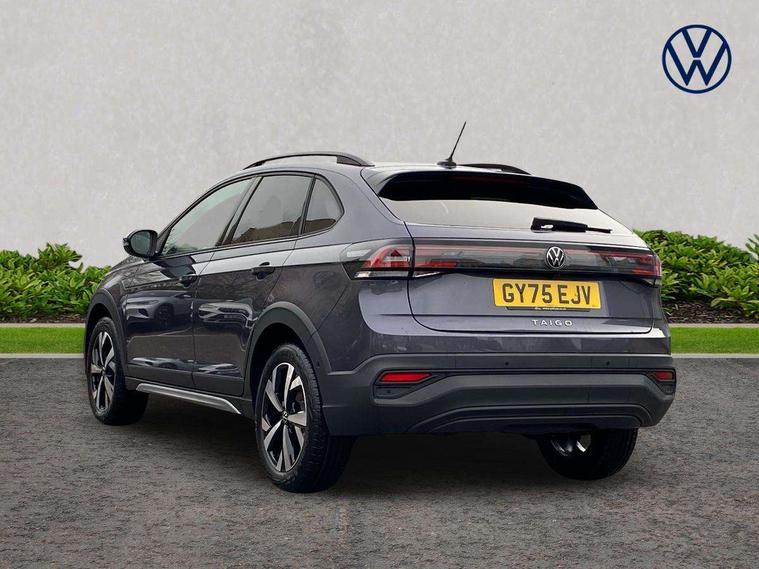 8" Digital cockpit basic display, Adaptive cruise control, Advanced driver attention and drowsiness monitor, Dynamic road sign display, e-Call (emergency call), Power Steering, Rear view camera, Travel assist including emergency assist, Washer fluid level indicator, Wireless Charging including Bluetooth, Start-stop system with battery regeneration (recuperation - energy recovery during braking), Digital radio reception (DAB+), WeConnect plus, Ambient lighting with logo projection, Aspherical driver's exterior mirror, Body coloured bumpers, Body coloured exterior mirror housings and door handles, Electric windows, External USB type C socket and charging sockets, Heat insulating glass windscreen, LED rear combination lamp, LED third brake light, Left convex exterior mirror, Power folding adjustable/heated exterior mirrors and front passenger exterior mirror lowering function, Rear fog light on one side, reversing light on both sides, Rear side wing doors, Rear wash/wipe with intermittent wipe setting, Side windows in heat-insulating glass, from B-pillar and rear window dark tinted, 'Slash/ Austin' Cloth upholstery, 12V socket in centre console, 2 front reading lights, 3 rear head restraints, 3 seat bench in 2nd row, Black carpets, Ceramique headliner, Child seat anchor for child seat system i-Size, 2x top tether and child seat anchor in front on front passenger side, Door and side trim panels in titan black, Driver and front passenger seat height adjustment, Front centre armrest, Handbrake lever handle in leather, Height and reach adjustable steering wheel, Leather trimmed gear knob, Leather wrapped multifunction steering wheel with paddle shift, Luggage compartment floor, Luggage compartment light, Lumbar support for driver's and front passengers seat, Seat covers in titanium black, Single front passenger seat, Split folding backrest with centre armrest and unsplit rear seat bench, Storage compartment under front seats, Sun visors with illuminated vanity mirrors, Titanium black instrument panel, Chrome Package - Taigo, Drivers assistance package - Taigo, Light and sight pack - Taigo, 2 x 3-point seatbelts/outer rear seats with ECE label, 3-point seat belts in front with pretensioner and height adjustment, 3-point seatbelt for centre rear seat, Driver and front passenger airbag with front passenger airbag deactivation, Driver and front passenger safety-optimised head restraints, Electronic stability control, Extended and predictive pedestrian/ cyclist protection, Front and rear disc brakes, Front curtain and side airbags with center airbag, Hill start assist, Manual rear child locks, Single tone horn, Tyre pressure loss indicator, Anti-theft alarm system with interior monitoring, backup horn, and towing protection, Keyless locking and starting system keyless access with safelock, Black (slush) Dashboard, Lava stone black gloss/matt decorative inserts in dash and front door panels, Low rolling resistance tyres,