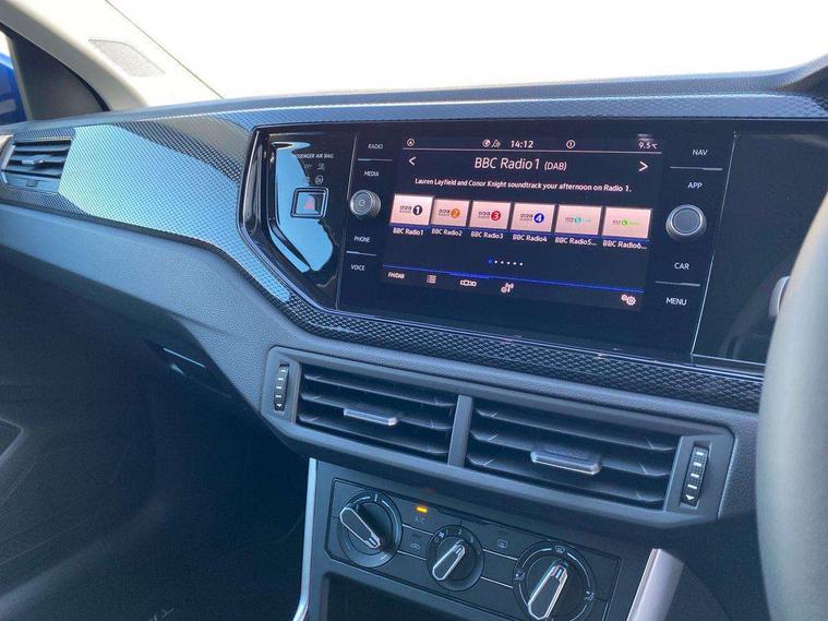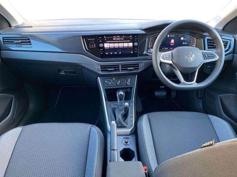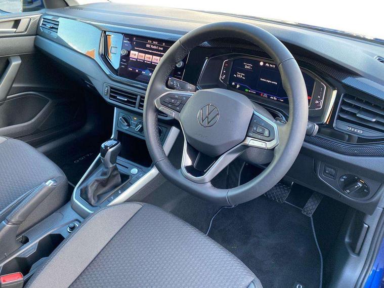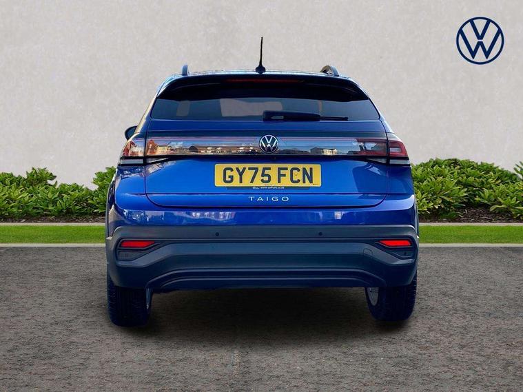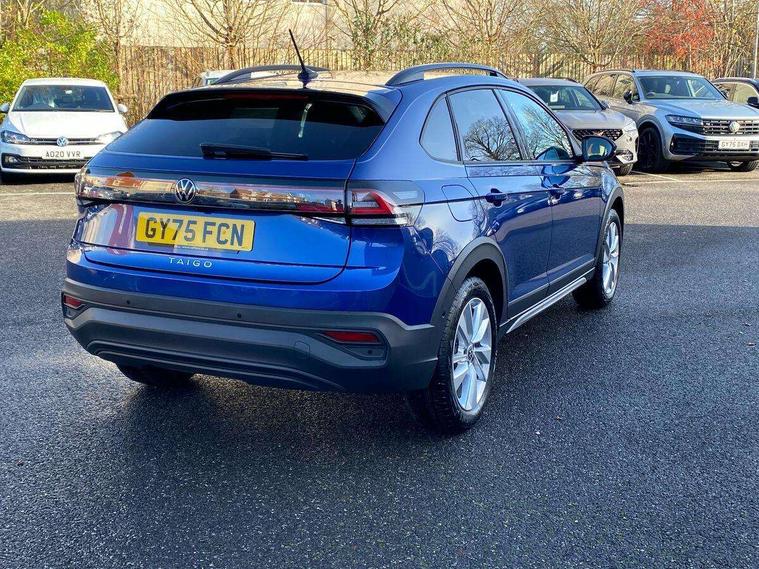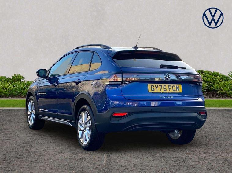 8" Digital cockpit basic display, Adaptive cruise control, Advanced driver attention and drowsiness monitor, Dynamic road sign display, e-Call (emergency call), Power Steering, Rear view camera, Travel assist including emergency assist, Washer fluid level indicator, Wireless Charging including Bluetooth, Start-stop system with battery regeneration (recuperation - energy recovery during braking), Digital radio reception (DAB+), WeConnect plus, Ambient lighting with logo projection, Aspherical driver's exterior mirror, Body coloured bumpers, Body coloured exterior mirror housings and door handles, Electric windows, External USB type C socket and charging sockets, Heat insulating glass windscreen, LED rear combination lamp, LED third brake light, Left convex exterior mirror, Power folding adjustable/heated exterior mirrors and front passenger exterior mirror lowering function, Rear fog light on one side, reversing light on both sides, Rear side wing doors, Rear wash/wipe with intermittent wipe setting, Side windows in heat-insulating glass, from B-pillar and rear window dark tinted, 'Slash/ Austin' Cloth upholstery, 12V socket in centre console, 2 front reading lights, 3 rear head restraints, 3 seat bench in 2nd row, Black carpets, Ceramique headliner, Child seat anchor for child seat system i-Size, 2x top tether and child seat anchor in front on front passenger side, Door and side trim panels in titan black, Driver and front passenger seat height adjustment, Front centre armrest, Handbrake lever handle in leather, Height and reach adjustable steering wheel, Leather trimmed gear knob, Leather wrapped multifunction steering wheel with paddle shift, Luggage compartment floor, Luggage compartment light, Lumbar support for driver's and front passengers seat, Seat covers in titanium black, Single front passenger seat, Split folding backrest with centre armrest and unsplit rear seat bench, Storage compartment under front seats, Sun visors with illuminated vanity mirrors, Titanium black instrument panel, Chrome Package - Taigo, Drivers assistance package - Taigo, Light and sight pack - Taigo, 2 x 3-point seatbelts/outer rear seats with ECE label, 3-point seat belts in front with pretensioner and height adjustment, 3-point seatbelt for centre rear seat, Driver and front passenger airbag with front passenger airbag deactivation, Driver and front passenger safety-optimised head restraints, Electronic stability control, Extended and predictive pedestrian/ cyclist protection, Front and rear disc brakes, Front curtain and side airbags with center airbag, Hill start assist, Manual rear child locks, Single tone horn, Tyre pressure loss indicator, Anti-theft alarm system with interior monitoring, backup horn, and towing protection, Keyless locking and starting system keyless access with safelock, Black (slush) Dashboard, Lava stone black gloss/matt decorative inserts in dash and front door panels, Low rolling resistance tyres,
