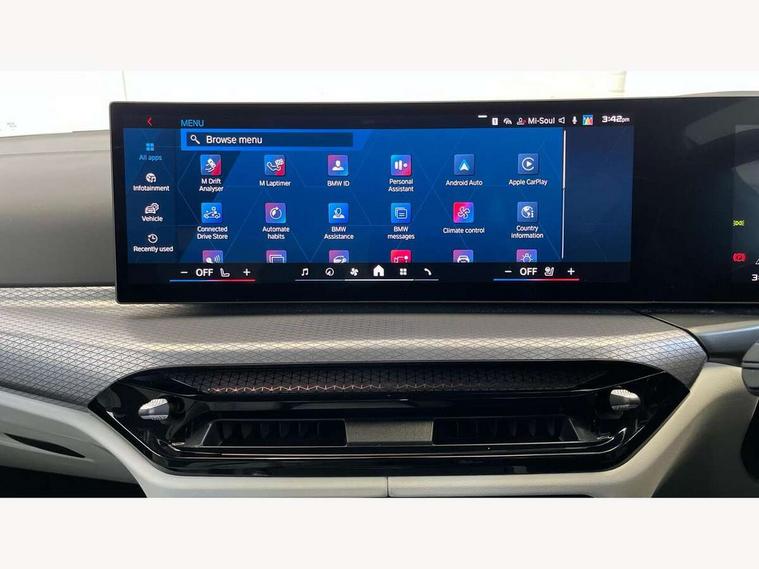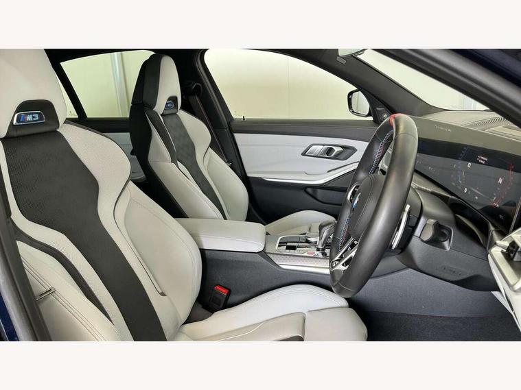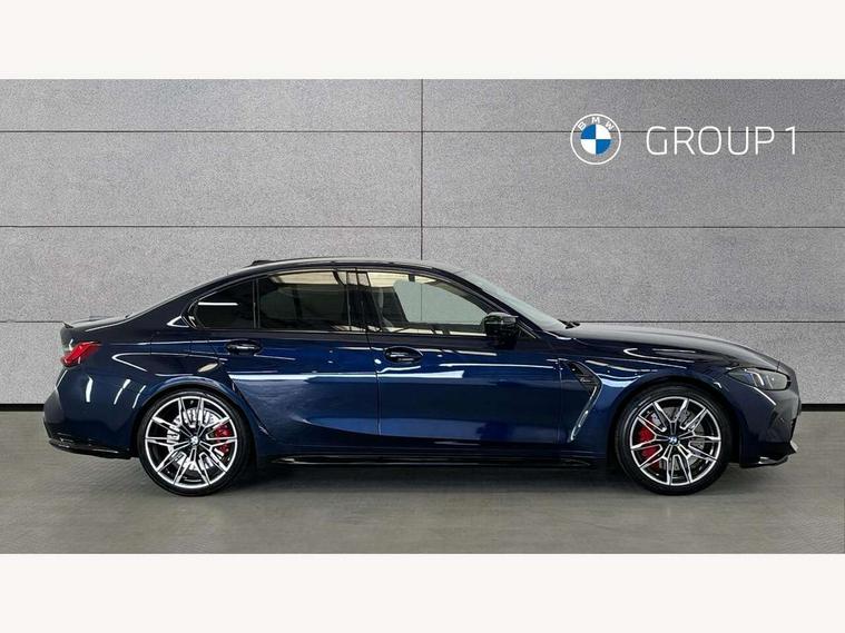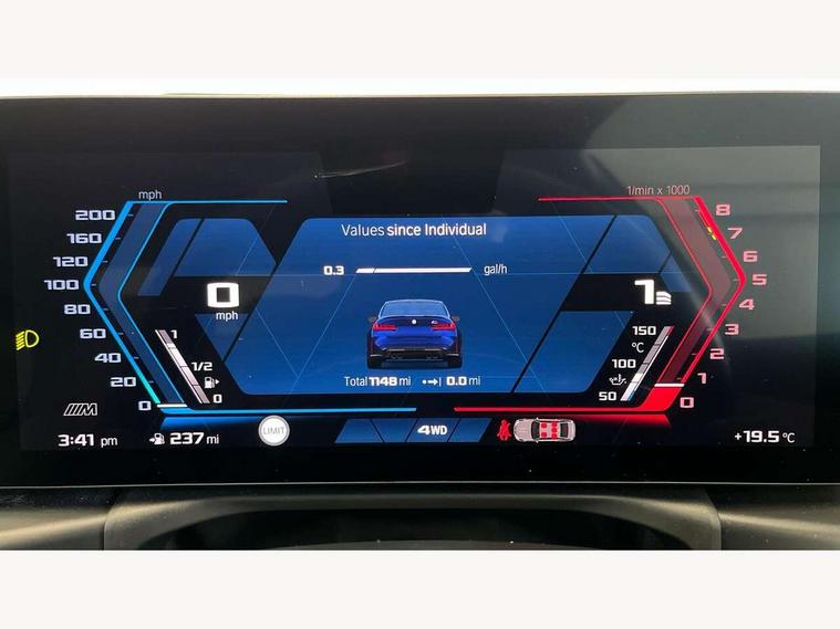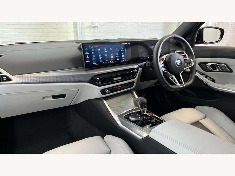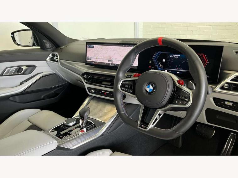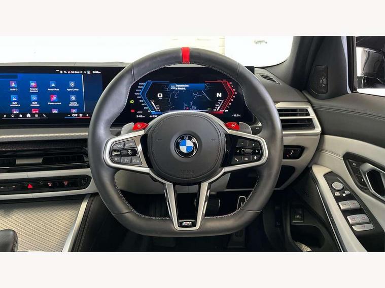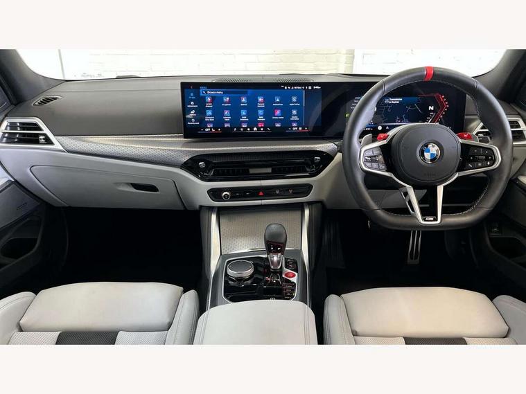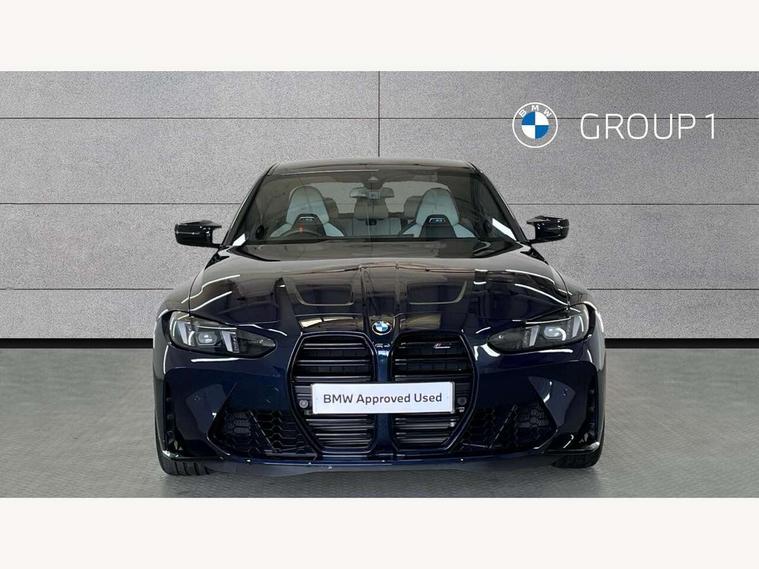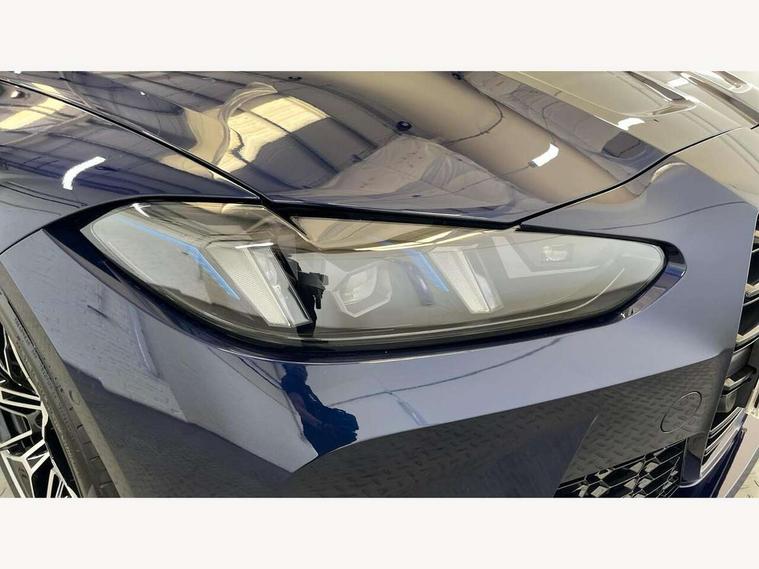 Active Guard, Automatic start/stop system, BMW ConnectedDrive online services, BMW legal emergency call, BMW Live Cockpit Pro with Head up display including 12.3" instrument display and 14.9" high resolution control display with navigation function, BMW Teleservices, Brake pad wear indicator warning light, Condition based service, Cruise control with braking function, Door/boot open warning light, Electric Power Steering (EPS) with Servotronic, Language version English, Lights on warning, M drive buttons, Oil sensor for level and grade, warning by check control system, Oil temperature gauge, On board computer, On board diagnostics, Optimum shift indicator, Outside temperature display, Park distance control, Pull away assistant, Run flat indicator, Service interval indicator, Shifting point display, Smartphone integration, Speed limiter, Start/stop button in red, Variable sport steering, Double joint spring strut front axle, M Adaptive suspension, M Drive Professional including track mode, laptimer, traction control & Drift analyser, M Sport differential, Safety battery terminal clamp, Sport automatic transmission with gearshift paddles, Auxiliary point for auxiliary devices, DAB radio with bluetooth music capability, Harman kardon surround sound audio system, Personal eSim, Acoustic laminated side glass, Auto dimming driver's door mirror, Automatic headlights + automatic windscreen wipers, Automatic parking function on front passenger's exterior mirror, Black chrome exhaust tailpipes, Black model designation badges, BMW high gloss shadow line with extended contents, BMW radiator grille, frameless, with horizontal double blind slats, black high-gloss, with model badge, Body colour bumpers, Bonnet and tailgate badge, Carbon fibre reinforced plastic (CFRP) roof, Day time running light, Door mirror integrated indicators, Dynamic brake lights, Electric adjustable heated door mirrors, Electric folding door mirrors, Electrochromic exterior driver side mirror, Electrochromic interior rear view mirror with automatic anti-dazzle function, Entry sills with aluminium inserts and model badge, Extended Stroage, Follow me home headlights, Front and rear bumper system, Front and rear plastic apron in vehicle colour, Front door sill strips in aluminium inlays with M4 inscription, Front electric windows with open and close fingertip control, anti trap facility and comfort closing, Headlight beam throw control, Heated washer jets, High gloss black lower bumper edges, side sills and diffuser edge binding, LED tail lights with 3D L-shaped LED light design, M designation, Mirror glass aspheric on driver's side, convex on passenger side, Rain sensor, Rear boot, Rear fog lights, Rear reflectors, Reversing light, Roof fin and roof trim strips in Black high-gloss, Shark fin roof aerial, Strakes in front side panel, black matt/high-gloss black, with model badge, Third brake light, Visible VIN plate, Welcome lighting, 2 cupholders in front centre console, 2 cupholders in rear armrest, 2 rear head restraints, 2 x 12 V Power sockets (luggage compartment and front centre console), 2 x USB Type C ports for charging and data transmission in front centre console, 40:20:40 split folding rear 2 seat bench with loading system, Ambient inside door handle light, Ambient lighting for storage compartment, Ambient lighting front and rear, Anthracite headlining, Battery in luggage compartment, Centre console armrest with storage compartment, Contour lighting for door trim, Driver/passenger sunvisors with ticket holders + illuminated vanity mirrors, Driving experience mode switch, Dual zone automatic air conditioning, Dynamic ambient interior lighting, Electric front seats + driver memory, English handbook, Floor mats in velour, Front and rear door exit lights, Front door storage bins with bottle holder, Front footwell ambient lighting, Front interior light, Front isofix attachment + airbag deactivation, Front reading light, Front seat backrest width adjustment, Front/rear door armrests, Heated front seats, Height adjustable front headrests, Illuminated bow-type door handles in vehicle colour, driver's side with door lock, Interior mirror lighting, Isofix on 2nd row seats, Lockable/illuminated glovebox, Luggage compartment lighting, Multifunction steering wheel, Rake/reach adjustable steering wheel, Single front passenger seat, Storage compartment in rear doors, Storage tray and compartment with cover in centre console, Through loading system, Toolkit located in luggage compartment, Waterfall lighting for central air vent, Wireless charging tray, Connected package professional - M4, Extended storage pack - M3/M4, High gloss shadowline exterior trim pack - M4, 4 x 3 point seatbelts, ABS/EBD, Automatic Stability Control (ASC), Brake energy regeneration, Brake fade compensation, Compound structure brake discs, Cornering brake control (CBC), Crash sensor, Curtain airbags, Driver/Front Passenger airbags, Dry braking, Dynamic brake control, Dynamic stability control + (DSC+), Dynamic Traction Control - DTC, Electromechanical parking brake, Electronic differential lock control (EDLC), Front and rear head airbags, Front seat side impact airbags, Front seatbelt pretensioners + load limiters, Hill start assist, M Sport seat belts, Seat occupancy detection for driver and passenger side, Seatbelt warning, Side impact protection, Two tone horn, Tyre pressure sensor, Warning triangle and first aid kit, Centre lock switch, Closing system with central locking, Electronic immobiliser, Locking wheel bolts, Remote central locking, Thatcham cat 1 remote alarm, Vehicle Key with 4 buttons including the integrated key, Galvanic embellisher for controls, Tyre repair kit,