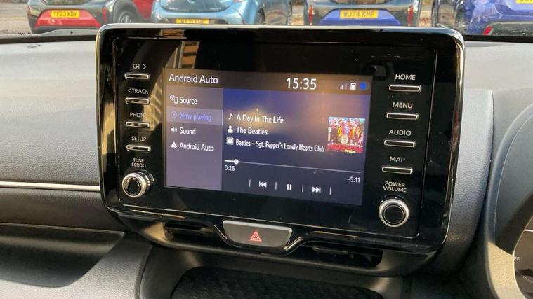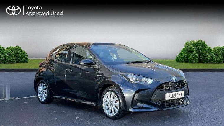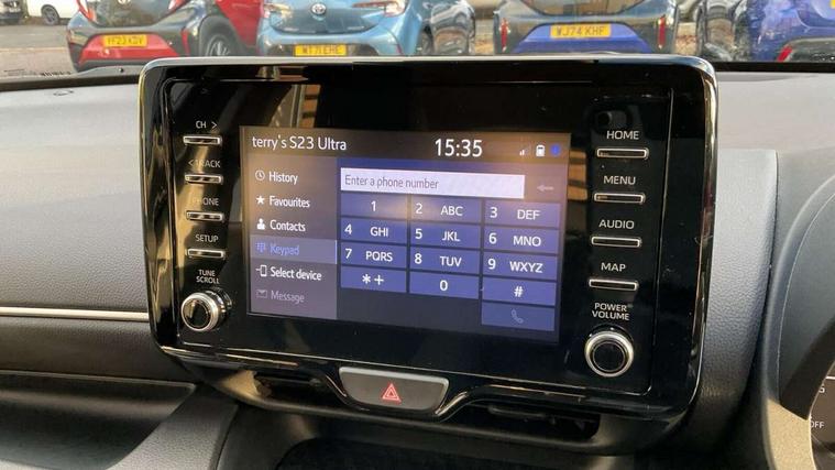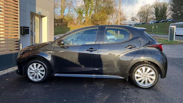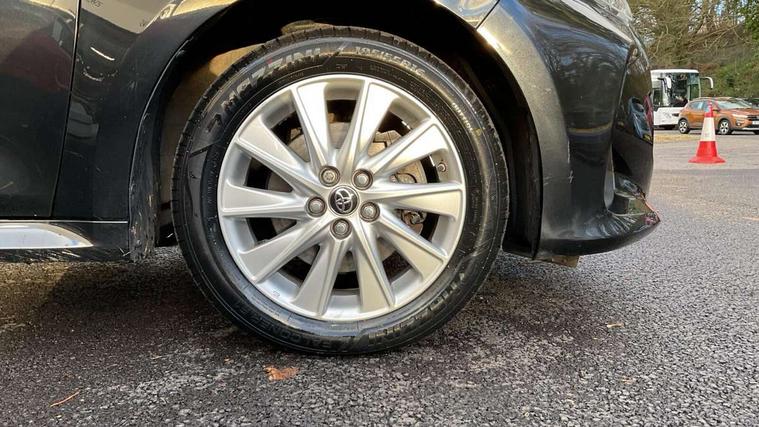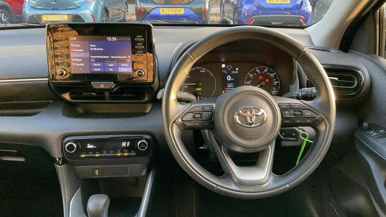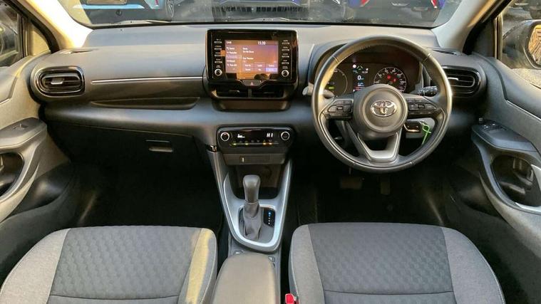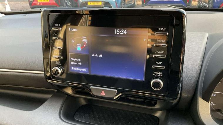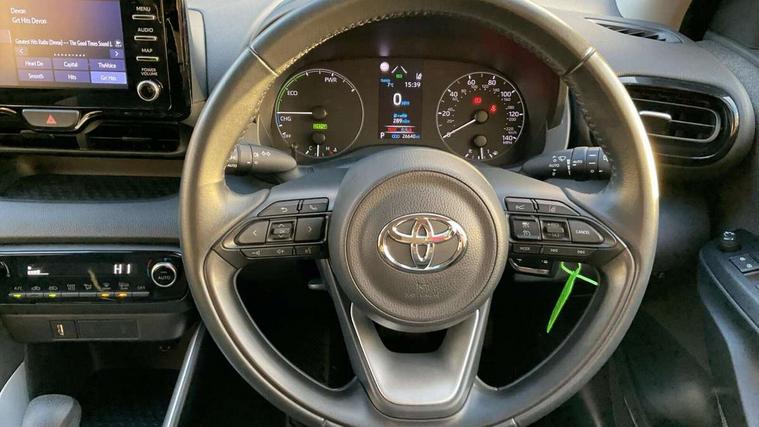 4.2" coloured LED TFT multi information display with analogue speedometer, Adaptive cruise control, Adjustable speed limit with speed warning, Bluetooth connectivity, E-call, Electric power steering, Hybrid energy display, Multi information display switches on steering wheel, Reversing camera, Smartphone integration with Apple CarPlay and Android auto, Vehicle Stability Control (VSC), 4 speakers, 7" Multimedia display touch screen, Toyota Touch 2 with DAB, USB connection, Acoustic windscreen glass, Auto windscreen wipers, Automatic headlights, Body coloured door mirrors, Electric adjustable heated door mirrors, Follow me home headlights, Front auto power windows with anti jam protection, Halogen projector headlights, LED daytime running lights, LED High mounted stop lamp, Rear spoiler, Shark fin antenna, Turning signal integrated indicators in door mirrors, 3 adjustable rear headrests, 3 spoke leather steering wheel, 60/40 split folding rear seat, Active headrests, Adjustable boot height, Auto air conditioning, Coat hooks in rear grab handles, Cup holders (2 front & door), Data Communication Module (DCM) connected services, Fabric upholstery, Front armrest, Glovebox, Height adjustable driver's seat, Isofix seat fixing, Leather gearshift, Pollen filter, Shopping bag hooks, Tilt/telescopic steering column, 3 point seatbelts on all rear seats, ABS+EBD+Brake assist, Electronic parking brake, Emergency brake light system (EBS), Front passenger airbag on/off switch, Front seatbelt reminder, Hill start assist control (HAC), Rear child proof door locks, Rear seat belt reminder, Supplemental Restraint System (SRS) 8 airbags: Driver & passenger's airbags, dual side curtain airbags, side impact airbags, front centre airbag, Toyota Safety Sense 2, Precollison + Night time Pedestrian & Cyclist Detection, Lane Trace Assist, Auto High Beam, Intelligent ACC & Road Sign Assist, Tyre pressure warning system, Alarm/immobiliser, Remote powered central double locking doors, Soft touch instrument panel, 16" Silver alloy wheels, Space saver spare wheel,