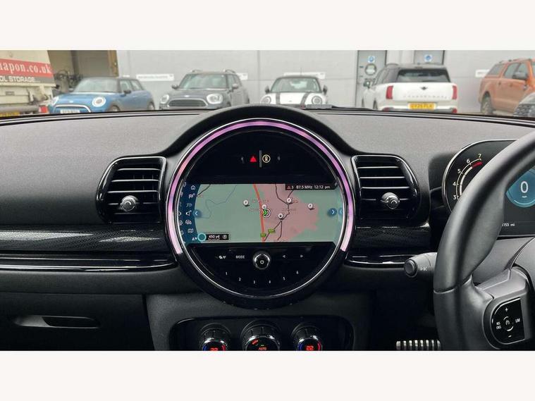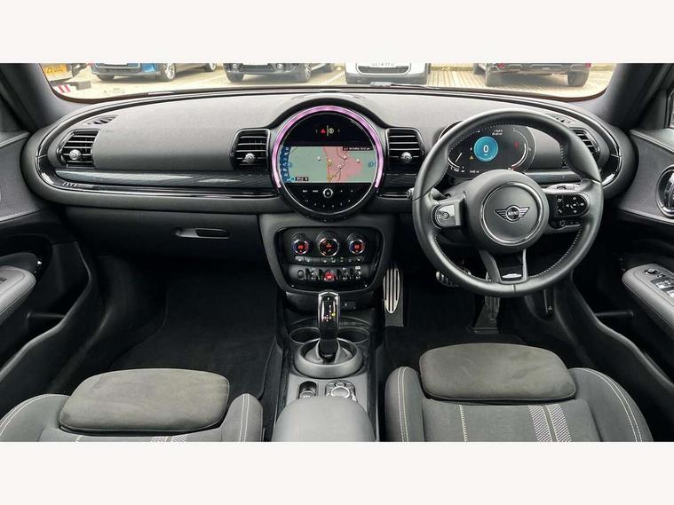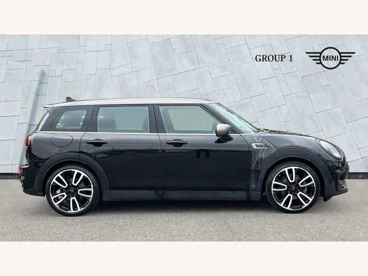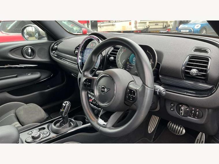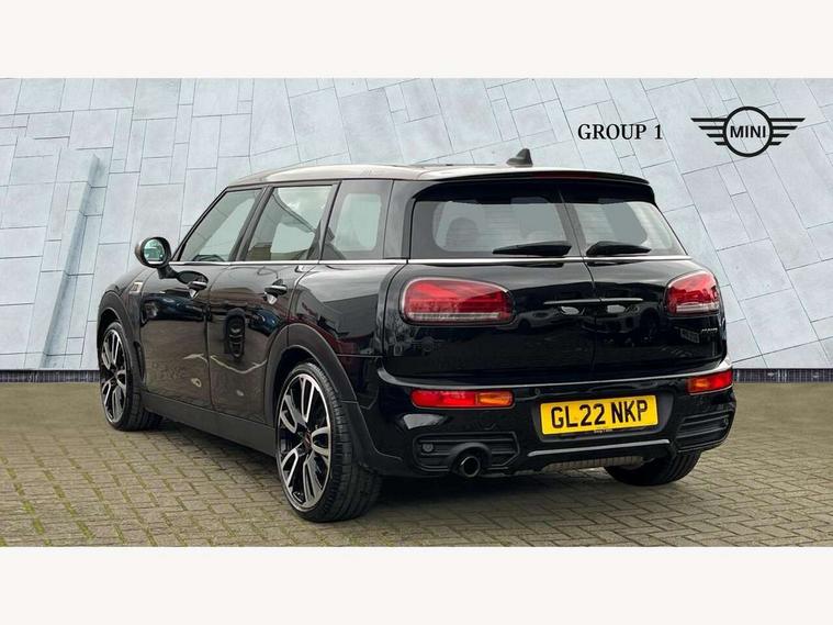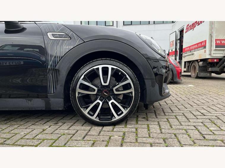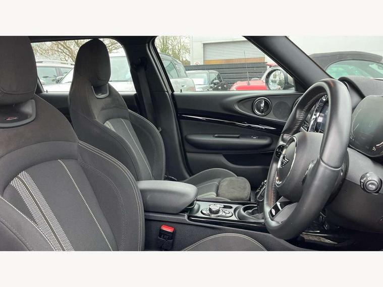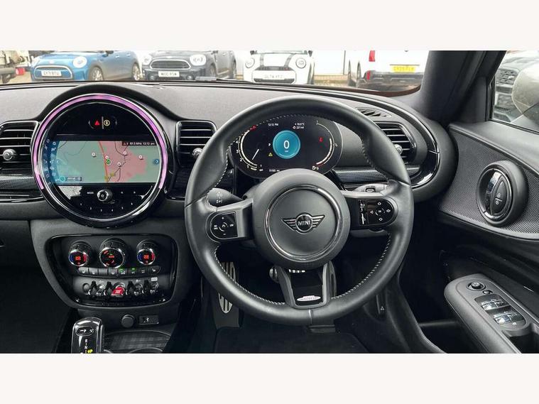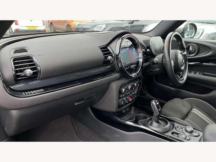 Active Guard incl speed limiting and lane departure functions with auto steering, and front collision warning with brake intervention, Automatic start/stop function with brake energy recuperation, Car sharing preparation, Compatible mobile phone bluetooth with audio streaming, Electro-mechanical speed dependant steering assistance, Instrument cluster, Mini E-call, MINI TeleServices, On board computer, Rear parking distance control, 7 Speed steptronic transmission with double clutch including electronic gear shifter, Double Vanos system, Fully variable valve control, High precision injection, Performance Control, FM tuner and DAB digital radio, A-panel shadow design with integrated scuttle trim, Body colour fuel filler cap, Door sill strips, Dynamic brake lights, Electric windows, Exhaust tailpipe, Heated rear window, Heated windscreen washer jets, John Cooper Works - aerodynamic kit (front and rear apron, spoiler), front and rear sport bumpers and part-painted side sills with door sill finishers, John Cooper Works entry sills, John Cooper Works rear spoiler, LED headlights with closed ring as daytime driving lights, LED rear light with union jack design, Left exhaust tailpipe with chrome finisher, Model logo on rear doors, Piano black exterior, Radiator grille, Rain sensor with auto headlights, Rear fog lights, Rear side wing doors, Rear window wiper, Rear wing door, Shadow design bonnet, Silver roof and mirror caps, Special metallic paint, Split rear doors, Sun/heat protection glass, Third brake light, Variable front intermittent wipers, White indicator lenses, 12V Accessory socket in centre console, 3 seat bench in 2nd row, 360L luggage compartment capacity, 4 lashing eyes in luggage compartment, 60/40 split folding rear seat, Anthracite headlining with grab handles and clothes hooks, Chrome interior highlights, Cupholders, English handbook, Floor mats, Glove compartment, Height and length steering column adjustment, Interior dashboard trim Shadow logo, Interior lighting with 12 basic colours selectable via toggle switch in roof, Interior tread plates in Shadow design, Isofix rear child seat preparation, John Cooper Works leather gearshift lever and handbrake gaiter, John Cooper Works sports seat with integrated headrest, adjustable thigh support and John Cooper Works logo, LED reading lights, vanity mirror lights, front foot well light and spotlight on front seats, Lower roof section Shadow logo, Manual air conditioning, Multifunction steering wheel, Nappa leather steering wheel with JCW badge, Single front passenger seat, Stainless steel pedals, Storage compartments in doors, Sunvisors with vanity mirrors, Toolkit, Excitement pack - Clubman, Extended interior lighting pack - Mini Clubman, Navigation pack - Clubman, 2 tone horn, 3 point seatbelts on all seats, 6 Airbags - front, side, head and seat belt tensioners, Anti-lock braking system (ABS), Child locks on rear doors, DSC - Dynamic Stability Control, Electronic handbrake, Front and rear disc brakes, Tyre pressure monitoring system, Alarm system with tilt sensor, monitoring doors, bonnet interior and tailgate, Auto drive away locking, Deadlocking function, Electronic vehicle immobiliser, Locking wheel bolts, Remote central locking, Start/stop toggle with keyless go, Piano black interior trim, 19" John Cooper Works circuit spoke alloy wheels, Tyre repair kit,