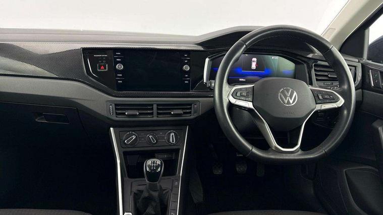 Adaptive cruise control without follow-to-stop and speed limiter, Bluetooth mobile phone interface, Driver alert system, Emergency call service, Front assist system, Power assisted speed sensitive steering, Preparation for We connect and We connect plus, Speedo and rev counter, electronic odometer, trip, service interval display and fuel gauge, Standard rear axle, Travel Assist - Lane keeping system and traffic jam assist, Travel assist including emergency assist, Trip computer, Warning signal and warning light for front and rear seatbelts not fastened, Washer fluid level indicator, Wireless app connect, Front wheel drive, Rear shock absorpion, Start-stop system with battery regeneration (recuperation - energy recovery during braking), DAB Digital radio, Diversity antenna for FM reception, Front and rear 6 speakers, Automatic dimming interior rear view mirror, Body colour bumpers, Body colour door handles, Body colour door mirrors, Electric front windows, Heat insulating darkened glass in side and rear windows, Heat insulating glass windscreen, Power folding adjustable/heated exterior mirrors and front passenger exterior mirror lowering function, Rain sensor, Rear electric windows, Rear fog light, Rear side wing doors, Rear windscreen washer and wiper with interval delay, Third brake light, 12V power socket in centre console, 2 front and 2 rear reading lights, 2 USB-C ports in the front, 2 USB-C charging sockets on the center console in the rear, 3 rear head restraints, 60/40 split folding rear seat and rear seat bench not split, Chrome plated radiator grille inserts, air vent surrounds and light switch surrounds, Door and side trim panel, Driver and front passenger seat height adjustment, Driver/passenger sunvisors with illuminated vanity mirrors, Front centre armrest, Front seat backrest storage pockets, Front standard seats, Handbrake lever handle in leather, Hartley/Thomas cloth upholstery, Headliner in recycled material, Isofix child seat preparation easy-fit (for two outer rear seats, and front passenger seat) compatible with I-size, Leather trimmed gear knob, Luggage compartment cover, Luggage compartment floor, Luggage compartment lighting, Multifunction steering wheel, Single front passenger seat, Standard pedal cluster, Light and vision pack - Polo, 3 point height adj front seatbelts + pretensioners, 3x3 point rear seatbelts, ABS, Driver and front passenger airbag with front passenger airbag deactivation, Drivers and front passengers safety optimised head restraints, ESC (Electronic stability control) + EDL (Electronic Differntial lock) and ASR (Traction control), Extended and predictive pedestrian/ cyclist protection, Front curtain and side airbags with center airbag, Front disc brakes, Hill hold control, Manual child lock in rear doors, Rear drum brakes, Single tone horn, Tyre pressure loss indicator, Alarm with interior protection, Anti-theft alarm system with interior monitoring, backup horn, and towing protection, Anti-theft wheel bolts, Electronic engine immobiliser, Lava stone black gloss/matt decorative inserts in dash and front door panels, Low rolling resistance tyres,