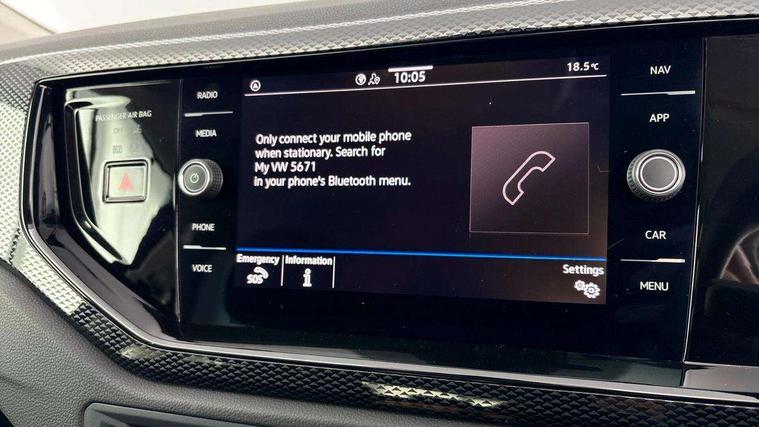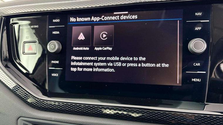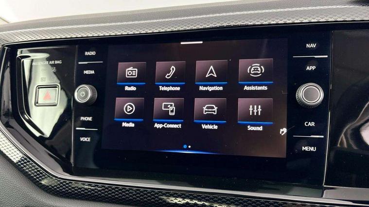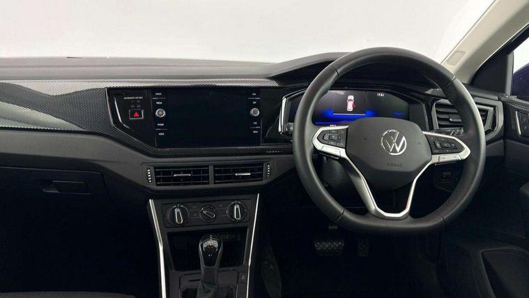 Advanced driver attention and drowsiness monitor, Bluetooth mobile phone interface, Dynamic road sign display, Emergency call service, Multifunction front facing camera for distance control, Park distance control, Power assisted speed sensitive steering, Predictive adaptive cruise control without follow-to-stop and speed limiter, Preparation for navigation system with media and internet package, Preparation for We connect and We connect plus, Rear view camera, Speedo and rev counter, electronic odometer, trip, service interval display and exterior temperature gauge, Standard rear axle, Travel Assist - Lane keeping system and traffic jam assist, Travel assist including emergency assist, Trip computer, Warning signal and warning light for front and rear seatbelts not fastened, Washer fluid level indicator, Wireless app connect, Front wheel drive, Rear shock absorpion, Start-stop system with battery regeneration (recuperation - energy recovery during braking), DAB Digital radio, Diversity antenna for FM reception, Front and rear 6 speakers, Automatic dimming interior rear view mirror, Automatic headlight control with LED separate daytime running lights with coming/leaving home function, Body colour bumpers with chrome inserts, Body colour door handles, Body colour door mirrors, Electric front windows, Engine badge deletion, Headlight range adjustment, Heat insulating and laminated safety glass windshield, LED Headlights, LED rear combination lamps, Power folding adjustable/heated exterior mirrors and front passenger exterior mirror lowering function, Rain sensor, Rear electric windows, Rear fog light, Rear side wing doors, Rear tinted glass from B-pillar backwards approx 65% tinted, Rear windscreen washer and wiper with interval delay, Third brake light, 12V power socket in centre console, 2 front and 2 rear reading lights with switch off delay and dimmer, 2 USB-C ports in the front, 2 USB-C charging sockets on the center console in the rear, 3 rear head restraints, 60/40 split folding rear seat and rear seat bench not split, Ceramique roof lining, Chrome plated radiator grille inserts, air vent surrounds and light switch surrounds, Door and side trim panel, Driver and front passenger seat height adjustment, Driver/passenger sunvisors with illuminated vanity mirrors, Front centre armrest, Front seat backrest storage pockets, Front standard seats, Handbrake lever handle in leather, Hartley/Thomas cloth upholstery, Headliner in recycled material, Isofix child seat preparation easy-fit (for two outer rear seats, and front passenger seat) compatible with I-size, Leather trimmed gear knob, Luggage compartment cover, Luggage compartment lighting, Removable luggage compartment floor, Single front passenger seat, Standard climatic zones, Standard pedal cluster, Three spoke leather wrapped multifunction steering wheel with shifting paddles, Light and vision pack - Polo, 3 point height adj front seatbelts + pretensioners, 3 point seat belt for centre rear seat, 3 point seatbelts, outer rear with ECE lable, ABS, Driver and front passenger airbag with front passenger airbag deactivation, Drivers and front passengers safety optimised head restraints, ESC (Electronic stability control) + EDL (Electronic Differntial lock) and ASR (Traction control), Extended and predictive pedestrian/ cyclist protection, Front assist with autonomous emergency braking (for Adaptive Cruise Control ACC up to 130 mph), Front curtain and side airbags with center airbag, Front disc brakes, Hill hold control, Manual child lock in rear doors, Rear drum brakes, Single tone horn, Tyre pressure loss indicator, Alarm with interior protection, Anti-theft alarm system with interior monitoring, backup horn, and towing protection, Anti-theft wheel bolts, Electronic engine immobiliser, Lava stone black gloss/matt decorative inserts in dash and front door panels, 16" Torsby alloy wheels, Low rolling resistance tyres,