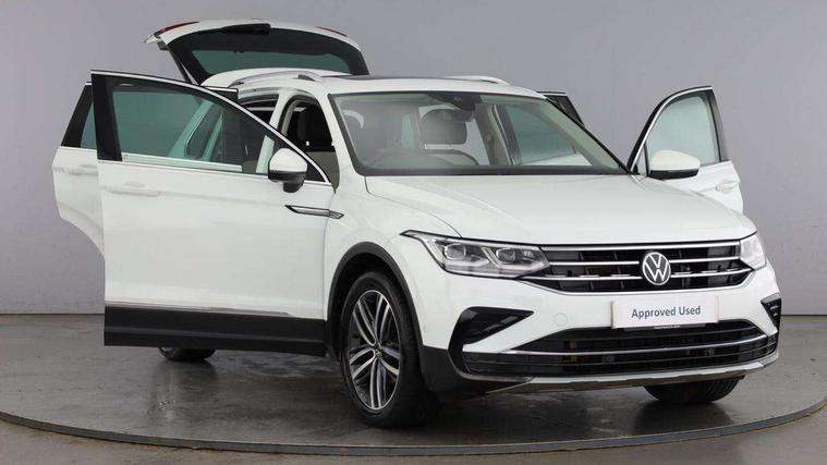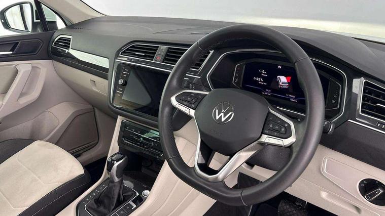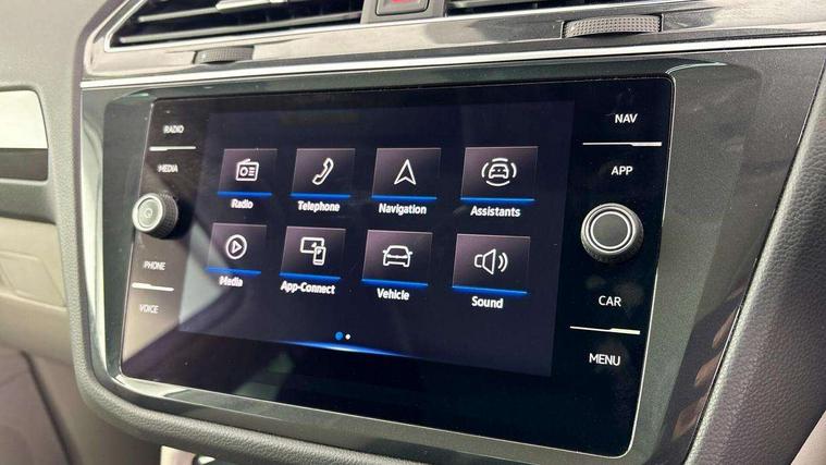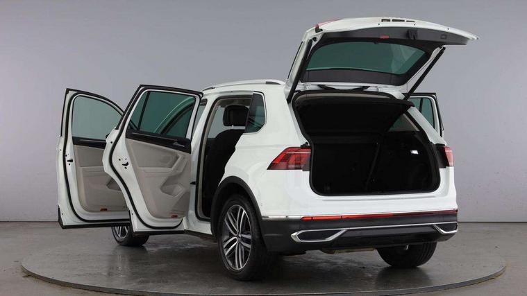 Adaptive cruise control ACC stop and go including speed limiter, App-Connect incl. App-Connect Wireless for Apple CarPlay and Android Auto, Bluetooth phone integration system, Distance control assist, Driver alert system, Driver profile selection, Dynamic road sign display, eCall emergency call system, Electromechanical speed sensitive power steering, Engine start/stop button, Lane keeping system Lane Assist, Lights on warning, Motorised electric tailgate operated via key fob, drivers door and foot movement under tailgate, Multifunction front facing camera, Outside temperature display, Premium multifunction display with multi colour display, Remote control boot opening, Rev counter, Revision / skills operating concept travel assistant, Service interval indicator, Speed limit display, Start/stop system with regenerative braking, Tailgate/trunk lid unlocking from outside, Trip computer, Warning sound and light for doors and tailgate open, Battery regeneration during braking, Diesel particulate filter, Misfuel prevention device for diesel engine, Selective Catalytic Reduction, XDS electronic differential lock for improved traction and handling, 4 X 20 watt output, 8 Speakers, Diversity antenna for FM reception, Radio, SD card slot, Simultaneous pairing of 2 compatible mobile devices, SMS functionality - read, compose and send SMS messages using touch-screen display, Title and cover art display, Aluminium door sill protectors, Auto dimming interior rear view mirror, Automatic headlight control system, Body colour door handles, Body coloured bumpers, Body coloured door mirrors with integrated indicators, Coming/leaving home lighting function, Dynamic headlight range control, Front and rear electric windows, Heated rear window, High level 3rd brake light, IQ light-Adv high beam, Dynamic light assist for LED matrix headlamp+LED separate DRL+DCL, dark red rear LED tech, Poor weather light+ cornering light, Laminated safety glass windshield, heat and sound insulating, LED rear number plate lights, Poor weather light and cornering light, Privacy glass for rear side windows and rear window, Rain sensor windscreen wipers, Rear exhaust tailpipe, Rear fog lamp, Rear side wing doors, Rear windscreen washer and wiper with interval delay, Side and rear windows in heat insulating glass, Tilting and sliding panoramic sunroof with rear panoramic sunroof, Trailer Stability Programme, Windscreen wipers/ intermittent wipe + 4 position delay, 12V outlet in center console rear and in luggage compartment, 12V outlet in front and tray, 2 cup holders in front, 2 LED front reading lights, 2 LED rear reading lights, 3 bench rear seats in 2nd row, 3 rear headrests, 4 load lashing points, 40:20:40 split folding rear seats, Air Care Climatronic 3 zone automatic climate control with enhanced air filter and controls in the rear, Backrest release for left front seat, Climate control unit rear with touch function, Door and side trim panel in foam film and woven fabric, Front centre armrest, Front footwell illumination, Front seats head restraints (x-adjustment), Height adjustable front seats, Height/reach adjust steering wheel, Instrument lighting white adjustable panel illumination, Interior light with delay, Isofix Preparation 2 Rear child seats, Leather gear knob, Lockable cooled glovebox, Luggage compartment lighting, Luggage net, Rear bench seat asymetrically split folding, longitudinally movable and folding with load-through hatch and center armrest, Remote unlocking for rear seat backrest, Removable luggage cover, Removable rear headrests, Safety optimised front head restraints, Single front passenger seat, Sliding/reclining rear seats, Standard rear seat release, Storage compartment in driver's door, Storage compartment in passenger's door, Storage compartment in rear doors, Storage compartments in luggage area left and right, Storage tray on dashboard, Sun visors with illuminated vanity mirrors, Top front comfort seats, Variable boot floor, height adjustable and removable, Easy open and close pack with safelock - Tiguan, 3 point seat belt for centre rear seats, 3 point seat belts with seat belt pretensioners for the outer rear seats, Active bonnet, Curtain airbags for front and rear passengers, Driver/Front Passenger airbags, Drivers knee airbag, Electronic parking brake with auto hold, Electronic Stability Control with driver steering recommendation, ABS, ASR, EDL, EDTC and trailer stabilization, Front assist with autonomous emergency braking (for Adaptive Cruise Control ACC up to 130 mph), Front disc brakes, Front passenger airbag deactivation, Front side airbags, Height adjustable front 3 point seatbelts + pretensioners, Hill hold control, Manual child proof rear door locks, Pedestrian monitoring system, Power assisted brakes, Proactive passenger protection system in combination with front assist, Rear disc brakes, Rigid safety cell with front and rear crumple zones, Two tone horn, Warning sound and light for front seat belts if unfastened, Anti theft alarm system with interior monitoring, backup horn and towing protection, Anti theft wheel bolts, Central locking system with safelock radio remote control and 2 remote control folding keys, Electronic engine immobiliser, Tool kit,