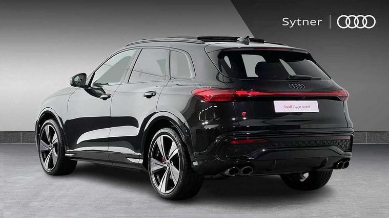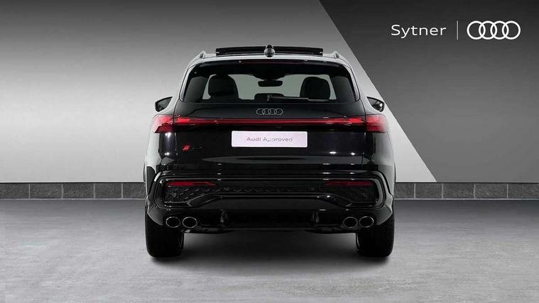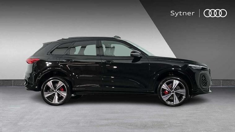 Adaptive cruise assist plus with steering intervention, Advanced driver attention alert, Audi application store, Audi connect emergency call and service, Audi digital key, Audi drive select, Audi smartphone interface, Audi virtual cockpit plus with 11.9" OLED colour display, Camera based traffic sign recognition, Fatigue monitor, Front cross traffic intersection assist, Garage door opener, Lane change assistant with exit warning system, rear cross traffic alert and rear turn assist, Lane departure warning with emergency assist, MMI 10.9" front passenger touch display, MMI navigation plus with high resolution 14.5" OLED touchscreen colour display, Park assist plus, Parking system plus with 360 display, PAS, Reversing camera, Swerve assist and turn assist, Top view camera, Traffic sign based speed limiter, S adaptive air suspension, 2 USB-C ports in both the front and rear, DAB Digital radio, Smartphone compartment with wireless charging, Acoustic glass for front door windows, Active digital light signatures - Six additional combinations of active daytime running light signature, Auto dimming rear view mirror, Coming/leaving home lighting function, Digital OLED tail lights including communication light, Electrically adjustable heated and folding + automatically dimming exterior mirrors, Exhaust tailpipes in dark chrome, Front and rear electric windows, Front door sill trims with aluminium inlays, illuminated with 'S' logo, Full body paint finish, Grill frame, inlay and front air inlets in matt anthracite chrome, Headlight cleaning system, Heated rear window, High beam assist, High gloss window surrounds, Logo projection light in exterior mirrors, Matrix LED headlights, Memory function for door mirrors, Panoramic sunroof, Privacy glass, Projection third brake light for rear window in LED, Radiator grille in phantom black, Rear and side windows with heat insulating glass, Rear honeycombe grille in matt black with inlay in matt anthracite chrome, Rear side wing doors, Rear wash/wipe, Red S rhombus badging with 'S' lettering on rear, S exterior styling, Towbar preparation, Windscreen with acoustic glazing, 3 rear head restraints, 3 seat bench in 2nd row, 3 spoke leather steering wheel with multi-function buttons with touch control, flattened on top and bottom, with S badging and contrast stitching, 40:20:40 split folding rear seat bench with centre armrest and cup holders, Comfort centre armrest, Deluxe 3 zone electronic climate control, Electric steering wheel adjustment, Electrically adjustable front seats with memory function for driver's side, Front and rear floor mats, Front seat ventilation, Front sport seats with integrated head restraints, Headlining in black cloth, Heated front seats, Heated outer rear seats, Heated steering wheel, i-Size child seat mounting on the front passenger side and outer rear seats, i-Size and top tether on the outer rear seats, Interior trim in aluminium look, Luggage compartment lid, electrically opening and closing, Perforated fine nappa leather with diamond stitching incl ventilation and massage function for front seats, Pneumatically adjustable lumbar support with massage function for front seats, Single front passenger seat, Softwrap in Dinamica, Stainless steel pedals and footrest, Steering wheel grips in perforated leather and shift paddles, Ambient lighting package plus - Q5, Black styling package plus - Q5, Sound and Vision pack - Q5, Storage and luggage compartment pack - Q5, 3x3 point rear seatbelts, ABS, Acoustic vehicle alerting system, Convenience key with safelock, Driver and front passenger airbag with passenger airbag deactivation, Electric child safety locks, First aid kit with warning triangle and high visibility vests, Front emergency brake assist, Front side airbags with head airbag system and front interaction airbag, Hill hold assist, Occupant detection in rear seat area, Proactive passenger protection system for front, sides and rear, Red brake calipers, Side airbags in front and rear with head airbag system and front interaction airbag, Tyre pressure loss indicator, Anti theft alarm, Anti-theft wheel bolts, Remote control key with SAFELOCK and keyless go, Accent surfaces and control buttons in gloss black, Black dashboard with contrast stitching, Steel grey seat stitching, Upper and lower interior elements in dinamica microfiber, Tyre repair kit,