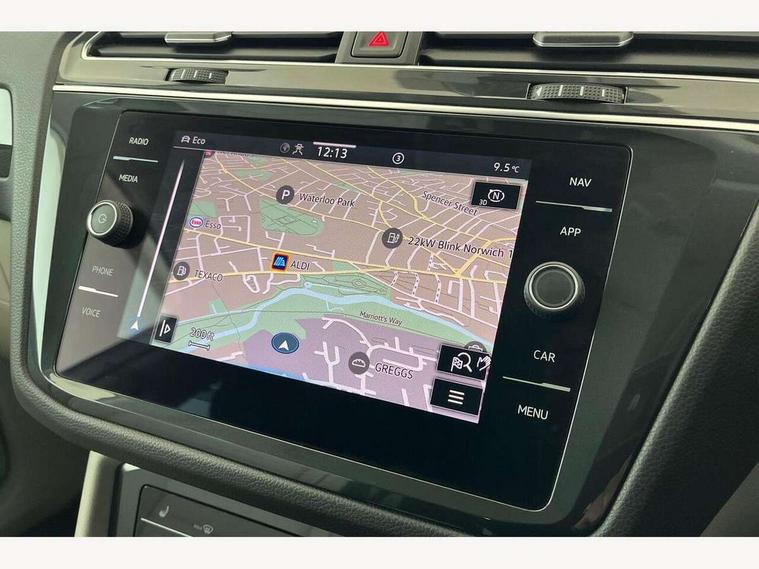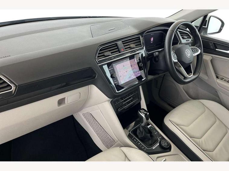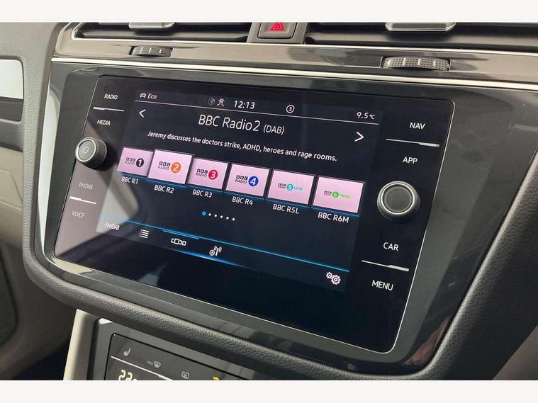 Adaptive cruise control ACC stop and go including speed limiter, App-Connect incl. App-Connect Wireless for Apple CarPlay and Android Auto, Bluetooth phone integration system, Distance control assist, Driver alert system, Driver profile selection, Dynamic road sign display, eCall emergency call system, Electromechanical speed sensitive power steering, Engine start/stop button, Lane keeping system Lane Assist, Lights on warning, Motorised electric tailgate operated via key fob, drivers door and foot movement under tailgate, Multifunction front facing camera, Outside temperature display, Premium multifunction display with multi colour display, Remote control boot opening, Rev counter, Revision / skills operating concept travel assistant, Service interval indicator, Speed limit display, Start/stop system with regenerative braking, Tailgate/trunk lid unlocking from outside, Trip computer, Warning sound and light for doors and tailgate open, All wheel drive - 4Motion, Battery regeneration during braking, Diesel particulate filter, Misfuel prevention device for diesel engine, Selective Catalytic Reduction, XDS electronic differential lock for improved traction and handling, 4 X 20 watt output, 8 Speakers, Diversity antenna for FM reception, Radio, SD card slot, Simultaneous pairing of 2 compatible mobile devices, SMS functionality - read, compose and send SMS messages using touch-screen display, Title and cover art display, USB C ports, Aluminium door sill protectors, Auto dimming interior rear view mirror, Automatic headlight control system, Body colour door handles, Body coloured bumpers, Body coloured door mirrors with integrated indicators, Coming/leaving home lighting function, Dynamic headlight range control, Front and rear electric windows, Heated rear window, High level 3rd brake light, IQ light-Adv high beam, Dynamic light assist for LED matrix headlamp+LED separate DRL+DCL, dark red rear LED tech, Poor weather light+ cornering light, Laminated safety glass windshield, heat and sound insulating, LED rear number plate lights, Poor weather light and cornering light, Privacy glass for rear side windows and rear window, Rain sensor windscreen wipers, Rear exhaust tailpipe, Rear fog lamp, Rear side wing doors, Rear windscreen washer and wiper with interval delay, Side and rear windows in heat insulating glass, Tilting and sliding panoramic sunroof with rear panoramic sunroof, Trailer Stability Programme, Windscreen wipers/ intermittent wipe + 4 position delay, 12V outlet in center console rear and in luggage compartment, 12V outlet in front and tray, 2 cup holders in front, 2 LED front reading lights, 2 LED rear reading lights, 3 bench rear seats in 2nd row, 3 rear headrests, 4 load lashing points, 40:20:40 split folding rear seats, Air Care Climatronic 3 zone automatic climate control with enhanced air filter and controls in the rear, Backrest release for left front seat, Climate control unit rear with touch function, Door and side trim panel in foam film and woven fabric, Front centre armrest, Front footwell illumination, Front seats head restraints (x-adjustment), Height adjustable front seats, Height/reach adjust steering wheel, Instrument lighting white adjustable panel illumination, Interior light with delay, Isofix Preparation 2 Rear child seats, Leather gear knob, Lockable cooled glovebox, Luggage compartment lighting, Luggage net, Rear bench seat asymetrically split folding, longitudinally movable and folding with load-through hatch and center armrest, Remote unlocking for rear seat backrest, Removable luggage cover, Removable rear headrests, Safety optimised front head restraints, Single front passenger seat, Sliding/reclining rear seats, Standard rear seat release, Storage compartment in driver's door, Storage compartment in passenger's door, Storage compartment in rear doors, Storage compartments in luggage area left and right, Storage tray on dashboard, Sun visors with illuminated vanity mirrors, Top front comfort seats, Variable boot floor, height adjustable and removable, Easy open and close pack with safelock - Tiguan, 3 point seat belt for centre rear seats, 3 point seat belts with seat belt pretensioners for the outer rear seats, Active bonnet, Curtain airbags for front and rear passengers, Driver/Front Passenger airbags, Drivers knee airbag, Electronic parking brake with auto hold, Electronic Stability Control with driver steering recommendation, ABS, ASR, EDL, EDTC and trailer stabilization, Front assist with autonomous emergency braking (for Adaptive Cruise Control ACC up to 130 mph), Front disc brakes, Front passenger airbag deactivation, Front side airbags, Height adjustable front 3 point seatbelts + pretensioners, Hill hold control, Manual child proof rear door locks, Pedestrian monitoring system, Power assisted brakes, Proactive passenger protection system in combination with front assist, Rear disc brakes, Rigid safety cell with front and rear crumple zones, Two tone horn, Warning sound and light for front seat belts if unfastened, Anti theft alarm system with interior monitoring, backup horn and towing protection, Anti theft wheel bolts, Central locking system with safelock radio remote control and 2 remote control folding keys, Electronic engine immobiliser, Tool kit,