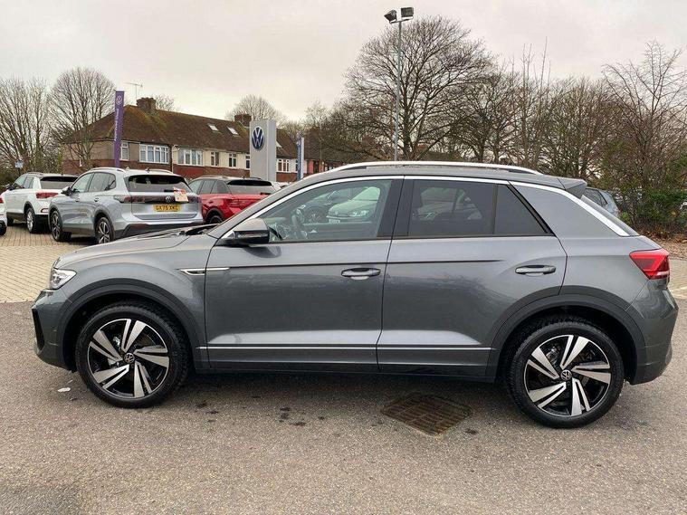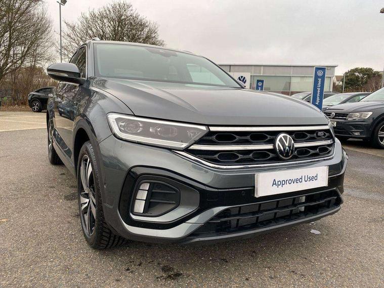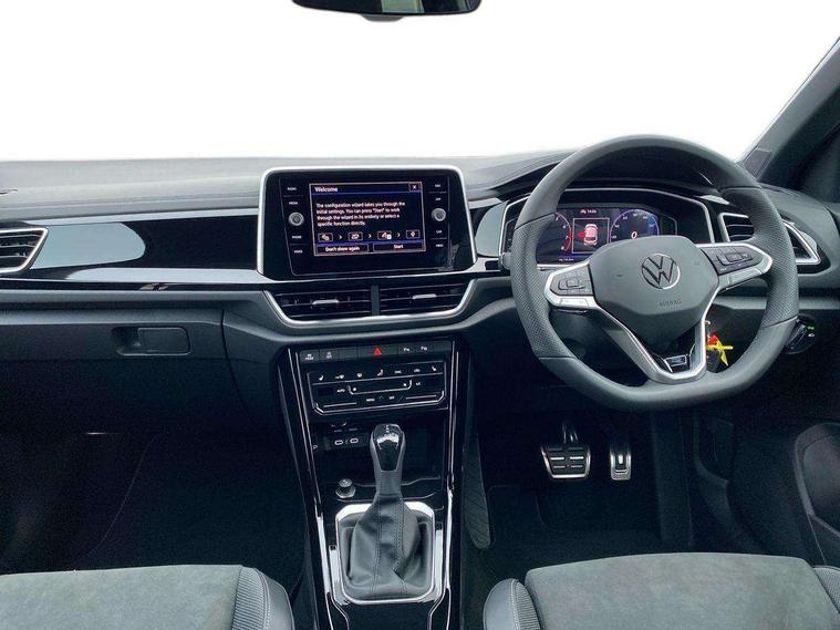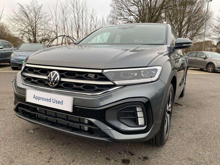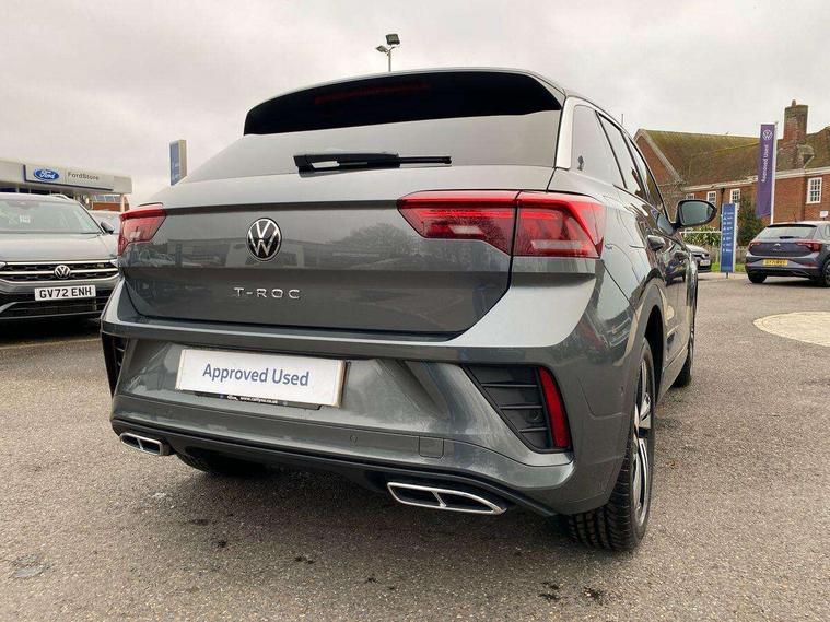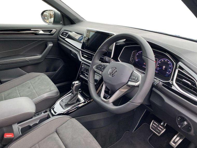 10.25" Digital cockpit pro, Advanced driver attention and drowsiness monitor, Emergency call service, Lane keeping system Lane Assist, Mobile phone interface, Modified key software - reduce switch off time for key status change to Long no motion, Online services, Park assist including front and rear parking sensors, Service interval indicator, Tailgate/trunk lid release from outside, Think blue trainer driver tips and journey analysis, Warning sound and light for front seatbelts unfastened, Wireless app connect, Battery regeneration during braking, Start/stop function with battery regeneration, DAB Digital radio, Diversity antenna for FM reception, Front and rear 6 speakers, Music playback - MP3, WMA and AAC files, Premium USB cable in choice of either Apple or Android smartphone compatibility, SD card slot, Simultaneous pairing of 2 compatible mobile devices, Title and cover art display, We Connect and We Connect Plus functionality, Auto dimming interior rear view mirror, Automatic hazard lights activation under emergency braking, Automatic headlight control with LED separate daytime running lights with coming/leaving home function, Body coloured exterior mirror housings and door handles, Electrically adjustable and heated door mirrors, Extended roof spoiler, Exterior mirrors aspherical on driver side, convex on front passenger side, External USB type C socket and charging sockets, Front windscreen wiper with intermittent wipe and 4 position delay, Heated rear window, LED 3rd brake light, LED rear combination lamps, LED rear number plate lights, Power windows with comfort operation and circuit breaker, Privacy glass for rear side windows and rear window, R-Line design body coloured bumpers, Rain sensor, Rear exhaust tailpipe, Rear fog light on one side and reversing lights on both sides, Rear side wing doors, Rear wash/wipe with intermittent wipe setting, Remote electrically foldable door mirrors, puddle lights and reverse activated passenger's door mirror, 12V power socket in centre console, 3 rear head restraints, 3 seat bench in 2nd row, 4 load lashing points in luggage compartment, Air care climatronic air conditoning system with active combination filter and 2-zone temperature control, Black roof lining, Chrome plated decorative trims, Chrome plated radiator grille inserts, air vent surrounds and light switch surrounds, Door and side trim panel with leatherette insert, Front + rear carpet mats, Front centre armrest, Front cupholders x 2, Front footwell illumination, Front reading light, Front scuff plates with R Line logo, Front seat back storage pockets, Glove compartment door with light, Instrument lighting, white adjustable panel illumination, Interior ambient lighting and surround lighting, Interior light delay, Isofix child seat preparation, Leather gearshift handle, Load-through provision with cup holder when folded down ('Unsplit rear seat bench, split folding backrest, with centre armrest), Luggage compartment lighting, Single front passenger seat, Stainless steel pedals, Storage compartment in left and right luggage area, Storage compartment in rear doors, Storage compartments in driver and front passenger doors, Sunvisors with illuminated vanity mirrors, Variable boot floor, height adjustable and removable, Driver assistance pack without proactive passenger protection - T-Roc, 3 point height adj front seatbelts + pretensioners, 3 point seatbelts in outer rear with ECE label, ABS, Child locks on rear doors, City emergency braking and pedestrian monitoring, Driver and front passenger airbag with front passenger airbag deactivation, Driver and front passenger safety-optimised head restraints, Drivers seatbelt reminder, Electronic parking brake, Electronic Stability Control (ESC) inc EDL (Electronic Differential Lock) and ASR (Traction Control), Front and rear passengers curtain airbag system including front side airbags, Hill start assist, Predictive pedestrian protection, Rear disc brakes, Two tone horn, Tyre pressure loss indicator, Volkswagen roadside assistance, Piano black decorative inserts in dashboard and front door trim panels, Trims for alloy wheels,