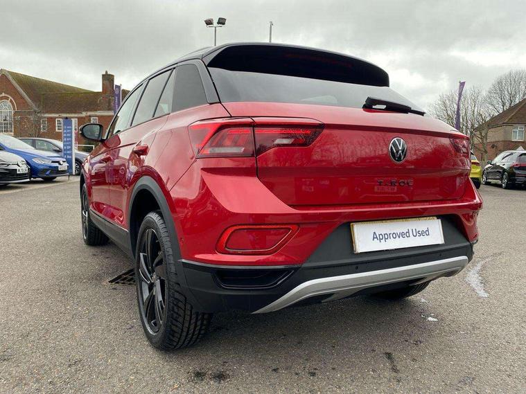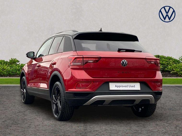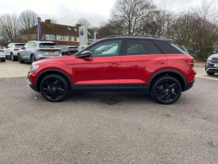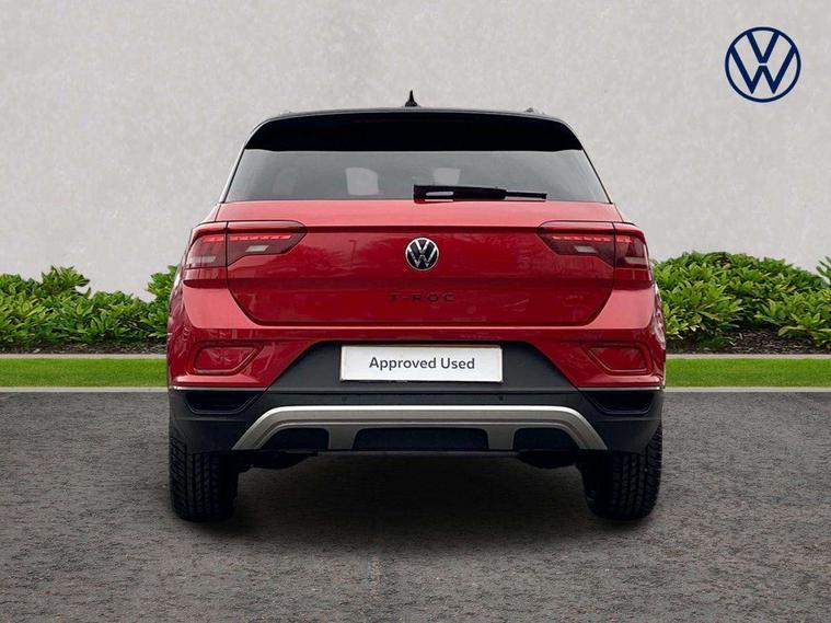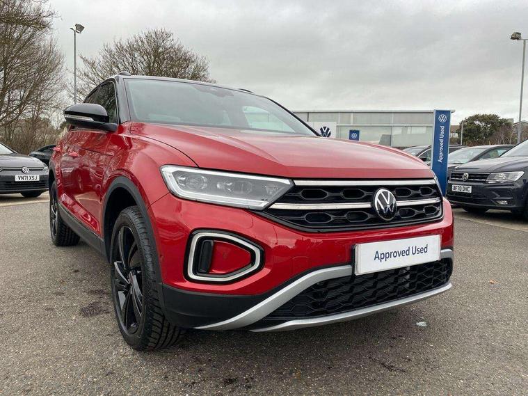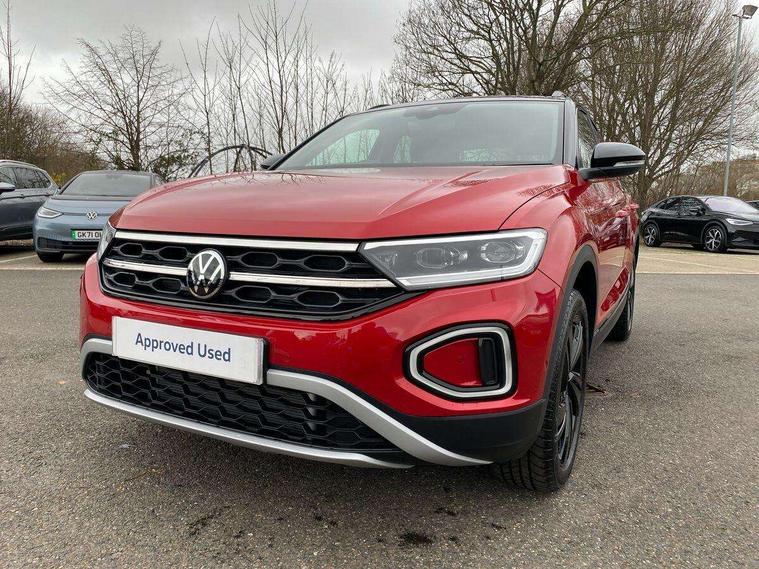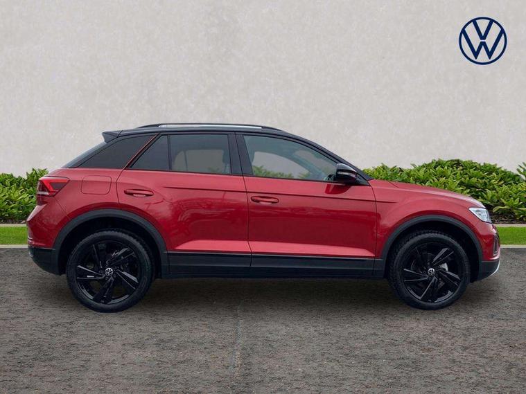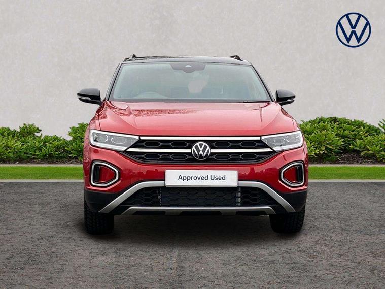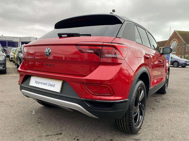 10.25" Digital cockpit pro, Advanced driver attention and drowsiness monitor, Emergency call service, Lane keeping system Lane Assist, Mobile phone interface, Modified key software - reduce switch off time for key status change to Long no motion, Online services, Park assist including front and rear parking sensors, Power assisted speed sensitive steering, Service interval indicator, Tailgate/trunk lid release from outside, Think blue trainer driver tips and journey analysis, Warning sound and light for front seatbelts unfastened, Wireless app connect, Battery regeneration during braking, Start/stop function with battery regeneration, DAB Digital radio, Diversity antenna for FM reception, Front and rear 6 speakers, Music playback - MP3, WMA and AAC files, Premium USB cable in choice of either Apple or Android smartphone compatibility, SD card slot, Simultaneous pairing of 2 compatible mobile devices, Title and cover art display, We Connect and We Connect Plus functionality, Auto dimming interior rear view mirror, Automatic hazard lights activation under emergency braking, Automatic headlight control with LED separate daytime running lights with coming/leaving home function, Body colour sports bumpers with silver metallic underbody fascia, Body coloured exterior mirror housings and door handles, Dynamic headlight range control with self adjusting whilst driving, Electrically adjustable and heated door mirrors, Extended roof spoiler, Exterior mirrors aspherical on driver side, convex on front passenger side, External USB type C socket and charging sockets, Front windscreen wiper with intermittent wipe and 4 position delay, Heated rear window, LED 3rd brake light, LED rear combination lamps, LED rear number plate lights, Light mode for poor weather, rain, fog or snow, Power windows with comfort operation and circuit breaker, Privacy glass for rear side windows and rear window, Rain sensor, Rear exhaust tailpipe, Rear fog light on one side and reversing lights on both sides, Rear side wing doors, Rear wash/wipe with intermittent wipe setting, Remote electrically foldable door mirrors, puddle lights and reverse activated passenger's door mirror, 12V power socket in centre console, 3 rear head restraints, 3 seat bench in 2nd row, 4 load lashing points in luggage compartment, Air care climatronic air conditoning system with active combination filter and 2-zone temperature control, Chrome plated radiator grille inserts, air vent surrounds and light switch surrounds, Door and side trim panel with leatherette insert, Drawer under drivers seat, Front + rear carpet mats, Front centre armrest, Front comfort sports seats, Front cupholders x 2, Front footwell illumination, Front seat back storage pockets, Glove compartment door with light, Instrument lighting, white adjustable panel illumination, Interior ambient lighting and surround lighting, Interior light delay, Isofix child seat preparation, Leather gearshift handle, LED interior light with switch off delay/dimmer and 2 front/rear LED reading lights, Load-through provision with cup holder when folded down ('Unsplit rear seat bench, split folding backrest, with centre armrest), Luggage compartment lighting, Non-folding front passenger seat backrest, Single front passenger seat, Storage compartment in left and right luggage area, Storage compartment in rear doors, Storage compartments in driver and front passenger doors, Sunvisors with illuminated vanity mirrors, Variable boot floor, height adjustable and removable, Driver assistance pack without proactive passenger protection - T-Roc, 3 point height adj front seatbelts + pretensioners, 3 point seatbelts in outer rear with ECE label, ABS, Child locks on rear doors, City emergency braking and pedestrian monitoring, Driver and front passenger airbag with front passenger airbag deactivation, Driver and front passenger safety-optimised head restraints, Drivers seatbelt reminder, Electronic parking brake, Electronic Stability Control (ESC) inc EDL (Electronic Differential Lock) and ASR (Traction Control), Front and rear passengers curtain airbag system including front side airbags, Predictive pedestrian protection, Rear disc brakes, Two tone horn, Tyre pressure loss indicator, Volkswagen roadside assistance, Deep iron grey decorative inserts in dashboard, centre console and front door trim panels, Trims for alloy wheels,
