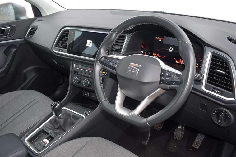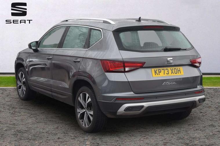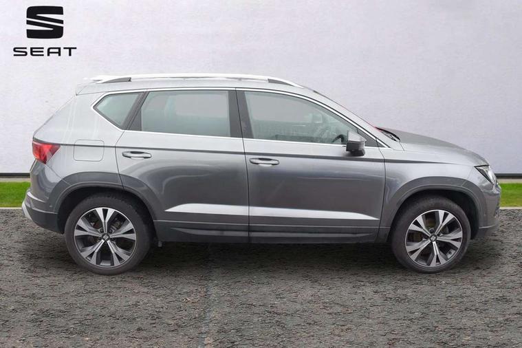 8" Digital cockpit, Colour multi-function on board computer display, Cruise control system with speed limiter, E-call, Outside temperature gauge, PAS, SEAT drive profile with driving experience button - Normal, Sport, Eco and Individual mode, steering and throttle response, Self parking functionality (includes front and rear parking sensors), Start/stop system, Tailgate, Trip computer, Wireless full link smartphone integration, Wireless phone charger, Steering wheel mounted audio/phone controls, Black wheel arch surrounds, Body colour bumpers, Chrome front grille frame, Chrome roof rails, Chrome side window trim, Daytime running lights, Door mirrors with welcome light silhouette, Dynamic headlight range control with self adjusting whilst driving, Electric adjustable/heated/folding door mirrors, Front and rear electric windows, Full LED headlamps with lens and LED front fog lamps with cornering function, LED rear tail lights with dynamic indicators, Rear fog lights, Rear side wing doors, Rear wash/wipe, Simulated exhaust pipes, Variable front intermittent wipers, 12V socket in front, 3 seat bench in 2nd row, 60/40 split folding rear seat, Cloth upholstery with front comfort seats, Drawer under right front seat, Dual zone climate control, Front and rear head restraints, Front centre armrest, Front seat back storage pockets, Height adjustable driver and passenger seat with lumbar adjustment, ISOFIX points in outer rear seats with top tether anchorage points, Leather steering wheel and gear knob, Rear armrest and easy back seat release mechanism from boot, Single front passenger seat, Interior lighting pack - Ateca, Navigation system pack with DAB - Ateca, 3x3 point rear seatbelts, ABS, Traction control system (TCS), Electronic stability control (ESC) and Electronic differential lock system (XDS), Airbags - Driver and front passenger airbag with deactivation, front side, two curtain and driver's knee airbags, Electric parking brake with auto hold function, Front and rear seatbelt reminder, Front assist with autonomous emergency braking, Hill hold control, Manual rear child locks, Single tone horn, Tiredness recognition system, Traction control, Tyre pressure monitoring system, Alarm, Keyless entry, Locking wheel bolts, Remote central locking, Chrome interior detailing, 18" Performance machined alloy wheels 36/2 in nuclear grey,