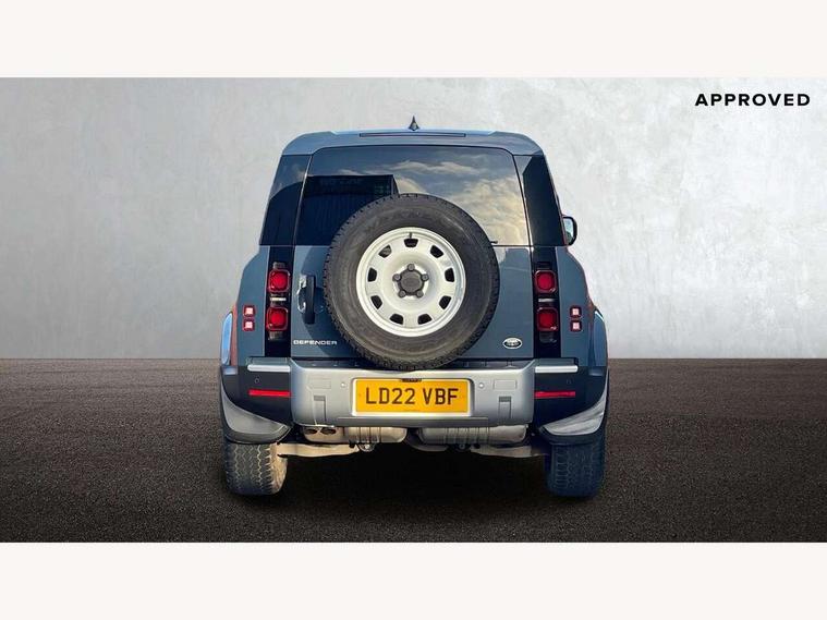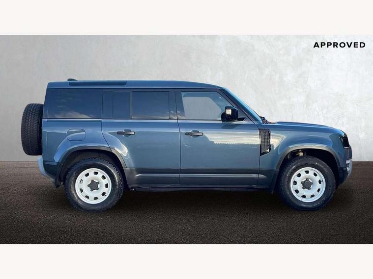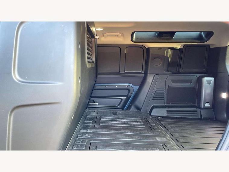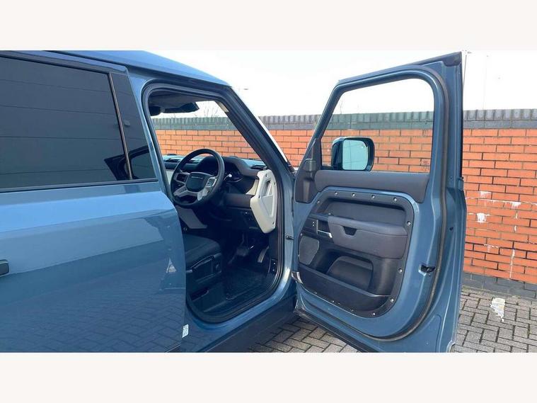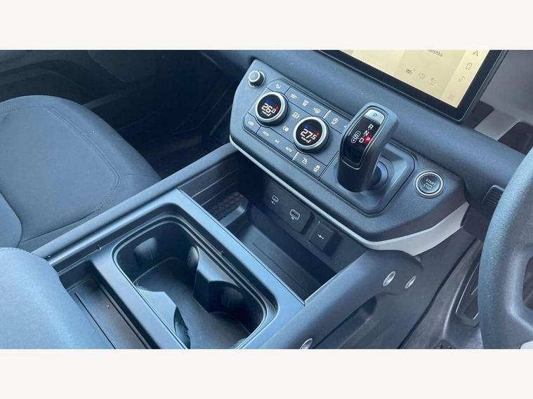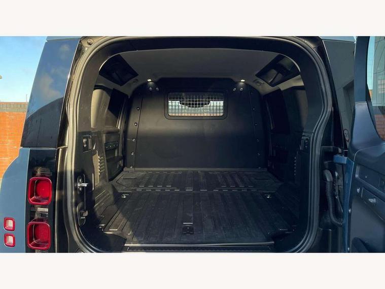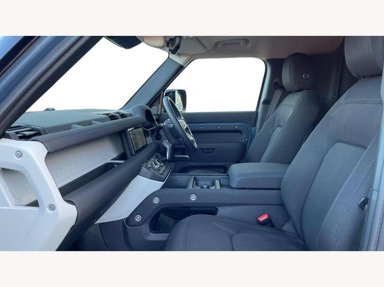 Customer Configurable Autolock, 11.4" touchscreen, 360 parking aid, 3D Surround Camera with 360 View, 180 Rear View, Front Traffic Detection, Forward Vehicle Guidance, Tow Hitch Assist and clear sight Ground View, Brake Hold, Driver condition monitor, Electric power assisted steering (EPAS), Lane keep assist, Low traction launch, Pivi pro connected, Traffic sign recognition adaptive speed limiter, Trip computer, Tyre pressure monitor, Wade Sensing, Android Auto, Apple CarPlay, DAB Radio (Digital Audio Broadcasting), Alpine lights, Assisted tailgate, Automatic headlights and rain sensitive front wipers, Centre high mounted stop light, Electric heated/power fold door mirrors with approach lights and auto dimming driver side, Electric windows with one touch open/close and anti-trap, Exterior signage panel, Follow me home lighting, Heated rear window with timer, Heated windscreen, LED tail light, Privacy glass, Puddle lights, Rear fog lights, Rear wash wiper, Side-hinged tailgate, Standard roof, Standard tread plates, 40:20:40 folding rear seats, Additional lashing points, Carpet mats, Dual zone climate control, Durable rubber cabin flooring, Footwell lights, Full height bulkhead behind row 1 seats, Glovebox storage, High sided rubber mats, Loadspace cover, Loadspace hooks, Loadspace rubber mat, Lockable and illuminated underfloor storage compartment (x1 under boot floor and x1 accessible via rear doors), Overhead stowage for sunglasses, Rear centre headrest, Rear reading light, Signature graphic, Sunvisors with illuminated vanity mirrors, Upgraded loadspace LED lighting, Online pack - Defender with data plan, Brake pad wear indicator, Electronic traction control, Emergency braking, Front airbags, with passenger seat occupant detector, Power operated child locks, Remote for (e-Call, Optimised assistance call, InControl app, Climate, beep and flash and door), Seat belt reminder, Intrusion sensor, Locking wheel nuts, 8 speed automatic transmission, ABS and EBA, All wheel drive, CBC - (Cornering brake control), Dynamic stability control, Electronic brake force distribution, Electronic park brake, Gradient acceleration control, Hill Descent Control, Hill start assist, Particulate filter (DPF), Push button start, Roll stability control, Trailer stability assist, Twin speed transfer box (high/low range),