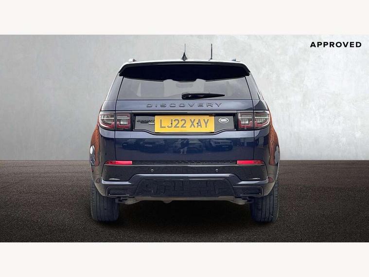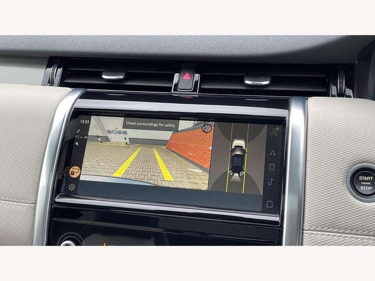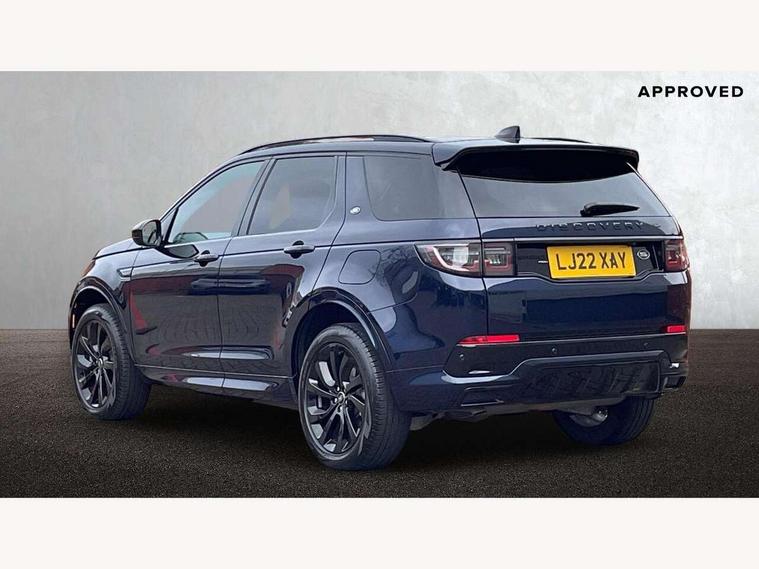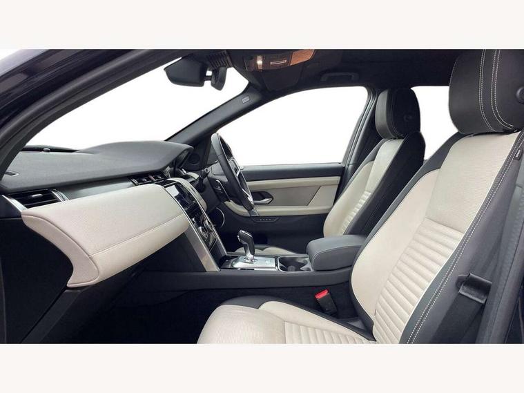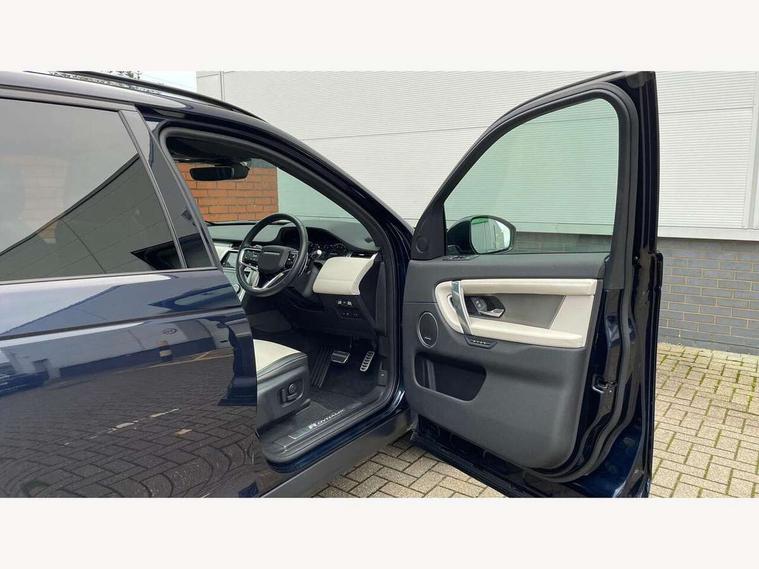 10" touch screen, Adaptive cruise control, Android Auto, Apple CarPlay, Blind spot assist, Clear exit monitor, Driver condition monitor, eCall emergency call system, Front and rear parking aid, InControl remote premium, Lane keep assist, Locking fuel flap, PAS, Pivi Pro connected navigation system with upgraded Infotainment, Powered tailgate/boot lid, Push button start, Rear collision monitor, Rear traffic monitor, Service interval indicator, Traffic sign recognition with adaptive speed limiter, Trip computer, Wade Sensing, 7 kW onboard charger, All terrain progress control, Coil suspension system, Dynamic stability control, Home charging cable, Public charging cable, Terrain Response 2, Bluetooth connectivity including audio streaming, Digital Audio Broadcast radio-DAB, Steering wheel mounted audio controls, 3rd brake light, Automatic headlight levelling, Automatic headlights, Electric front/rear windows, Electric heated/power fold door mirrors with approach lights and auto dimming driver side, Fixed panoramic sunroof with powered sunblind, Front and rear recovery eyes, Heated rear window, Heated windscreen including heated washer jets, Privacy glass, R Dynamic badge, Rain sensing windscreen wipers, Rear fog lights, Rear side wing doors, Rear wing door, Rear wiper, 5 seats, Bright metal pedals, Centre console with armrest, Footwell lights, Front and rear grab handles, Front passenger isofix child seat attachment, Loadspace cover, Loadspace light, Overhead lighting console, Overhead stowage for sunglasses, Rear headrests, Satin chrome gearshift paddles, Sunvisors with illuminated vanity mirrors, Tilt/reach adjustable steering wheel, Black exterior pack - Discovery sport R-Dynamic SE/HSE, Online pack with data plan - Discovery, 3 point seatbelts on all seats, ABS, Brake hold function, Child locks on rear doors, Collision mitigation braking system, Cornering brake control (CBC), Driver/Front Passenger airbags, Drivers knee airbag, Electronic brake force distribution, Electronic parking brake, Emergency brake assist, ESP + traction control, Hill descent control, Hill launch assist, Pedestrian airbag system, Rear seat ISOFIX, Roll stability control, Side and curtain airbags for front and 2nd row seats, Trailer stability control, Tyre pressure monitoring system, Battery Back Up System (BBUS) with tilt sensor, Global lock and unlock switch on driver door, Intrusion sensor, Keyless entry, Locking wheel nuts, Centre stack rails in noble chrome,