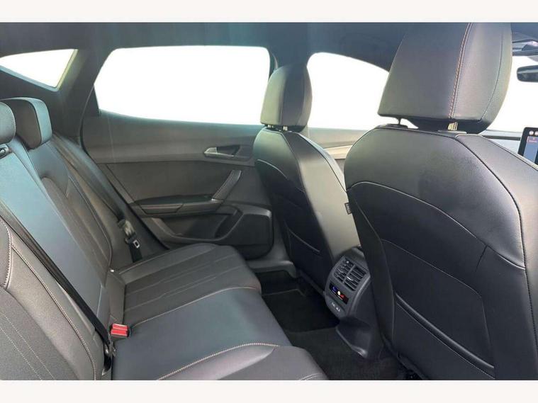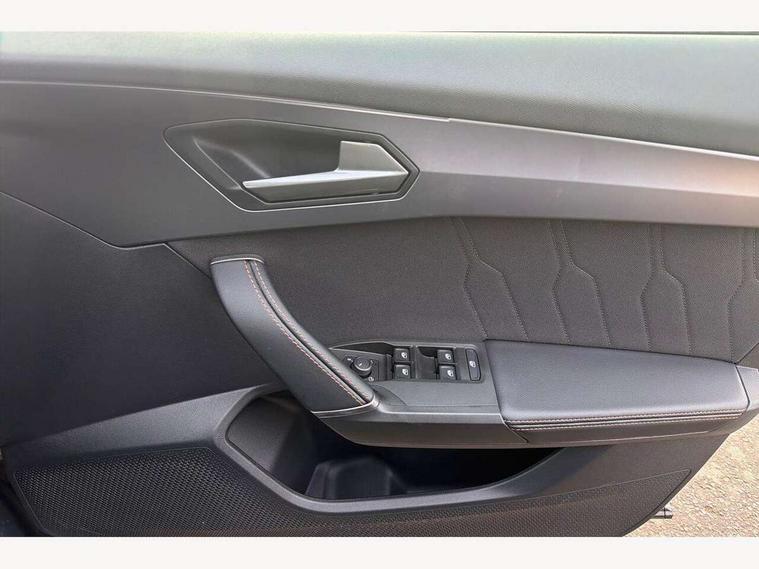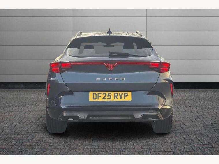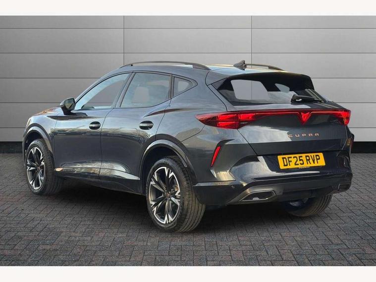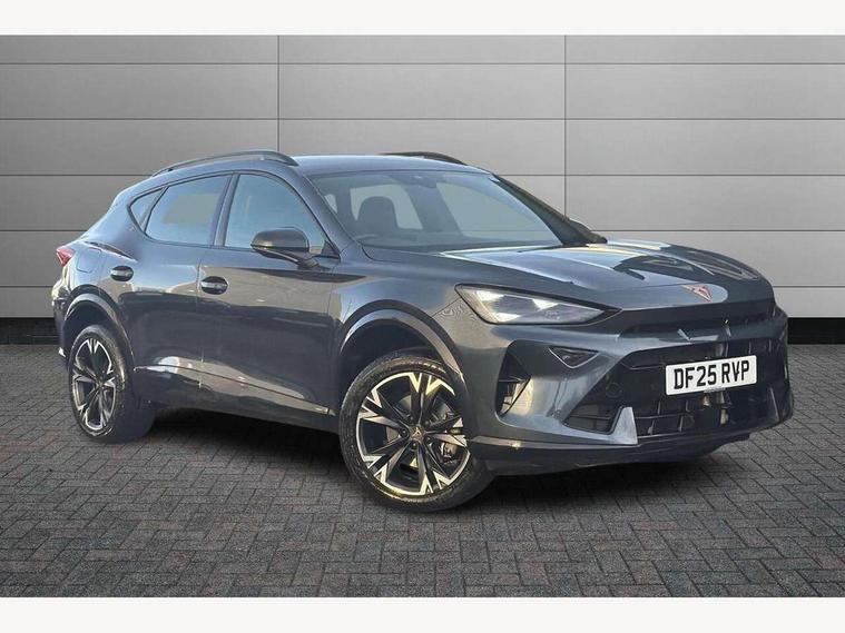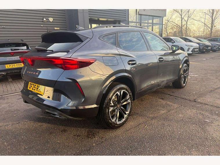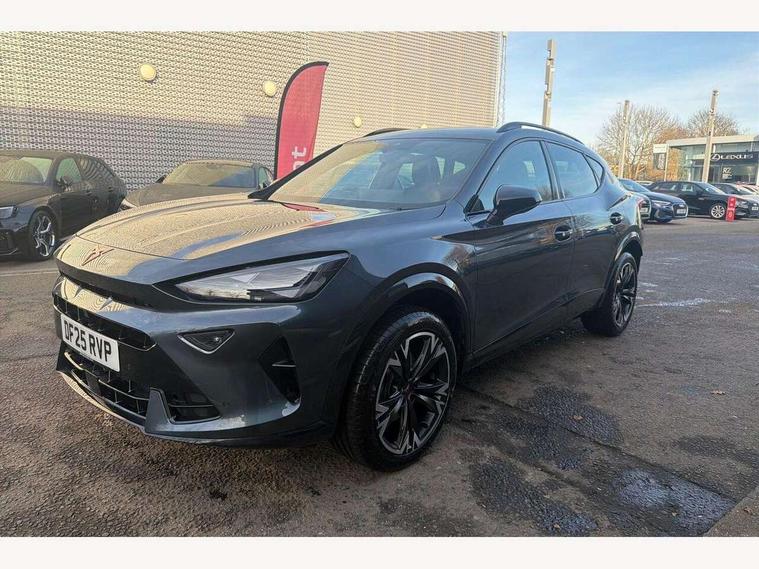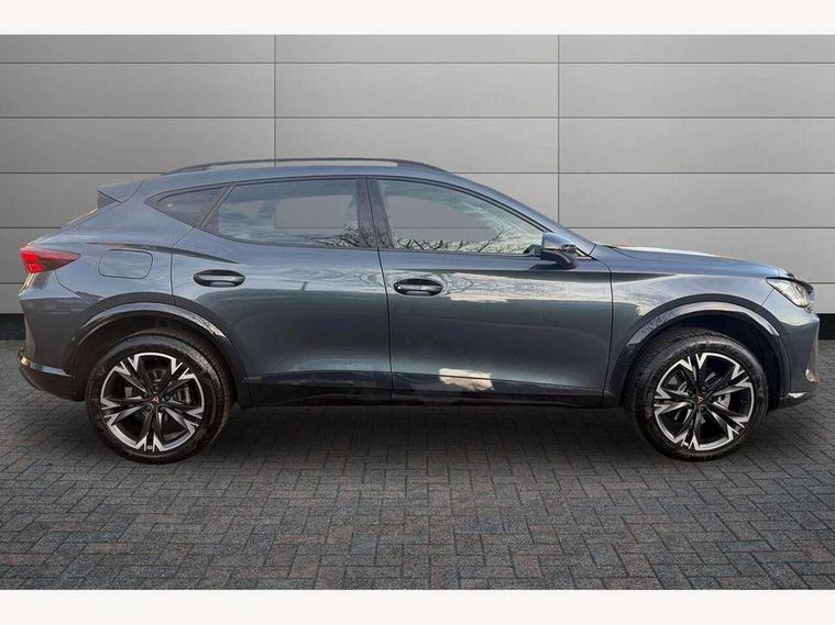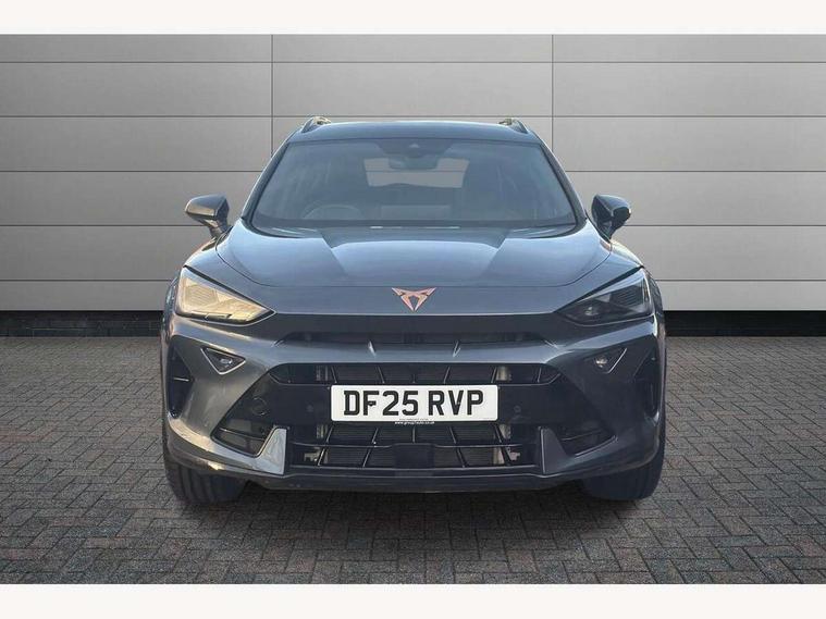 10.25" digital cockpit and configurable dashboard, Adaptive cruise control with follow-to-stop and speed limiter, Advanced driver alert system, Driving profile selection, Dynamic road sign display, Emergency steering support with turn assist, Forward collision warning with automatic braking, Front and rear parking sensors, Full link phone integration, Lane assist, Progressive steering, RPM, trip computer, outside temp gauge, instrument light brightness, low fuel warning light, lights on reminder, gearshift indicator, Service interval indicator, Start/stop system with regenerative braking, Voice control system, Wired Android Auto, Wireless apple carplay, Wireless phone charger, CUPRA sport suspension, Electronic locking differential and dynamic traction support, 2 front and 2 rear USB type C sockets, 7 speakers, Media system with navigation, 12.9" touchscreen display, voice control, DAB, steering wheel mounted controls, Auto dimming rear view mirror, Body colour door handles, Body coloured bumpers, Dark grey wing mirror, Daytime running light with automatic headlight control and coming home feature, Door panel ambient lighting, Dynamic headlight range control, Electric front/rear windows, Electrically adjustable, heated and folding door mirrors, Gloss black roof rails and window surrounds, High beam assist, LED 3rd brake light, LED front fog lamps with cornering function, LED Headlights, LED Taillights with dynamic indicator, Rain sensing wipers, Rear diffuser with black simulated exhaust pipes, Rear fog lights, Rear side wing doors, Rear wash/wipe, Tinted rear windows, Welcome lights (within exterior mirror housing), 12V socket, 2 front and 2 rear reading lights, 3 seat bench in 2nd row, 60/40 split rear bench seat with armrest and mechanical seat release, Black headlining, Black interior roof lining, Cupra sports pedals, Dust/pollen filter, Front and rear head restraints, Front centre armrest, Heated supersports multifunction leather steering wheel with satellite buttons and gear shift paddles, Height/reach adjust steering wheel, Illuminated aluminium doorsteps, Illuminated interior front door sills, Illuminated sunvisor with mirror, Interior ambient lighting, Isofix, Manually adjustable height and lumbar support for front seats, PVC/Cloth upholstery with copper stitching + Sport seats, Satellite steering wheel, Single front passenger seat, Storage pockets on rear of front seats, Three zone climate control with control panel in rear, Variable luggage/load compartment floor, 3 point seatbelts on all rear seats, ABS, Brake control system - ESC and brake booster, Child proof door locks, Driver and front passenger airbags with front passenger airbag de-activation, Electronic parking brake, Front and rear disc brakes, Front side curtain airbags, Hill hold control, Public e-call, Seat belt reminder for front and rear seats, Tyre pressure monitoring system, Anti theft alarm system, Central locking system Keyless Go, Locking wheel bolts, Copper and aluminium interior detailing, 18" Sonora machined silver alloy wheels,