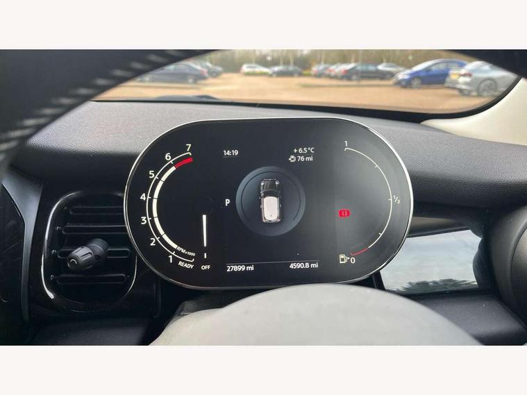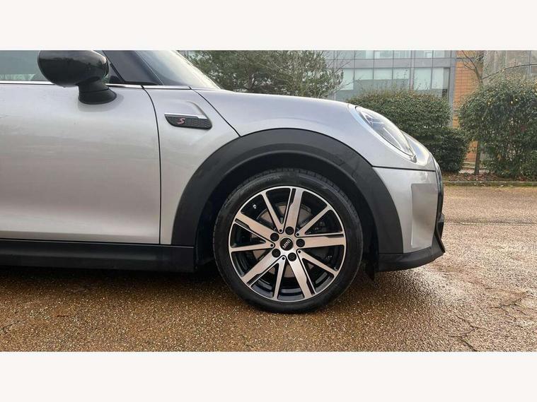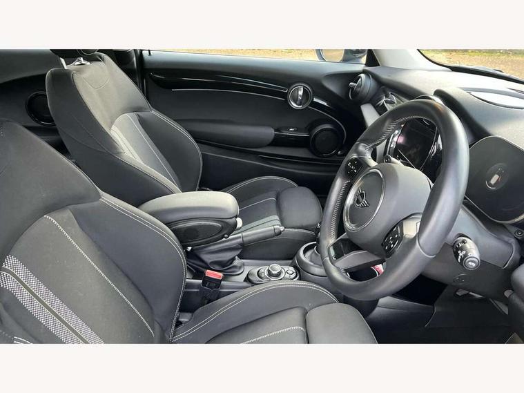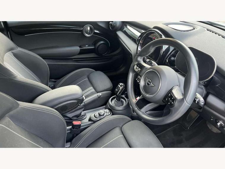 Automatic start/stop function with brake energy recuperation, Compatible mobile phone bluetooth with audio streaming, Electro-mechanical speed dependant steering assistance, Instrument cluster, MINI Driving Modes - centre toggle switch to control driving setting (sport, mid and green), Mini E-call, MINI TeleServices, On board computer, Service interval indicator, Double Vanos system, Fully variable valve control, Gear change indicator display, High precision injection, Performance Control, Steptronic transmission with double clutch, 6.5" touchscreen with LED ring, FM tuner and DAB digital radio, Automatic headlight activation switch, Bonnet scoop, Chrome border honeycomb structure radiator grille with S badge, Chrome plated fuel cap, Dynamic brake lights, Electric front+rear windows, Heated rear window, Heated windscreen washer jets, LED headlight with closed ring and daytime driving lights, Metal door sill strips with Cooper S imprint, Model logo Cooper S on right of tailgate, Rain sensor window wipers, Rear fog lights, Rear LED lights with union jack design, Rear window wiper, Side scuttle panel with integrated indicator, Sun/heat protection glass, Two central exhaust tailpipes with chrome finisher, White indicator lenses, 12V Accessory socket in centre console, 4 lashing eyes in luggage compartment, 60/40 split folding rear seat, Carbon Black colour line, knee roll and door armrests, Chrome interior highlights, Colour line - Carbon black, Cupholders, Front and rear head restraints, Front and rear isofix with front passenger airbag deactivation, Glove compartment, Height and length steering column adjustment, Interior lighting with 12 basic colours selectable via toggle switch in roof, Leather gearshift lever and handbrake gaiters, LED reading lights, vanity mirror lights, front foot well light and spotlight on front seats, Manual air conditioning, Mechanical seat adjustment, driver seat height adjust, forward/back and front seats backrest, Mini logo projection on floor from drivers exterior mirror, Multifunction steering wheel, Satellite grey headlining, Storage compartments in doors, Storage pocket on back of front seats, Sunvisors with vanity mirrors, 3 point seatbelts on all four seats, 6 Airbags - front, side, head and seat belt tensioners, Anti-lock braking system (ABS), DSC - Dynamic Stability Control, Front and rear disc brakes, Hill start assist, Two tone horn, Tyre pressure monitoring system, Alarm system with tilt sensor, monitoring doors, bonnet interior and tailgate, Electronic vehicle immobiliser, Start/stop toggle with keyless go, Tool kit, Tyre repair kit,