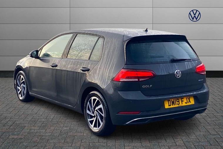 'Lights On' Reminder warning buzzer, ACC - Adaptive cruise control with front assist, forward collision warning, distance monitoring, city emergency brake and speed limiter, Bluetooth telephone and audio connection for compatible devices, Brake pad wear indicator warning light, Driver alert system, Driver profile selection, Driving Mode Selection with four preset modes - Eco, normal, sport or individual modes, Instrument cluster in white, Multifunction computer with visual gear change recommendation for fuel consumption, Power assisted speed sensitive electro-mechanical steering, Push tank flap, Speed limit display, Speedo, rev counter, electronic odometer, trip, service interval display, exterior temperature and fuel gauge, Stop/start system, Warning buzzer and light for front seatbelts unfastened, Battery regeneration during braking, XDS electronic differential lock, Composition media system, DAB Digital radio receiver, Driver Personalisation profile selection, MP3/WMA compatability, Multi device interface (MDI) with USB connection, Personalisation 1.1 profile for media, Premium USB cable in choice of either Apple or Android smartphone compatibility, SD card slot, SMS Functionality, USB and SD card connectivity, Black front air intake and radiator grille with chrome insert, Black rear diffuser, Body colour bumpers, Body colour door handles, Body colour door mirrors with integrated indicators, Dusk sensor + automatic driving lights, Electric front windows, Electric rear windows, Electrically adjustable and heated door mirrors, Fully galvanised body, Heated rear windscreen, Hidden exhaust pipe, High level 3rd brake light incorporating LED Technology, LED daytime running lights, LED front fog lights with static cornering light function, Rear fog lamp, Rear tinted glass 65% light absorbing from B pillar backwards, Rear window aerial, Rear window wash/wipe with intermittent wipe, Reflectors in all doors, Tailgate with integrated rear roof spoiler, Windscreen wipers/ intermittent wipe + 4 position delay, 12V socket in luggage compartment, 3 rear headrests, 4 load lashing points in luggage compartment, 60/40 split folding rear seat backrest, Auto fold down lever in rear seat backrest, Bag hook in luggage compartment x 2, Cooled glovebox, Cupholder cover, Dust/pollen filter, Front and rear reading lights incorporating LED technology, Front centre armrest with storage compartment and two rear air vents, Front seat back storage pockets, Grab handles front x 2, rear x 2 with integrated coat hooks, Height and reach adjustable steering wheel, Illuminated vanity mirrors, Instrument lighting white adjustable panel illumination, Interior light delay, Isofix preparation for 2 rear child seats, Load through provision with rear centre armrest and cupholders x2, Luggage compartment lighting, Overhead storage box, Passenger underseat drawer, Pearl grey headlining, Storage box in luggage compartment, Storage compartment in roof console with cover, Storage compartments in centre console, Storage compartments in front doors, Storage compartments in rear doors, Stowable luggage compartment cover, Sun visors, Variable boot floor, height adjustable and removable, Convenience Pack - Golf, Light and Sight pack - Golf, Mirror pack - Golf, 3 rear three point seatbelts, Airbags - Driver's and front passenger's, curtain airbag, Driver's knee, front side impact and passenger's airbag deactivation switch, Anti-lock Braking System (ABS) with Hydraulic Brake Assist (HBA), Automatic post collision braking system, Child locks on rear doors, Driver/Passenger optimised head restraints, Electronic parking brake with auto hold, Electronic stability control (ESC) including Electronic differential lock (EDL) and ASR (Traction control) with deactivation via infotainment system, Front ventilated disc brakes and rear disc brakes, Pre crash preventive occupant protection, Three point height adjustable front seatbelts with tensioners, Tyre pressure loss indicator, Alarm with interior protection and deactivation via infotainment system, Electronic engine immobiliser, Remote central locking with 2 remote folding keys, Brushed dark silver decorative inserts in dash and door panels, Chrome plated air vent surround, Chrome plated electric mirror adjustment light switch surround, Polar night black centre console, Steel space saver spare wheel,