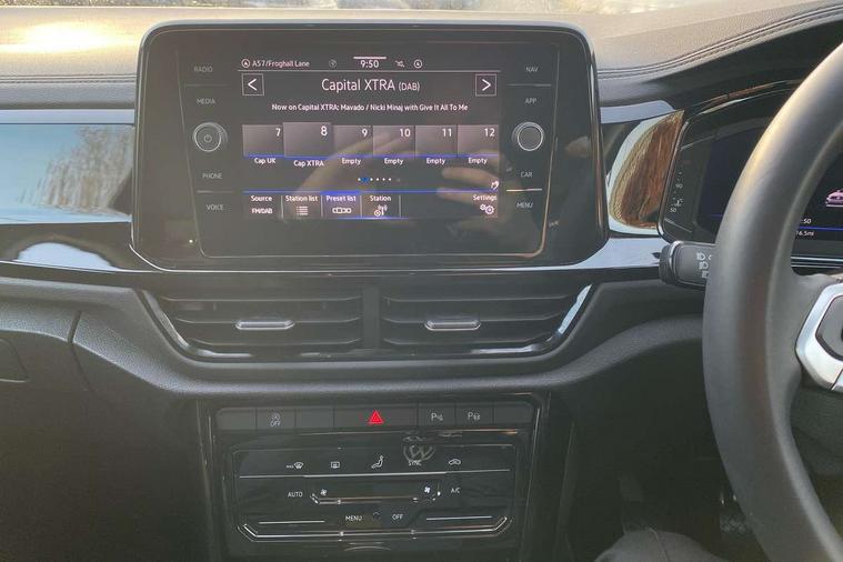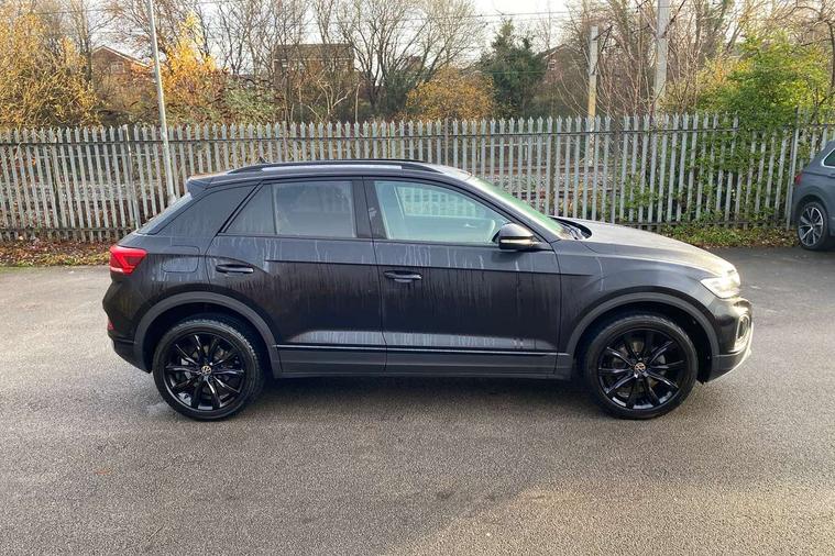 10.25" Digital cockpit pro, Bluetooth mobile phone interface, Driver alert system with fatigue detection, Driver tips and journey analysis, Dynamic road sign display, Emergency call service, Lane keeping system Lane Assist, Modified key software - reduce switch off time for key status change to Long no motion, Online services, Park assist including front and rear parking sensors, Power assisted speed sensitive steering, Service interval indicator, Tailgate/trunk lid release from outside, Think blue trainer driver tips and journey analysis, Warning sound and light for front seatbelts unfastened, Wireless app connect, Battery regeneration during braking, Front shock absorption, Rear shock absorption chassis with increased ride height, Start/stop function with battery regeneration, Diversity antenna for FM reception, Music playback - MP3, WMA and AAC files, Premium USB cable in choice of either Apple or Android smartphone compatibility, SD card slot, Simultaneous pairing of 2 compatible mobile devices, Title and cover art display, We Connect and We Connect Plus functionality, 3rd brake light, Auto dimming interior rear view mirror, Automatic hazard lights activation under emergency braking, Automatic headlight control with LED separate daytime running lights with coming/leaving home function, Body colour sports bumpers with silver metallic underbody fascia, Dynamic headlight range control with self adjusting whilst driving, Extended roof spoiler, Exterior mirrors aspherical on driver side, convex on front passenger side, External USB type C socket and charging sockets, Front windscreen wiper with intermittent wipe and 4 position delay, Heated rear window, LED rear combination lamps, LED rear number plate lights, LED tail lamp rear comination lamps, Light mode for poor weather, rain, fog or snow, Power windows with comfort operation and circuit breaker, Rain sensor, Rear exhaust tailpipe, Rear fog light on one side and reversing lights on both sides, Rear side wing doors, Rear wash/wipe with intermittent wipe setting, Remote electrically foldable door mirrors, puddle lights and reverse activated passenger's door mirror, 12V power socket in centre console, 3 rear head restraints, 3 seat bench in 2nd row, 4 load lashing points in luggage compartment, Air care climatronic air conditoning system with active combination filter and 2-zone temperature control, Chrome plated radiator grille inserts, air vent surrounds and light switch surrounds, Door and side trim panel with leatherette insert, Drawer under drivers seat, Front + rear carpet mats, Front centre armrest, Front comfort sports seats, Front cupholders x 2, Front footwell illumination, Instrument lighting, white adjustable panel illumination, Interior ambient lighting and surround lighting, Interior light delay, Isofix child seat preparation, Leather gearshift handle, LED interior light with switch off delay/dimmer and 2 front/rear LED reading lights, Load-through provision with cup holder when folded down ('Unsplit rear seat bench, split folding backrest, with centre armrest), Luggage compartment lighting, Non-folding front passenger seat backrest, Single front passenger seat, Storage compartment in left and right luggage area, Storage compartment in rear doors, Storage compartments in driver and front passenger doors, Sunvisors with illuminated vanity mirrors, Variable boot floor, height adjustable and removable, Driver assistance pack without proactive passenger protection - T-Roc, 3 point height adj front seatbelts + pretensioners, 3 point seatbelts in outer rear with ECE label, ABS, Child locks on rear doors, Driver and front passenger airbag with front passenger airbag deactivation, Driver and front passenger safety-optimised head restraints, Drivers seatbelt reminder, Electronic parking brake, Electronic Stability Control (ESC) inc EDL (Electronic Differential Lock) and ASR (Traction Control), Front and rear passengers curtain airbag system including front side airbags, Front assist with city emergency braking and pedestrian monitoring, Front disc brakes, Front seat side impact airbags, Predictive pedestrian protection, Rear disc brakes, Single tone horn, Tyre pressure loss indicator, Volkswagen roadside assistance, Anti-theft alarm system with interior monitoring, backup horn, and towing protection, Remote central locking with SAFELOCK, radio remote control with 2 remote control folding keys, Trims for alloy wheels,