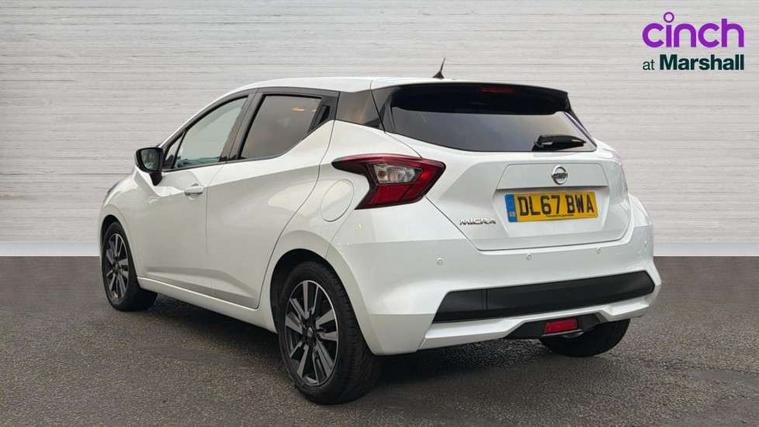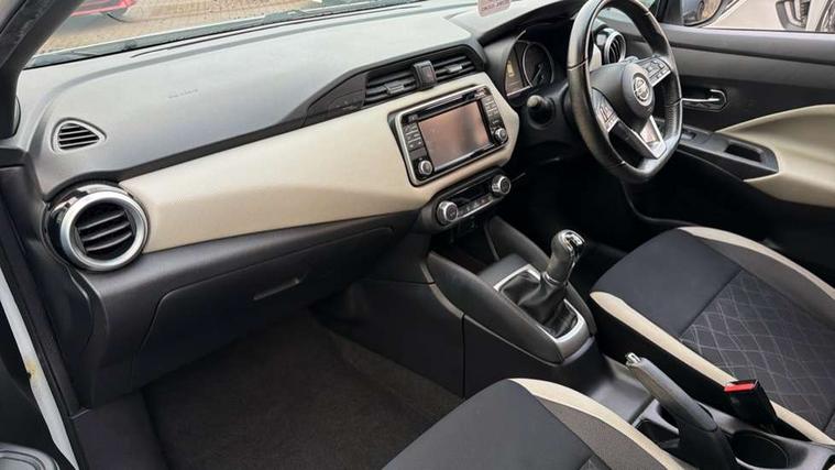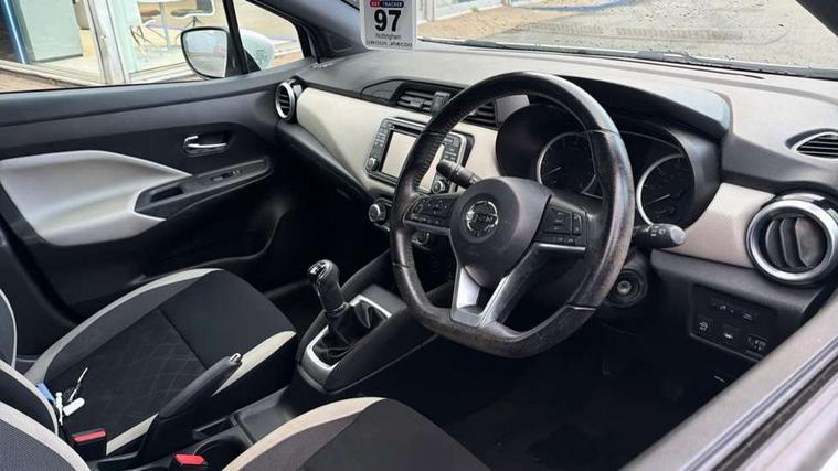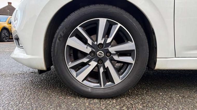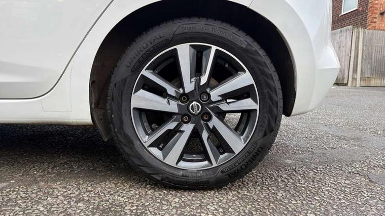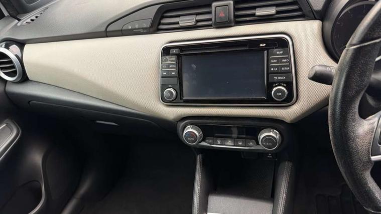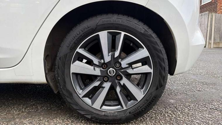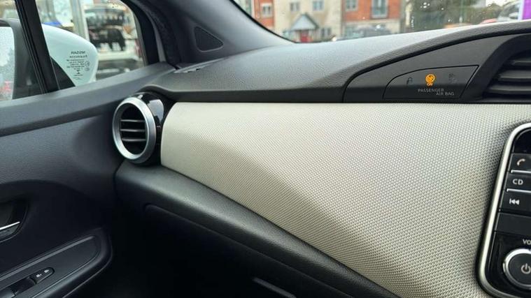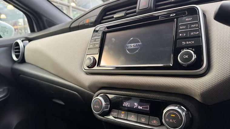Adjustable speed limiter, Bluetooth system, Cruise control, Driver information module, Lane departure warning system, Nissan connect sat nav system, Outside temperature gauge, Traffic sign recognition, Trip computer, 4 speakers, DAB Digital radio, MP3 player, Radio/single CD player, USB/iPod connection, Automatic headlights with dusk sensor, Body coloured door handle inserts, Chrome door handles, Electric folding door mirrors, Electrically adjustable door mirrors, Front fog lights, Heated door mirrors, High beam assist, High mounted stop lamp, LED daytime running lights, LED indicators in door mirrors, Power front windows, Privacy glass, Rain sensor windscreen wipers, Rear roof spoiler, Rear wiper, 12V power point front, 2 height adjustable rear headrests, 3 cupholders, 60/40 split folding rear seat, Automatic air conditioning, Boot carpet, Boot light, Driver's seat manual height adjust, Driver/passenger sunvisors and vanity mirrors, Front and rear door pockets with bottle holders, Front console storage box, Gear shift indicator, Height adjustable front headrests, Height adjustable steering wheel, Isofix front passenger and rear seat preparation, Leather wrapped steering wheel, LED ambient lighting, Passenger seat back pocket, Satin silver air vents, ABS+EBD+Brake assist, Crash sensor, Driver/Front Passenger airbags, ESP + ASR traction control + CSV understeer control, Forward emergency braking, Front and rear curtain airbags, Front side airbags, Hill start assist, Manual passenger airbag deactivation function, Seatbelt warning, Three 3 point rear seatbelts, Tyre pressure monitoring system, Warning triangle and first aid kit, Anti-theft immobiliser, Remote central locking, 16" alloy wheels, Tyre repair kit,