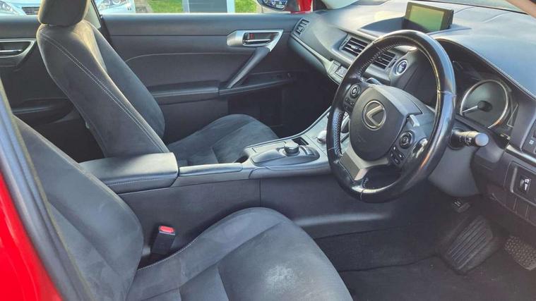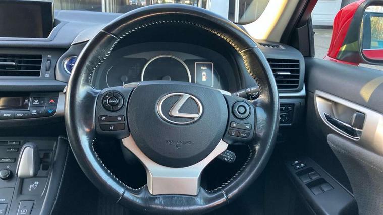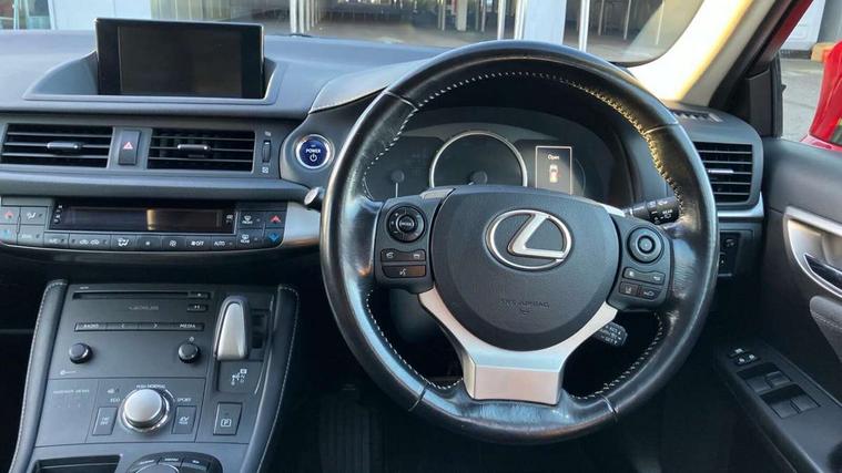 7" colour screen, Adaptive cruise control, Bluetooth telephone connectivity, Drive mode selector, Lexus Navigaton System, Push button starter, Rear parking sensors, Reversing camera, Speed sensitive power steering, Traffic sign recognition, Trip computer, Vehicle Dynamics Integrated Management, Vehicle Stability Control (VSC), 6 speakers, Auxiliary input socket, DAB Digital radio, Radio/CD + MP3, Steering wheel audio controls, USB connection, Adaptive rear spoiler, Auto high beam, Black scuff plates, Body colour bumpers, Door mirror puddle lights, Electric adjustable door mirrors, Electric folding door mirrors, Front and rear electric windows, Front fog lights, Green tinted UV reducing windscreen glass, Heated door mirrors, LED brake lights, LED daytime running lights, LED tail lights, Rain sensor windscreen wipers, Rear diffuser, Rear wiper, Shark fin roof aerial, 2 cupholders in front centre console, 4 load securing hooks in luggage area, 5 headrests, 60/40 split folding rear seat, Carpet mats, Centre arm rests, Cloth upholstery, Driver/passenger sunvisors with illuminated vanity mirrors, Dual zone climate control, Front door pockets, Illuminated entry system, Isofix child seat attachment, Leather steering wheel, Manually adjustable front seats - 6 way driver/4 way passenger, Map pocket on front seat backs, Rear armrest, Rear coat hook, Storage compartment in centre console, Storage compartment under load area floor, Tilt/telescopic adjustable steering wheel, ABS, Brake assist function, Curtain shield airbag, Driver and passenger side airbags, Drivers knee airbag, Dual stage driver/passenger airbags, Electronic brake force distribution, Front seatbelt pretensioner, Hill start assist control (HAC), Passenger airbag cut-off device, Passenger knee airbag, Pre crash system, Seatbelt warning, Sway warning system, Three 3 point rear seatbelts, Traction control, Tyre pressure warning, WHIPS whiplash protection system - front, Anti theft system, Double locking, Immobiliser, Intrusion sensor and alarm, Locking wheel nuts, Remote central locking, Speed sensitive power door locks, VIN Window etching, Black interior trim, 17" 5 twin spoke alloy wheels, Space saver spare wheel,