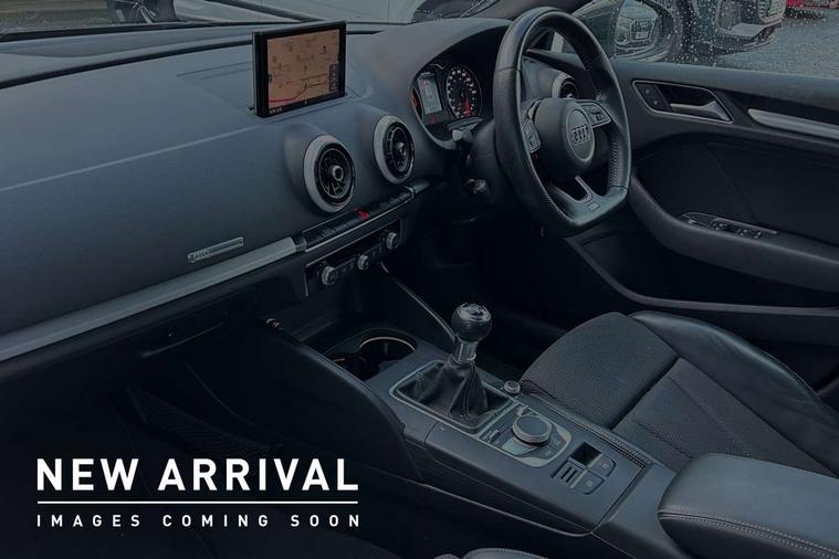 Audi connect, Audi drive select, Audi smartphone interface, Colour driver's information system display, Electro-mechanical PAS, HDD satellite navigation system radio single CD/DVD player MMI control system, Mobile telephone preparation - bluetooth interface, Service interval indicator, Speed limit display, Voice control system, 2 USB ports, Audi music interface, Auxiliary input socket, CD player, DAB Digital radio, MMI radio plus with 7" colour MMI screen and MMI controller, Aluminium window trim, Auto dimming rear view mirror with light and rain sensors, Body colour bumpers, Body colour door mirrors with integral indicators, Body colour roof spoiler, Chrome exhaust tailpipes, Electric front windows, Electric operated/heated door mirrors, Electric rear windows, Heated windscreen washer jets, LED daytime running lights, Matt black radiator grille, Rear wiper, S Line body styling, Sport specific side air inlet grille and diffuser insert, 3 adjustable rear headrests, 3 spoke flat bottomed multi-function leather steering wheel, 4 lashing points to secure luggage, Adjustable front armrest, Black cloth headlining, Dual zone electronic climate control, Front and rear interior lights with delay, Front passenger seat isofix location point, Front sports seats, Front/rear floor mats, Height/depth adjustable steering column, Illuminated glovebox, ISOFIX child seat preparation+airbag deactivation, Jack and tool kit, Stainless steel pedals, Storage compartment in centre console, Storage compartment under front seats, Storage compartments in doors, LED interior light pack - A3/RS3, Non smoking pack - A3, Storage and luggage pack - A3/RS3, 3 point seatbelts on all seats, ABS/EBD, Active bonnet, Active front headrests, ASR, Curtain airbags, Driver and passenger side airbags, Driver/Front Passenger airbags, Drivers knee airbag, EDL, Electromechanical parking brake, ESC - Electronic Stability Control + traction control, Front passenger airbag deactivation, Manual rear child locks, Multi-Collision braking, Seatbelt warning, Tyre pressure warning, Warning triangle and first aid kit, Anti theft alarm, Anti-theft wheel bolts, Remote control central locking, Thatcham category 1 alarm + immobiliser, Aluminium air vent surrounds, Aluminium trim elements, Matt brushed aluminium inlays, Space saver spare wheel,