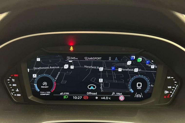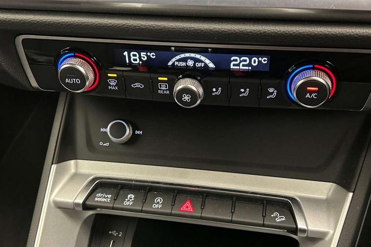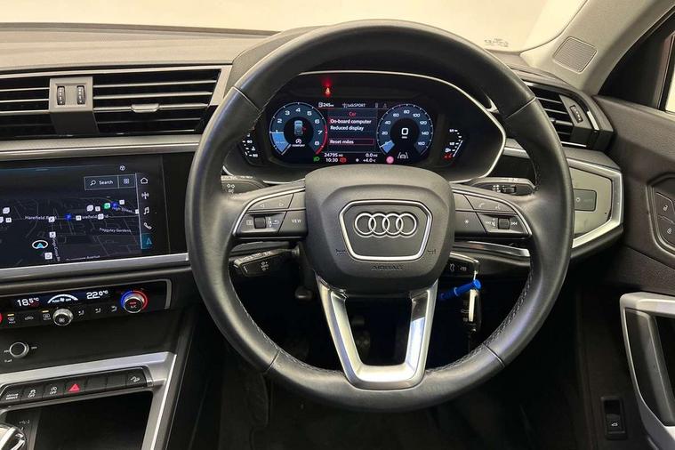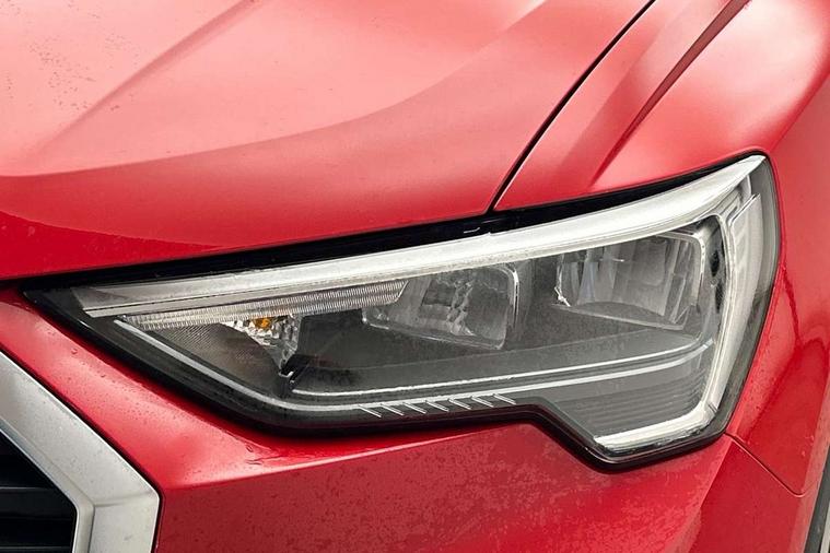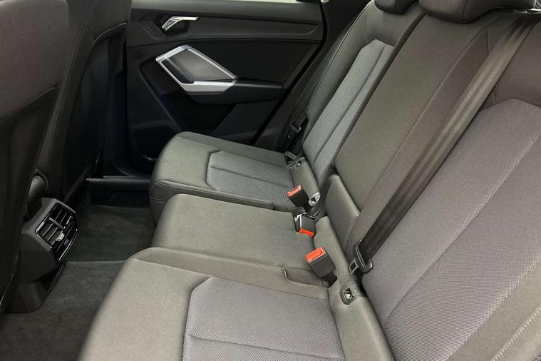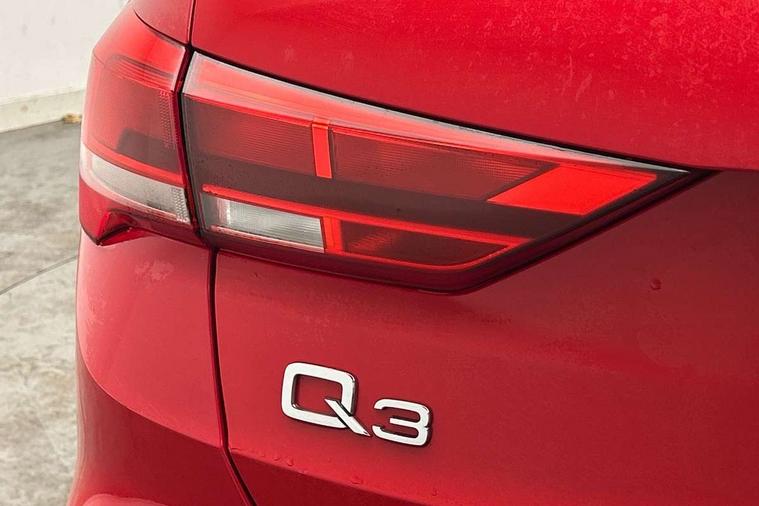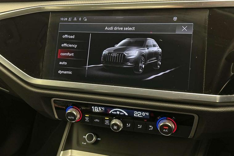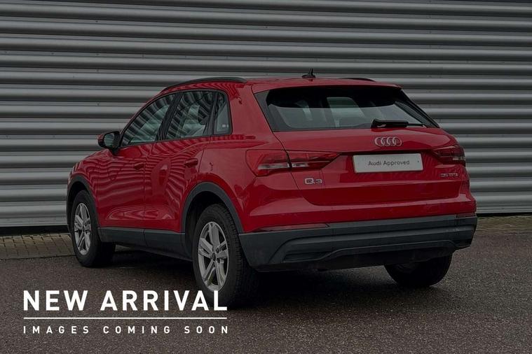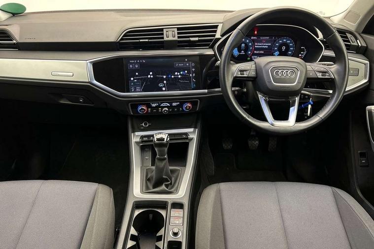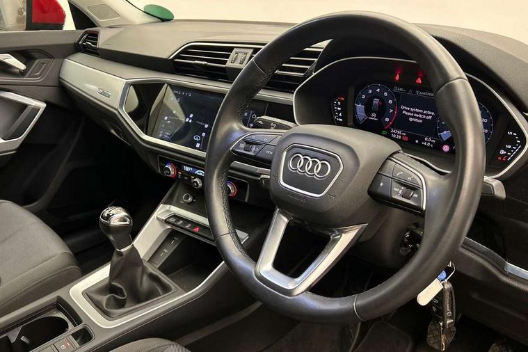 Amazon alexa Integration, Audi connect safety and service (e-call), Audi drive select, Audi lane departure warning, Audi Virtual Cockpit - 10.25" display, Bluetooth interface, Camera based traffic sign recognition, Cruise control + speed limiter, MMI Navigation Plus with high resolution 10.1 inch touchscreen colour display, Power operated tailgate, Progressive steering, Rear parking sensors, Service interval indicator, Smartphone interface includes wireless Apple carplay/Android Auto, Start stop system with recuperation, Voice control system with natural language interaction, Standard suspension, 2 USB-C ports with charge and data functions, 6 passive loudspeakers, DAB digital radio module, Acoustic windscreen, Auto dimming frameless rear view mirror, Black roof rails, Body colour door mirrors, Diffuser in grained anthracite, Electrically folding, adjustable and heated door mirrors with integrated LED side indicators and kerb view function for passenger side, Exterior bumper with wheel arch trims and side sill trims in grained black matt, Front and rear electric windows, Grained radiator protective grille, Halogen rear lights, LED headlights with LED daytime running lights, Rain and light sensors, 12V socket in rear centre console, 3 spoke multi-function leather steering wheel, 40:20:40 folding with manual adjustment for 60:40 forwards/backwards position and backrest angle, Dual zone electronic climate control, Front and rear floor mats, Front and rear headrests, Front and rear roof module including reading lights, Front centre armrest, Glove compartment lighting, Height and reach adjustable steering wheel, ISOFIX child seat mounting for front passenger with airbag deactivation and outer rear seat including top tether attachment point for outer rear seats, Luggage compartment light, Lunar silver cloth headlining, Manual front seats with height adjustment, Stainless steel luggage compartment sill finisher, Non smoking pack - Q3, 3x3 point rear seatbelts, 6 airbags - Driver, front passenger, curtain and side windows, Audi pre-sense front with pedestrain and cyclist recognition, Electrically operated child locks on rear doors, Electromechanical parking brake, Electronic stabilisation control including ABS, ASR and EDL, Hill descent control, Hill hold assist, Pre sense basic, Seatbelt monitoring, Tyre pressure warning, Warning triangle and first aid kit, Anti theft alarm, Anti theft wheel bolts, Remote central locking, Detail dashboard around MMI touch colour display in glass look, black with surround in aluminium look, Micrometallic silver inlay, 17" 5 twin spoke design alloy wheels,