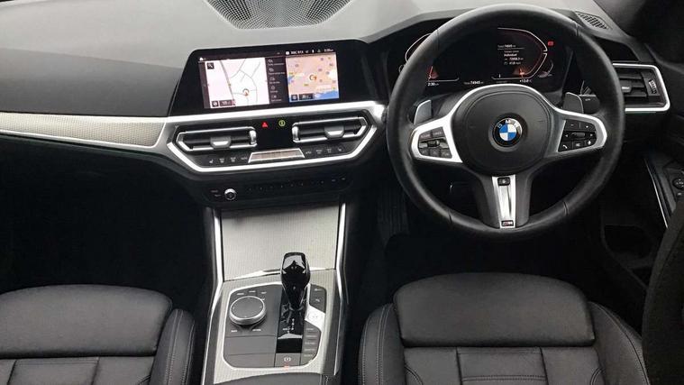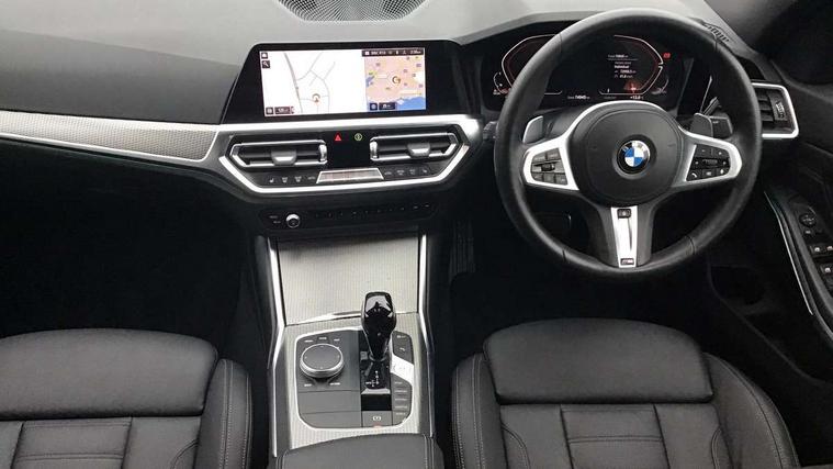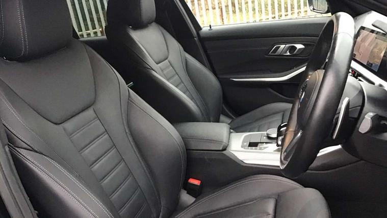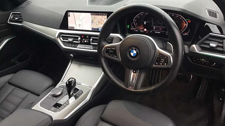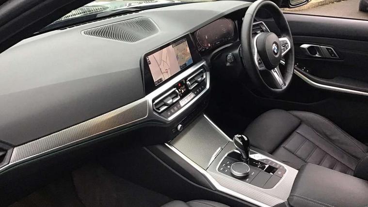 Active guard plus, Attentiveness assist, Bluetooth hands free facility with USB audio interface with audio streaming, BMW Live Cockpit Professional Nav with 12.3" instrument display + 10.25" display, Intelligent Voice Assist, BMW OS 7, HDD, 2USB, 4G LTE connect, BMW service history, BMW Teleservices, Brake pad wear indicator in front and rear, Check Control warning system for monitoring of lights and door/luggage compartment open warning, Condition based service, Cruise control with brake function + speed limiter, Electric power steering with Servotronic steering optimised at all speed ranges, iDrive controller on centre console, Instrument cluster with speedometer with mph readout, tachometer, fuel gauge and oil temperature gauge, Integrated owners handbook, Oil sensor for level and grade, warning by check control system, On board computer - average speed+fuel consumption, service interval, clock/date, odometer/trip meter, outside temperature display and ice warning, Optimum shift indicator, Personal Profile - automatic lock when driving away selectable, Variable sport steering, 48V Mild hybrid technology, Balanced 50/50 weight distribution, Battery cut-out switch, Diesel particulate filter, Drive performance control - ECO PRO, comfort and sport modes, Incorrect fuelling protection, Larger capacity fuel tank, M sport suspension, Stroke dependent dampers, DAB tuner, Electronic service booklet, Stereo speaker system with 2 mid range speakers in the front door trims and rear parcel shelf + 2 central bass speakers underneath the front seats, Acoustic glazing, Active airstream chrome frame kidney grille with 8 high gloss black vertical slats, Automatic headlight beam throw control with load dependent regulating reaction, dynamic compensation of braking dive and acceleration squat, Black roof mouldings, Body colour door handles, Body colour front and rear bumpers, Body colour fuel filler flap, Body colour mirror caps with bottom segment in matt black, Dynamic brake lights, Electric windows - front and rear, with open/close fingertip control, anti-trap facility and comfort closing, Exhaust tailpipe - split left and right, Exterior mirrors - electrically folding with anti-dazzle, Fading support, Front and rear bumper system with replaceable deformation elements, Front black door sill finishers with BMW designation, Green tinted heat protection glazing, High gloss shadow line exterior trim, Interior rear view electrochromatic mirror with automatic anti dazzle function, LED daytime running lights, LED front fog lights, Lightweight engineering, M designation on front side panels, left and right, Matt black exterior B pillar, Model designation on right side of tailgate, Rain sensor with automatic headlight activation, Shark fin antenna, Two part LED tailights in L-shape with components in smoked glass, brake light, LED turn indicator and rear fog light, Visible VIN plate, Welcome lights in interior and door handle area, Windscreen wipers with integrated washing jets, 12V power socket in front storage compartment, 2 front cupholder in centre console with clamping elements and matt black inlay, 3 rear seats with non folding headrests with 3 point seat belts, 3 zone automatic air conditioning, 4 pieces lashing eyelets in luggage compartment, 40:20:40 split folding rear seat with loading system, Ambient lighting with welcome carpet light, Anthracite headlining, Armrest integrated in front and rear door trim + front centre console armrest, Backrest width adjustment, Centred top Luggage compartment lights, Four grab handles integrated in roof lining, Front and rear door exit lighting (left / right), Front and rear door pockets, Front and rear reading lights, Front and rear velour floor mats, Front head restraints, Front sport seats, Heated front seats, Height adjustable mechanically and infinitely variable steering column, Illuminated armrest storage compartment, Illuminated glove compartment with separate small compartment, Interior lighting - front centre over interior mirror with soft light, rear centre and front and rear footwell lighting, M sport leather steering wheel, Make-up mirror lights, Rear centre armrest with 2 cupholders, Rear centre console with storage compartment and ventilation grille, Sunvisors with vanity mirrors and ticket pocket, Toolkit located in luggage compartment, Connected pack professional - 3 Series Saloon/Touring, M sport exterior styling pack - 3 Series Saloon/Touring, 2 tone horn, BMW emergency call, Brake energy regeneration, Braking pre-tensioning, Child proof locking system in rear door, Child seat ISOFIX attachment rear outer seats, Coasting in idle in ECO PRO mode, Crash sensor activating of airbags, Unlocking doors, hazard warning lights, fuel cut off, interior lighting+activation of safety battery terminal clamp, Driver and front passenger side airbags, integrated in the door side seat backrest bolsters for all seat variants, Driver/Front Passenger airbags, Dry braking, Dynamic brake control, Dynamic stability control + (DSC+) - Anti-lock Braking System (ABS) with brake assist and cornering brake control + Automatic Stability Control (ASC), Dynamic Traction Control - DTC, Electromechanical parking brake including automatic hold function and automatic release of the parking brake when pulling away, Electronic differential lock control (EDLC), Front passenger manual airbag deactivation, Head airbags for all 4 outer seats, Hill start assist, Seat belt security check for driver and front passenger, Side impact protection, Three 3 point seat belts on all seats including front belt stopper, pyrotechnic belt tensioners and belt force limiters, Tyre pressure monitoring with three level warning strategy, Ventilated front and rear disc brakes, Warning triangle and first aid kit, Alarm system (Thatcham 1) with remote control and electronic engine immobiliser, Central locking switch for all doors, fuel filler cap and luggage compartment, Remote control with integrated key one 