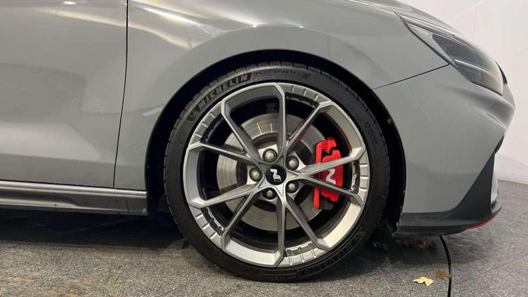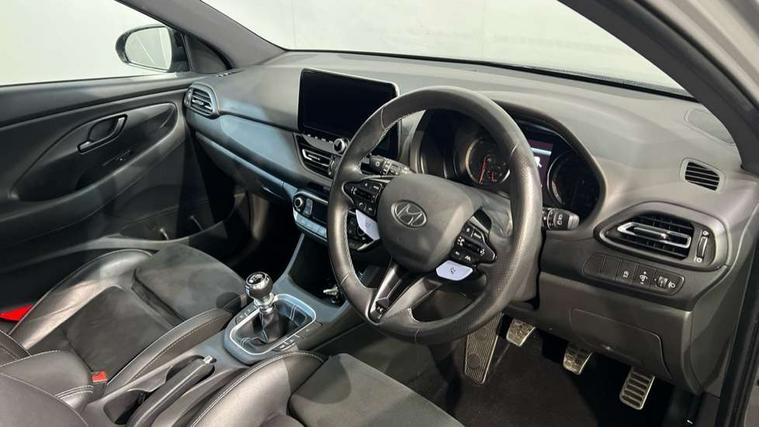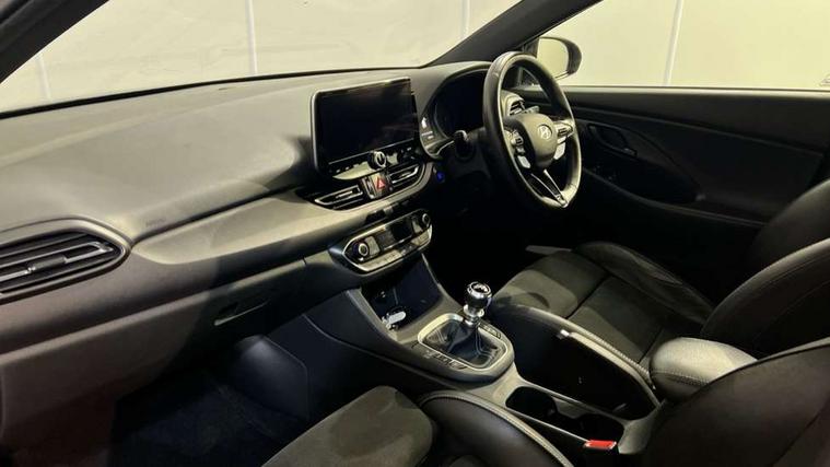 10.25" touchscreen centre console display satellite navigation including traffic messaging channel, map care and live services, Android Auto, Apple car play, Audio control with voice recognition, Blind spot Collision Warning (BCW), Bluetooth connectivity with voice recognition, Cruise control + speed limiter, Drive mode buttons, Driver attention alert system, Driver's supervision instrument cluster with 4.2" LCD display, Dusk sensor, e-Call (Emergency button system), Emergency stop signalling system, Front and rear parking sensors, Intelligent speed limit warning, Lane departure warning system with lane keep assist - LKAS, Lane follow assist, N exclusive sport cluster, N mode button, Parking system with rear camera and guidance system, Performance information display, Rack motor driven power steering, Rev matching system, Shift timing indicator, Trip computer, Windscreen washer fluid sensor and warning indicator, Wireless phone charging pad, Electric active sound design, Electronic limited slip differential, Electronically controlled suspension, Intelligent Stop and Go, Launch control, 2 front and 2 rear speakers with 2 tweeters, DAB Digital radio, Steering wheel audio, phone and cruise controls, USB ports in centre console, 1 speed non intermittent rear windscreen wiper, Active variable exhaust system, Adjustable intermittent front windscreen wipers with aero wiper blade, Automatic defog system for front windscreen, Automatic dimming rear view mirror, Automatic headlight with follow me home function, Automatic windscreen wipers with rain sensor, Black finish window surrounds, Black glossy door mirrors with integrated indicators, Body coloured door handles, Door mirror puddle lights, Electric adjustable heated door mirrors, Electric folding door mirrors, Electric windows - front and rear with anti-trap mechanism and one touch control (driver window), LED daytime running lights integrated into headlamp, LED Headlights, N exclusive front and rear bumpers, N exclusive radiator grille, N exclusive rear diffuser, Rear brake light in signature N triangular design, Rear LED lights, Rear side wing doors, Rear spoiler with integrated LED brake light, Rear stiffness bar, Rear windows and tailgate privacy glass, Shark fin antenna, Smart high beam headlights, Smoked tail lights, Static Cornering lights, Tinted glass with windscreen shade band, Twin mufler rear exhaust, 12V power outlets in front console and luggage compartment, 3 seat bench in 2nd row, 60/40 split folding rear seat, Active head restraints, Aluminium pedals, Artificial leather door centre trim, Black interior door handles, Black roof liner, Centre console storage, Chrome effect interior door handles, Driver seat electric lumbar adjustment, Driver seat memory function, Driver's seat electric height adjustment, Driver's seat manual extendable seat cushion, Driver/passenger sunvisors and illuminated vanity mirrors, Dual zone climate control air conditioning, Electric adjust driver's seat, Front and rear door pockets, Front armrest with storage box, Front cupholders, Front head restraints with vertical and horizontal adjustment, Front passenger's seat electric adjustments, Front passenger's seat electric height adjustment, Front passenger's seat electric lumbar support, Front passenger's seat manual extendable seat cushion, Front, rear and luggage compartment interior lights, Glove compartment, Heated front seats, Heated function steering wheel, Interior front map reading light and sunglasses holder, ISOFIX child seat anchorage points attached on outer rear seats, Leather wrapped steering wheel and gear knob, Luggage board, N branded aluminium door sill trims, Reach + rake adjustable steering column, Rear armrest with cupholder, Rear head restraints, Single front passenger seat, 3x3 point rear seatbelts, Airbags - front, front side and curtain airbags, Anti-lock braking system (ABS), Autonomous emergency braking (AEB) with forward collision warning system, Childproof rear door locks, Curtain airbag roll over sensor, Electronic stability control, Front passenger airbag deactivation switch, Front seatbelt reminder, Height adjustable seatbelts, Hill start assist control (HAC), Manual parking brake, Red brake calipers with N logo, Reinforced brakes, Seatbelt reminder for rear passenger seats, Torque vectoring brake, Tyre pressure monitoring system (TPMS), Deadlocks, Immobiliser, Locking wheel nuts, Remote control central locking, Smart key with keyless entry and engine start/stop button, Speed sensitive automatic door locking, Thatcham category 1 alarm, 19" Forged alloy wheels, 19" Pirelli P zero performance tyres, Tyre repair kit,
