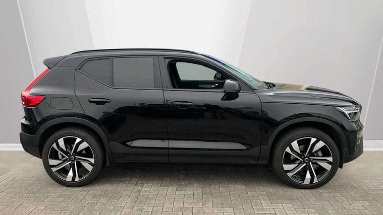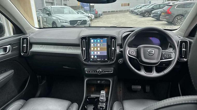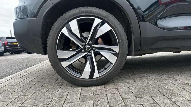 12.3" Progressive Driver Display, 360 degree surround view parking camera with side proximity sensors, 9" centre console portrait touch screen, Adjustable steering wheel force, Apple carplay (wired), Bluetooth handsfree system, Driver alert control, Driver assistance (pilot assist and adaptive cruise control), Driver awareness - Blind spot information system with steer assist, cross traffic alert with autobrake and rear collision warning and mitigation, E-call, Google automotive services - Enabled entertainment apps, navigation with google maps, voice recognition with google assistant, Hands free power tailgate, Intelligent speed assistance, Lane keeping aid, Oncoming Lane Mitigation, Speed sensitive steering, Volvo cars services with app - Driving journal, emergency and breakdown call, engine remote start, remote door locking/unlocking and vehicle dashboard, Wireless/Inductive Mobile Phone Charging, Automatic transmission with start/stop and manual change functions, Dynamic chassis, DAB Digital radio, Premium Sound by Harman Kardon, Dolby Pro Logic II Surround Sound, Dirac Unison, 12 speakers/600W and subwoofer, Steering wheel mounted remote controls, Active bending pixel LED headlights with adaptive shadow technology, Active high beam incorporating daytime running lights, Adaptive brake lights with high level LED brake lights, Auto dimming feature for exterior door mirrors, Auto dimming interior mirror, Automatic headlamp levelling, Dark tinted windows - rear side windows and rear screen, Front aluminium tread plates, Front and rear electric windows, Headlight cleaning system, High gloss black front and rear skid plate, High gloss black front bumper deco, High gloss black mesh front grille with high gloss black surround, High gloss black window trim, Home safe and approach lighting, Integrated roof rails in high gloss black, LED front fog lights with cornering function, Power glass tilt and slide panoramic sunroof with sun curtain, Puddle lights, Rain sensor with automatic windscreen wiper activation, Rear side wing doors, Rear wiper, Roof antenna, Roof spoiler, Visible VIN plate, 12V socket in front tunnel console and luggage compartment, 2-Zone electronic climate control with CleanZone air quality system and pollen filter, 3 seat bench in 2nd row, 3 Spoke tailored steering wheel with chrome trim, 60/40 versatile split folding rear seat, Centre console cupholders and storage, Flexible load floor and grocery bag holder, Floor mats, Front cabin courtesy lights, Front door pocket, front cupholder, ambient front door, rear reading, rear courtesy, instrument panel and tailgate lighting, Front footwell illumination, Front headrests, Front reading lights, Front seat cushion extensions, Front side step illumination (under door), Glovebox bag hook, Heated front seats, Height/reach adjustable steering column, High gloss centre tunnel deco, Illuminated glovebox, Illuminated luggage compartment, Illuminated vanity mirrors + ticket holder, Integrated waste bin, Isofix attachments on outer rear seats, Load cover, Load protection net, Multi directional lumbar support for driver and passenger seat, Power driver seat with memory + exterior mirrors memory, Power folding rear headrests, Power passenger seat, Rear armrest with cupholders, Single front passenger seat, Underfloor cargo storage, Climate pack without heated front seats - XC40, 3x3 point rear seatbelts, City safety with steering support with Pedestrian + cyclist + front collision warning with full auto brake and rear auto brake, Driver and passenger airbags, Drivers knee airbag, Electronic parking brake with auto hold, First aid kit, Front and outer rear seatbelt reminder and pretensioners, Front seats SIPS airbags, Hill descent control, Hill start assist, Inflatable curtain, Passenger airbag cut-off device, Power child locks on rear doors, Road sign information display, Run off Road Protection, SIPS (Side Impact Protection System), Slippery road and hazard light alert, Stability and Traction Control with Spin control, Engine Drag Control and Corner Traction Control, Tyre pressure monitoring system, Vehicle deceleration control with Anti-lock Brake System, Electronic Brake Distribution and Emergency Brake Assist, Warning triangle, WHIPS whiplash protection system - front, 2 x Key integrated remote control central locking including with deadlocking system and auto open/close windows and sunroof, Anti-theft alarm including immobiliser/volume sensor + level sensor, Keyless drive includes keyless entry and keyless start, Locking wheel nuts,