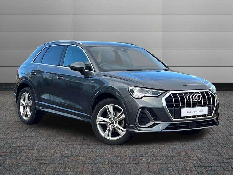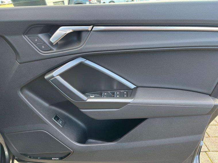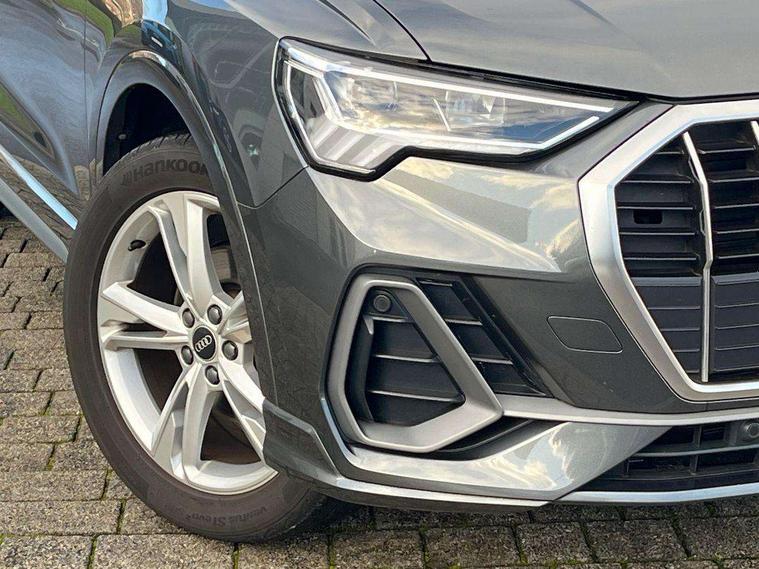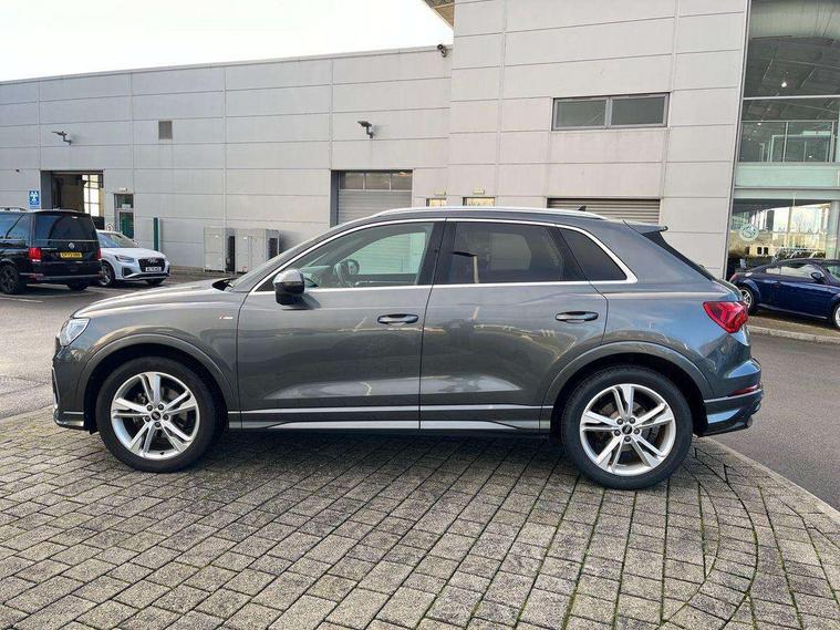 Amazon alexa Integration, Audi connect safety and service (e-call), Audi drive select, Audi lane departure warning, Audi Virtual Cockpit - 10.25" display, Bluetooth interface, Camera based traffic sign recognition, MMI Navigation Plus with high resolution 10.1 inch touchscreen colour display, Power operated tailgate, Progressive steering, Service interval indicator, Smartphone interface includes wireless Apple carplay/Android Auto, Start stop system with recuperation, Voice control system with natural language interaction, 48V Mild hybrid technology, Sports suspension, 2 USB-C ports with charge and data functions, 6 passive loudspeakers, DAB digital radio module, Acoustic windscreen, Aluminium roof rails, Aluminium window trim, Auto dimming frameless rear view mirror, Body coloured bumpers, Electrically folding, adjustable and heated door mirrors with integrated LED side indicators and kerb view function for passenger side, Front and rear electric windows, Front fog lights, Front side air inlets in matt platinum grey, Front spoiler blade in matt platinum grey, Grille vertical bars in aluminium silver/Matt, High gloss black finish B and C pillars, LED headlights with LED daytime running lights and dynamic rear indicator, LED rear lights, Privacy glass dark tinted rear and rear-side windows (from B-pillar backwards), Rain and light sensors, Rear diffuser strip in matt titanium black, S line badges on front wings, S Line front and rear bumpers, Side skirt insert in matt Platinium grey, Silver chrome grille surround, Titanium black radiator grille, 12V socket in rear centre console, 40:20:40 folding with manual adjustment for 60:40 forwards/backwards position and backrest angle, Adjustable rear seat bench/backrest with centre armrest and cupholder, Black cloth headlining, Dual zone electronic climate control, Front and rear black floor mats with contrast stitching in rock grey, Front and rear headrests, Front and rear roof module including reading lights, Front centre armrest, Glove compartment lighting, Height and reach adjustable steering wheel, Illuminated door sill trims with S logo, ISOFIX child seat mounting for front passenger with airbag deactivation and outer rear seat including top tether attachment point for outer rear seats, Luggage compartment light, Manual front seats with height adjustment, Perforated leather gearknob, Stainless steel luggage compartment sill finisher, Stainless steel pedals, Non smoking pack - Q3, 3x3 point rear seatbelts, 6 airbags - Driver, front passenger, curtain and side windows, Audi pre-sense front with pedestrain and cyclist recognition, Electrically operated child locks on rear doors, Electromechanical parking brake, Electronic stabilisation control including ABS, ASR and EDL, Hill descent control, Hill hold assist, Pre sense basic, Seatbelt monitoring, Tyre pressure warning, Warning triangle and first aid kit, Anti theft alarm, Anti theft wheel bolts, Remote central locking, Dark matt brushed aluminium inlay, Detail dashboard around MMI touch colour display in glass look, black with surround in aluminium look, Leatherette door armrest, Tool kit, Tyre repair kit,
