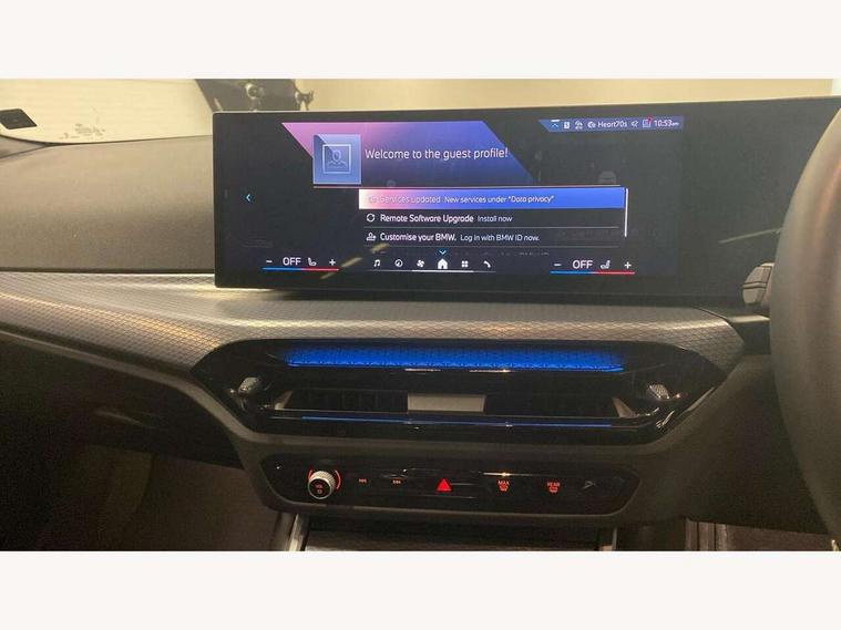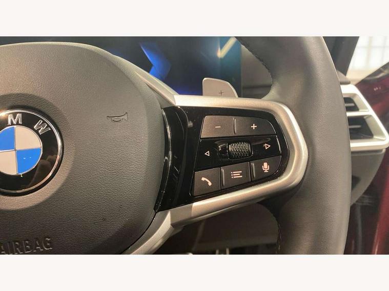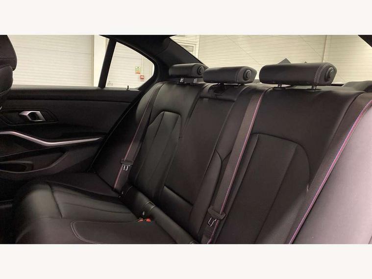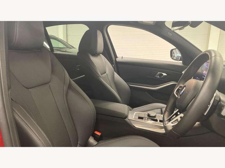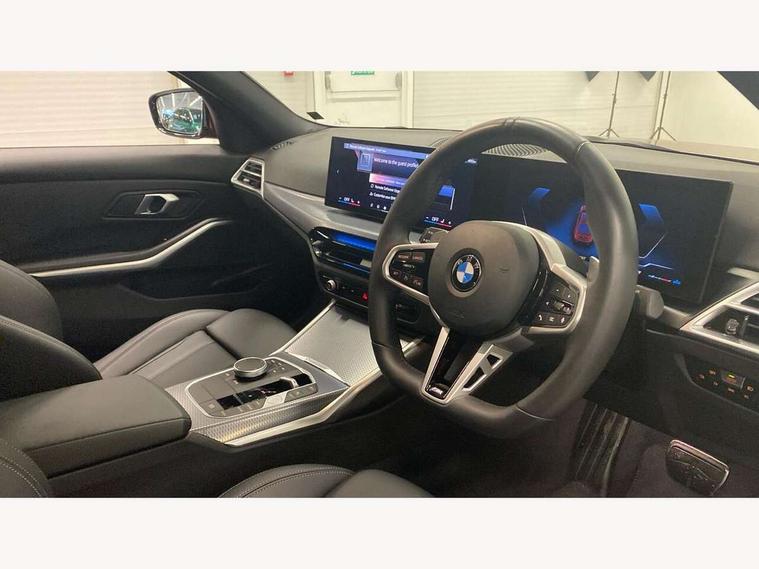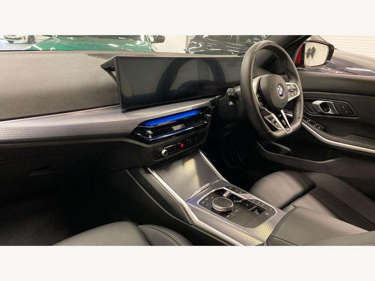 Active guard plus, Attentiveness assist, Automatic Start/stop button, Bluetooth Wi-Fi interface, BMW iDrive, BMW Teleservices, ConnectedDrive Services - last state call, Live cockpit plus with Navigation + 12.3" instrument display + 14.9" display, Intelligent voice assist, 2 USB, 4G LTE connect, Oil sensor for level and grade, Personal e-SIM, Shifting point display, Variable sport steering, Double joint spring strut front axle, Fuel tank breather system, Steptronic Sport automatic transmission with steering wheel mounted gearshift paddles launch control and xtreme drive lever control, DAB tuner, 3rd brake light, Auto dimming rear view mirror, Automatic headlight beam throw control with load dependent regulating reaction, dynamic compensation of braking dive and acceleration squat, Bi-LED Low and high beam headlights, BMW emblem, engine compartment lid and tailgate, Body colour roof fin, Door sill strips, Electric windows - front and rear, with open/close fingertip control, anti-trap facility and comfort closing, Fading support, Folding wing mirror with auto dimming, Follow me home headlight function, Front and rear bumper system with replaceable deformation elements, Front apron plastic in body colour, Fuel filler flap - right rear in body colour, Heat protection glazing on front windows and windscreen, Heated washer jets, High gloss chrome kidney frame with high gloss black kidney struts, LED daytime running lights, LED rear lights, LED turn indicator, Licence plate panel integrated into front bumper and tailgate, M high gloss shadow line exterior trim, Matt black B-pillar finsher, Matt black window recess cover, Model designation on right side of tailgate, One piece front bumper cover including towing eye cover in body colour, Rain sensor with automatic headlight activation, Rear boot, Rear side wing doors, Reversing lights, Side frame decorative moulding black matt, Trailer stabilisation logic, Visible exhaust tailpipe finisher, Welcome lights in interior and door handle area, 12V power socket in front storage compartment, 2 front cupholder in centre console with clamping elements and matt black inlay, 3 seat bench in 2nd row, 3 spoke M Sport multifunction flat bottom leather steering wheel, 3 zone automatic air conditioning, 40:20:40 split folding rear seat with loading system, Anthracite headlining, Armrest integrated in front and rear door trim + front centre console armrest, BMW ID, Cruise control operation in steering wheel, Driving experience mode switch, Folding rear centre armrest with 2 cupholders, Front and rear headrests, Front and rear velour floor mats, Front reading light, Heated front seats, Height adjustable mechanically and infinitely variable steering column, Illuminated armrest storage compartment, Illuminated glove compartment, Illuminated luggage compartment, Lashing eyelets in luggage compartment, Single front passenger seat, Sunvisors with illuminated vanity mirrors and ticket pocket, Toolkit located in luggage compartment, Connected pack professional - 3 Series Saloon/Touring, Interior and exterior mirror pack - 3 Series Touring/Saloon, M sport exterior styling pack - 3 Series Saloon/Touring, Parking assistant pack - 3 Series, 3x3 point rear seatbelts, BMW emergency call, Child locks on rear doors, Crash sensor activating of airbags, Unlocking doors, hazard warning lights, interior light, safety battery terminal, Drive-off assistant, Driver and front passenger with seat occupancy detection for driver's and passenger side, Driver and passenger side airbags, body protection at side and airbags deploy from seat backrests, Dry braking, Dynamic brake control, Dynamic stability control + (DSC+) - Anti-lock Braking System (ABS) with brake assist and cornering brake control + Automatic Stability Control (ASC), Dynamic Traction Control - DTC, Electric parking brake including automatic hold function and automatic release of the parking brake when driving off, Electronic differential lock control (EDLC), Front airbag deactivation, Front airbags for driver and front passenger, Head airbags in 1st and 2nd row, head protection at side, curtain airbags open from headliner above 1st and 2nd row, Plastic fuel tank, Side impact protection, Tyre pressure sensors, Ventilated front and rear disc brakes, Warning triangle and first aid kit, Alarm system, Centre lock switch, Closing system with central locking, Electronic vehicle immobiliser, Locking wheel bolts, Tyre repair kit,