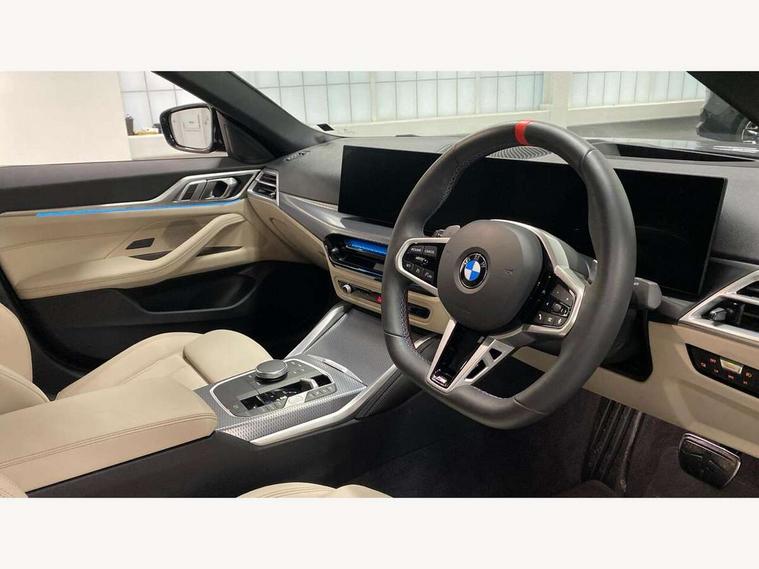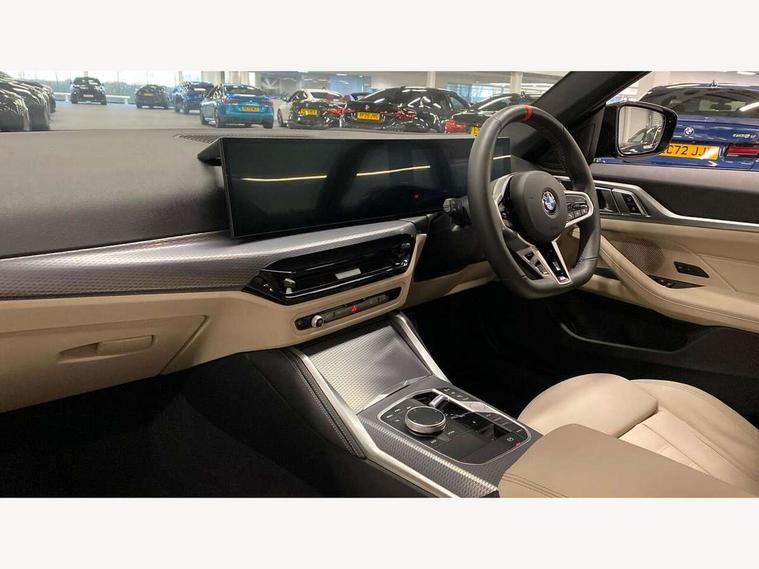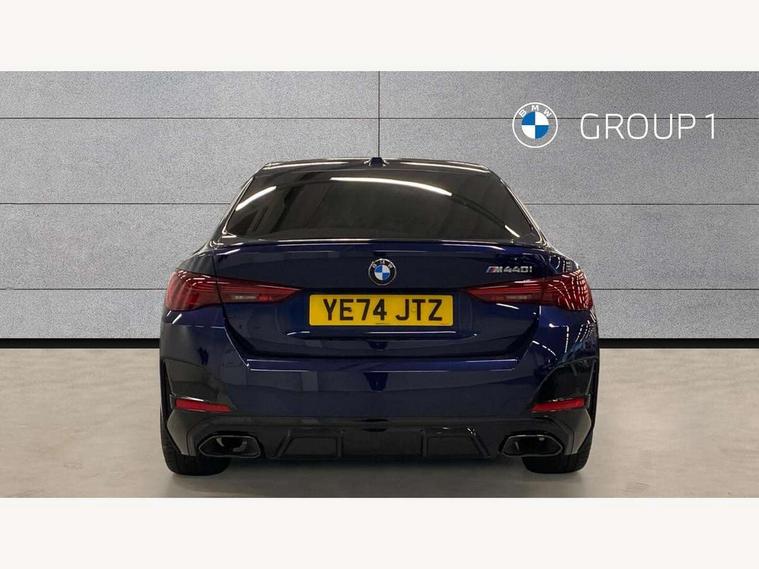 Active guard plus, Attentiveness assist, Auto start-stop, Bluetooth hands free facility with USB audio interface with audio streaming, BMW ConnectedDrive online services, BMW iDrive controller on centre console, BMW service history, BMW Teleservices, Brake pad wear indicator in front and rear, Check Control warning system for monitoring of lights and door/luggage compartment open warning, Condition based service, Electric bootlid, Electric power steering with Servotronic steering optimised at all speed ranges, Gearshift time display in manual mode, Instrument cluster with speedometer with mph readout, tachometer, fuel gauge and oil temperature gauge, Integrated owners handbook, Language version English, Oil sensor for level and grade, warning by check control system, On board computer - average speed, fuel consumption, outside temp display with acoustic warning, clock/date, service interval, odometer/trip meter, Optimum shift indicator, Run flat indicator, Shifting point display, Tailgate, Variable sport steering, 48V Mild hybrid technology, 8 speed automatic steptronic transmission with gearshift paddles, Active sound design, Balanced 50/50 weight distribution, Double joint spring strut front axle, Drive performance control - ECO PRO, comfort and sport modes, Low centre of gravity, M Sport differential, Petrol Particulate Filter, Sprint mode, Stroke dependent dampers, xDrive system permanent all-wheel drive variable torque distribution, 1x USB type A with data transfer and 1.5 Amp charging function in the centre console, 1x USB type C with 3 Amp charging function in the front centre armrest, DAB tuner, Electronic service booklet, Personal eSim, Acoustic glazing, Automatic headlight beam throw control with load dependent regulating reaction, dynamic compensation of braking dive and acceleration squat, Automatic windscreen wipers and automatic headlight, Automatically dimming electrochromatic rear view mirror, BMW emblem on engine compartment lid and tailgate, Body colour fuel filler flap, Body colour roof fin, Brushed aluminium inserts in the front door sill finishers with BMW designation, Door sill strips, Dynamic brake lights, Electric windows - front and rear, with open/close fingertip control, anti trap facility and comfort closing function all round, Exterior mirrors - electrically folding with anti-dazzle, Fading support, Follow me home headlights, Free form tailpipe finisher and side frame trim strip in high gloss black, Front and rear bumper system, Front apron plastic in body colour, Green tinted heat protection glazing, High gloss shadow line exterior trim, Illuminated bow type door handles in body colour drivers side with door lock, Interior rear view electrochromatic mirror with automatic anti dazzle function, LED 3rd brake light, LED daytime running lights, LED front fog lights, LED front indicators, Licence plate panel integrated into front bumper and tailgate, Lightweight engineering, M designation on front side panels, left and right, M rear boot spoiler, Model and M badges in pearl chrome, One piece front bumper cover including towing eye cover in body colour, Rear side wing doors, Rear wiper, Reversing light, Sun protection glass, Two part LED tailights in L-shape with components in smoked glass, brake light, LED turn indicator and rear fog light, Visible VIN plate, Welcome lights in interior and door handle area, Widened track and increased camber values for max transverse dynamics, agility and steering precision, Window recess cover black high gloss, Windscreen wipers with integrated heated washing jets, xDrive designation on left tailgate, 12V power socket in front centre console, 2 front cupholder in centre console with clamping elements and matt black inlay, 3 rear headrests, 3 seat bench in 2nd row, 3 spoke flat bottom M sport leather multifunction steering wheel, 3 zone automatic air conditioning, 4 pieces lashing eyelets in luggage compartment, 40:20:40 split folding rear seat and rear centre armrest with two cupholders, Anthracite headlining, Armrest integrated in front and rear door trim + front centre console armrest, Battery in luggage compartment, BMW ID, Electric memory seats - electrically adjustable seats with drivers seat memory, exterior mirrors memory and automatic parking function, Extended storage in Combination with sport seat net pocket on rear backrest, Four grab handles integrated in roof lining, Front and rear door pockets, Front and rear reading lights, Front footwell lights, Heated driver and front passenger seats, Height adjustable front headrests, Height adjustable mechanically and infinitely variable steering column, Illuminated armrest storage compartment, Illuminated glove compartment with separate small compartment, Luggage compartment light, Luggage compartment seprating net on side trim left/right, Bag hook, 12V socket, TTH button, USB C charging in rear, Folding compartment on driver side, Make-up mirror lights, Single front passenger seat, Storage compartment in rear centre console, Sunvisors with illuminated vanity mirrors and ticket pocket, Toolkit located in luggage compartment, Velour front floor mats, Ambient lighting pack - 4 Series, Connected professional package - 4 Series, M sport exterior styling pack - 4 Series M440i, 3 point seatbelts on all seats, Battery safety cut-off, BMW emergency call, Brake energy regeneration, Braking pre-tensioning, Child seat ISOFIX attachment for the two outer rear seats, Coasting in idle in ECO PRO mode, Cornering brake control (CBC), Crash sensor activating of airbags, Unlocking doors, hazard warning lights, interior light, safety battery terminal, Driver and front passenger side airbags, integrated in the door side seat backrest bolsters for all seat variants, Driver/Front Passenger airbags, Dry braking, Dynamic brake control, Dynamic stability control + (DSC+) - Anti-lock Braking System (ABS) with brake assist and cornering brake control + Automatic Stability Control (ASC), Dynamic Tractio