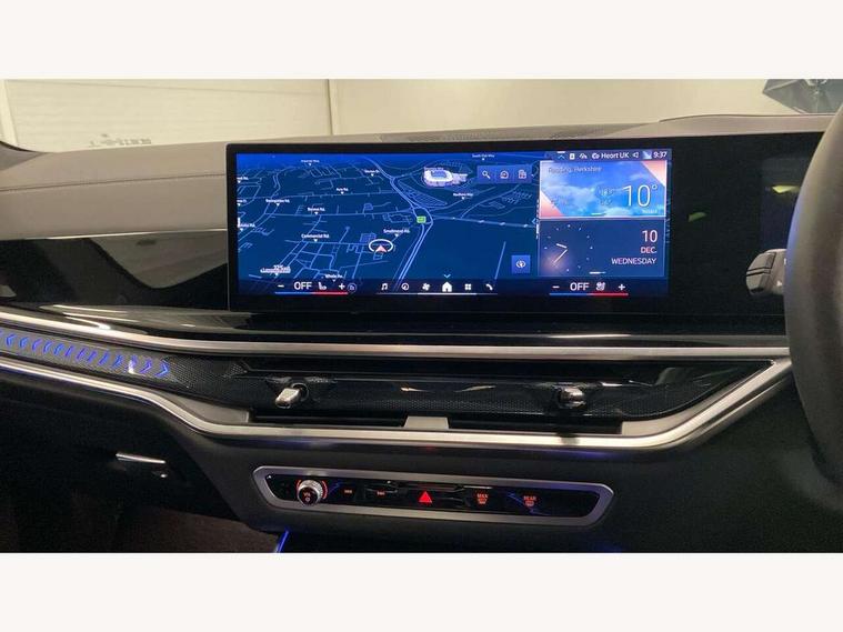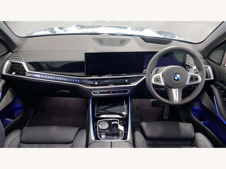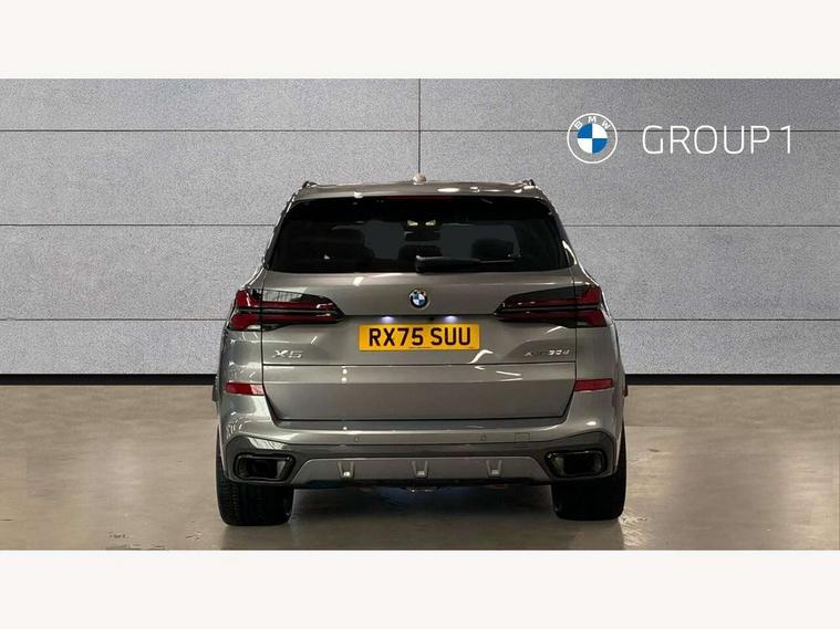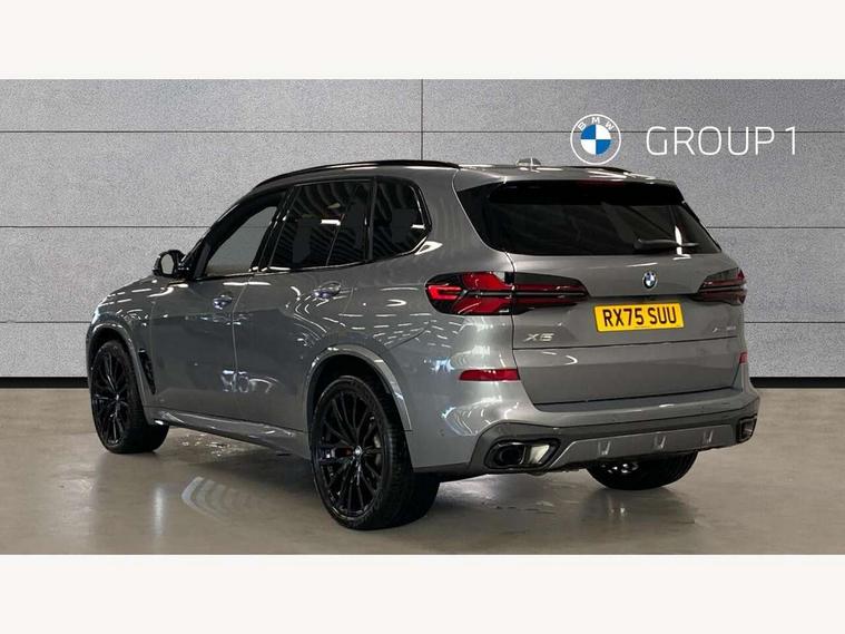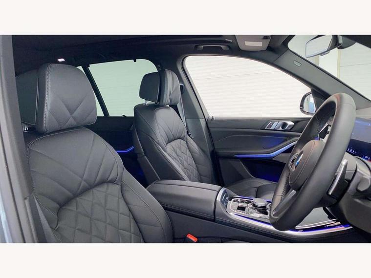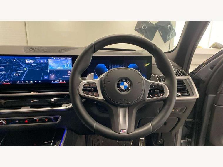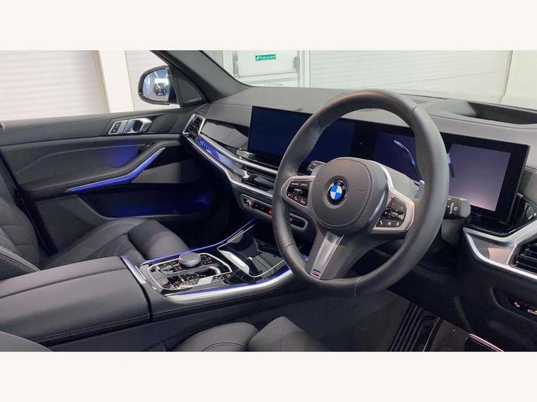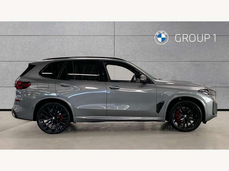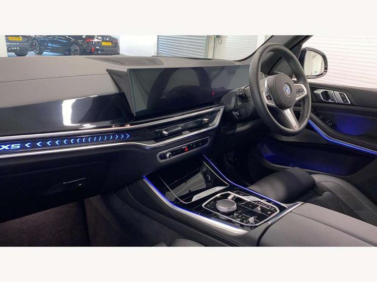 Attentiveness assist, Automatic tailgate operation, BMW ConnectedDrive online services, BMW live cockpit + with curved 12.3 instrument cluster/14.9 central display, nav/Tuner with diversity reception, RDS/4GLTE/remote software upgrade, BMW Recovery system, BMW Teleservices, Condition based service, Cruise control with brake assist, eCall emergency call system, Enhanced bluetooth with wireless charging, Integrated owner's handbook, PAS, Speed limiter, Wi-Fi hotspot, Drive performance control with ECO PRO comfort + sport mode, Eight speed steptronic sport automatic transmission and gearshift paddles on the steering wheel, Adaptive LED Headlights, Front and rear electric windows, High beam assistant, High gloss black shadow line roof rails, LED daytime running lights, Rain sensor, Rear side wing doors, Third brake light in rear spoiler, Variable intermittent rear wash/wipe, 12V - Power sockets with 2x centre console and 1x luggage compartment, 3 seat bench in 2nd row, Entry sills illuminated BMW inscription front and rear, Foldable rear centre armrest with 2 cupholders and storage compartment, Front and rear side armrest integrated into door trim, Grab handles in 1st and 2nd row of seats with Integrated in headliner, at rear with coat hooks, plastic, Headrests for all seats, Luggage compartment separating net, Lumbar support with height and depth adjustment in backrest, Single front passenger seat, Sunvisors with illuminated vanity mirrors and ticket pocket, Three spoke sport M leather steering wheel, Velour floormats, Ambient light interior pack - X5, Driving assistant pack with radar based driver assistance system - X5, Expanded exterior mirror pack - X5/X5 M, M aerodynamics pack - X5, Parking assistant pack - X5, 3 rear seatbelts, Active protection, Airbags - driver/front passenger, rear and side, first and second row seats head airbags, front passenger seat airbag deactivation + knee airbag, Anti-lock braking system (ABS), Automatic Stability Control (ASC), Brake energy regeneration, Cornering brake control (CBC), Crash sensor activating central locking release, hazard warning lights, fuel cut off, interior lighting + activation of safety battery terminal clamp, DSC - Dynamic Stability Control, Dynamic Traction Control - DTC, Electromechanical parking brake with automatic drive away release and auto hold function, Electronic brake force distribution, Hill start assistant, M Sport blue painted brake calipers with 'M' designation, Mechanical child proof lock on rear doors, Tyre pressure monitoring system, Tyre pressure sensors, Ventilated front and rear disc brakes, Warning triangle and first aid kit, Alarm system, Closing system with central locking, Comfort access system, Locking wheel bolts,