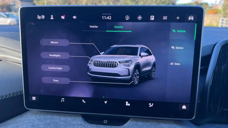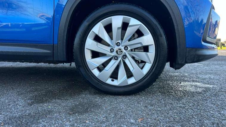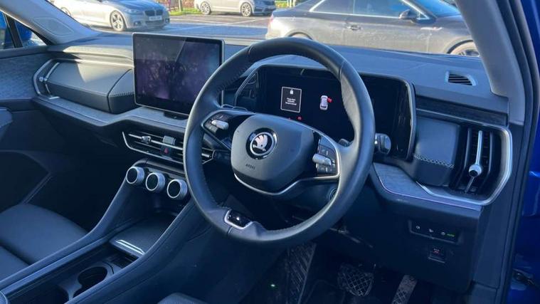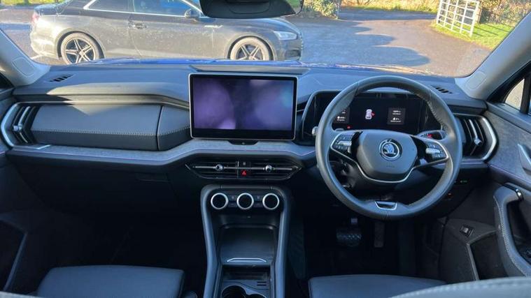 13" satellite navigation touchscreen display, Blind spot detection with door exit warning, Bluetooth system, ChatGPT functionality, Drive mode selector, Driver alert with fatigue sensor, Driver drowsiness alert system, Dry display cleaner, e call+, Front cross traffic assist, Lane assist, PAS, Rear traffic assist, Tailgate unlocking from outside, Traffic sign recognition, USB C Port x 2 in front centre console, Virtual Cockpit - 10.25" digital display, Voice control system, Wireless charging for two smartphones (15W) with cooling function, Wireless SmartLink for Apple CarPlay and Android Auto, Stop/start function, 2x USB-C in the rear, DAB Digital radio, Aero front windscreen wipers with intermittent function, Auto dimming rear view mirror, AWL (all weather lighting) and all weather light with cornering function, Black wheel arch surrounds, Body colour bumpers, Body colour door mirrors and handles, Cornering light and poor weather light, Electric folding /adjustable/separted heated/folding door mirrors, auto dimming with boarding sports and memory function, Electric front and rear windows, Exterior black decorative trims, Heat insulating glass in windshield, Heated rear window, Ice scraper in fuel tank cap, Invisible tailpipe, LED daytime running lights, LED rear fog light, LED third brake light in rear spoiler, Light assistant with automatic headlight control and coming home feature, Logo projection in door mirrors, Privacy glass, Rear side wing doors, Rear spoiler, Rear window wiper, Red decorative strip between rear LED lights, Safety reflectors on front and rear doors, Window control switches with black trim, Windscreen wipers with rain sensor, Without engine designation, 1.5l bottle holder points in all door, 12V socket in boot, 1x centre rear reading light, 2 seat bench in 3rd row, 3 configurable smart dials with 32mm coloured display, 3 seat bench in 2nd row, 4 foldable roof handles with rear coat hooks, Ambient interior lighting - Dashboard, front-door stowage compartments, front and rear door panels and footwell lighting, Automatic gear selector on steering wheel, Chrome interior door handles, Driver/front passenger reading lights, Fabric headlining, Fixed bench 40:60:40 split folding backrests, Front and rear floor mats, Front centre armrest with jumbo box storage compartment, cup holder and 12V socket, Front courtesy lights, Height adjustable front headrests, Isofix child seat fittings in outer middle row rear seats and front passenger with top tether, Manually adjustable steering column, Pollen filter, Rear centre armrest with cupholders, Rear seat boot backrest release, Retractable luggage compartment cover, Single front passenger seat, Sliding trunk cover, Small Bags on the inner sides of the front backrests, Storage pocket including mobile phone pockets on the backs of the front seats, Sunvisors with illuminated vanity mirrors, Three rear height adjustable headrests, Ticket holder on A Pillar, Tri zone climate control, Umbrella in door panel x1 made from sustainable materials, Upper and lower glovebox with card holder and coin compartment, USB C port by rear view mirror for charging only (15W), Exterior styling pack - Kodiaq, Auto door release and activation of warning lights in the event of an accident, Driver and front passenger airbag with knee airbag and front passenger airbag deactivation, Electric child locks, Electronic parking brake, ESC (incl. ABS+EMD+MSR+ASR+EDL+HBA+DSR+RBS+ESBS+MCB+TSA+XDS), Front assist with braking reaction to vehicles, pedestrians and cyclists, Front disc brakes, Fuel cut off safety device, Height adjustable front 3 point seatbelts + pretensioners, Hill hold control, Junction assist with automatic emergency braking, Rear disc brakes, Safety vest holder in door, Seat belt reminder for all seats, Three point rear seat belts, Two tone horn, Tyre pressure monitor, Anti-theft wheel bolts, Immobiliser, Remote central locking with 2 keys, Breakdown kit,