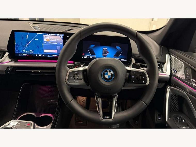 Attentiveness assist, Automatic start/stop function, BMW Live Cockpit Plus with 10.25" instrument cluster and 10.7" display, BMW Operating system 9 with BMW Maps, real-time traffic information, in-car experiences, remote services and smartphone integration, BMW Teleservices, Brake pad wear indicator, Condition based service, Connected eDrive Services, Drive off assistant, Electrically opening/closing tailgate with opening/closing with remote control and contactless opening and closing, iDrive controller, Language version English, My Modes, Parking Assistant with Reversing Assistant, active PDC, Lateral Parking Aid, Rear View Camera and Park Distance Control, Personal Profile - automatic lock when driving away selectable, Servotronic PAS, Tyre puncture warning system, Widescreen display, 11 kW AC charging power, eDrive exterior sound, EU6 emissions management, Fast charging cable professional mode 3 for public charging, M Adaptive suspension, Performance Control, Petrol Particulate Filter, Steptronic transmission with double clutch and gear shift paddles, xDrive intelligent four wheel drive system, BMW Personal eSim, DAB Digital radio, Badge on engine compartment lid and tailgate, Body colour door mirrors, Dynamic brake lights, Electric adjustable heated door mirrors, Electric windows - front and rear, with open/close fingertip control, anti-trap facility and comfort closing, Folding door handles integrated flush with surface, Follow me home headlights, Front and rear bumper panel with M specific design, in body colour with inserts in black high gloss, Front door exit lights, Heated rear window, High gloss shadowline, Invisible exhaust tailpipe, Key with M identification, LED 3rd brake light integrated in rear spoiler, LED daytime running lights, LED number plate light, M identification on the sides, M roof rails high gloss shadow line, M specific radiator grille in satinated aluminium, Matt black roof strips, Model inscription on right tailgate, Rain sensor including auto headlights activation, Rear side wing doors, Rear wiper, Sill cover in body colour, Trailer stabilisation logic, Windscreen washer nozzle for rear view camera, Windscreen wipers front with heated washer nozzles, 12V - Power sockets with front centre console and luggage compartment, 2 bag hooks in luggage compartment, 2 cup holders in front, 2 x USB Type C ports for charging in front centre console + 1 x USB Type C ports for charging in rear centre console, 3 rear headrests, 3 seat bench in 2nd row, 3 upper retaining strap clips integrated into rear panels of seat backrests, 4 grab handles, 40:20:40 split folding rear seats, Ambient interior lighting, Anthracite headlining, Anthracite Velour front and rear floormats, Bottle trays in all doors, Child seat ISOFIX attachment for two outer rear seats and front passenger seat with anchorage points, Clothes hook rear, Driver and front passenger heated seats, Dual zone automatic air conditioning, Front and rear door pockets, Front and rear footwell lighting, Front centre console storage compartment, Front/rear adjustable head restraints, Glove compartment, Interior door handle recess light on all doors, Light on right in luggage compartment, M sport leather steering wheel, Manual steering column height and depth adjustment, Middle centre console storage compartment, One piece parcel shelf opens together with tailgate and removable, Rear armrest in door trim panel, Single front passenger seat, Sport leather multifunction steering wheel with thumbrests and operation of instrument display, audio, telephone and driver assistance, Storage compartment net in left side trim panel, Storage compartment with folding cover under centre console armrest cushion, Storage tray in right side trim panel, Tilt adjustment incl. cargo function of 2nd row of seats, Vanity mirror lights, ABS/EBD, Automatic hold function, Automatic Stability Control (ASC), BMW emergency call, Braking readiness, Cornering brake control (CBC), Crash Sensor - activates hazard/interior lighting + unlocks doors, Driver/Front Passenger airbags, Driver/front passenger side airbags, Dry braking, Dynamic brake control, Dynamic stability control + (DSC+), Electromechanical parking brake, Energy recovery system, First aid kit, Front and rear brake discs, Front and rear head airbags, Front passenger airbag deactivation, Integrated brake system, PC iBrake PostCrash approach control warning with light braking function, Rear door child safety locks, Three point seat belts in all seats, Tyre pressure monitor, Warning triangle, Alarm system with tilt sensor, monitoring doors, bonnet interior and tailgate, Closing system with central locking, Locking wheel bolts, Luxury instrument panel, Tyre repair kit plus,