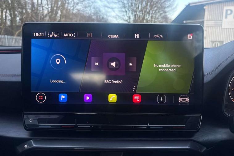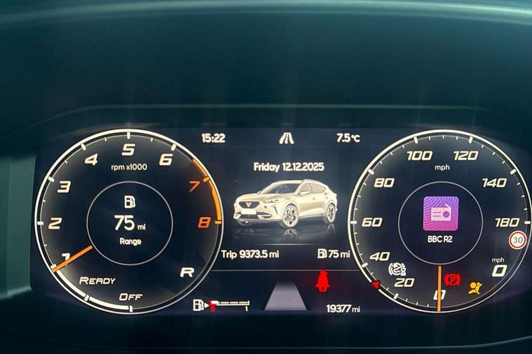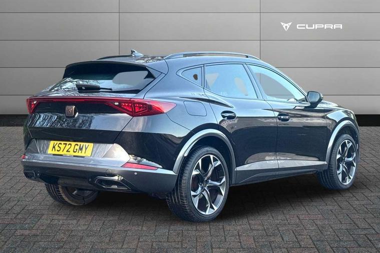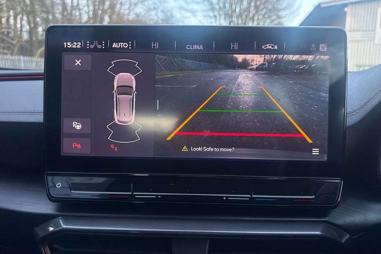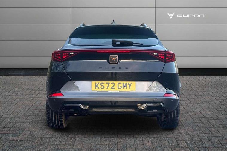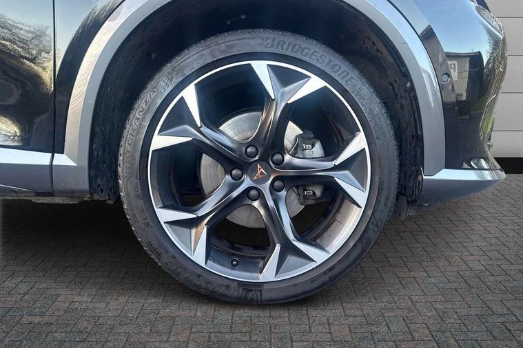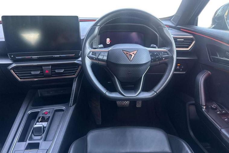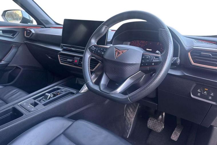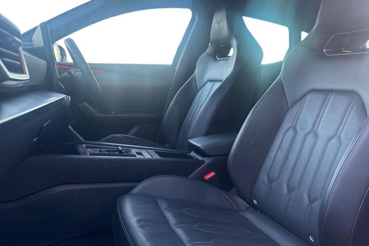 Digital cockpit and configurable dashboard, Driver alert system, Driving profile selection, Forward collision warning with automatic braking, Lane assist, Navigation system with 12'' Touchscreen Display, Park assist (inc front/rear parking sensors), PAS, Predictive adaptive cruise control with speed limiter, Rear view camera, RPM, trip computer, outside temp gauge, instrument light brightness, low fuel warning light, lights on reminder, gearshift indicator, Service interval indicator, Start/stop system with regenerative braking, Voice control system, Wireless apple carplay, Wireless phone charger, Electronic locking differential and dynamic traction support, Standard suspension, 2 front and 2 rear USB type C sockets, Auxiliary input socket, DAB radio, Auto dimming rear view mirror, Body colour door handles, Body coloured bumpers, Dark grey wing mirror, Daytime running light with automatic headlight control and coming home feature, Dynamic headlight range control, Electric front/rear windows, Electrically adjustable heated and folding door mirrors with memory function, Front fog lamps with cornering function, Gloss black roof rails and window surrounds, LED Headlights, LED Taillights with dynamic indicator, Rain sensing wipers, Rear diffuser with black simulated exhaust pipes, Rear side wing doors, Rear wash/wipe, Third brake light, Tinted rear windows, Welcome lights, 12v power supply in centre console, 12V socket, 12v socket in loadspace, 2 front and 2 rear reading lights, 230V socket, 3 seat bench in 2nd row, 60/40 split rear bench seat with armrest and mechanical seat release, Black headlining, Dust/pollen filter, Front and rear head restraints, Front centre armrest, Height/reach adjust steering wheel, Illuminated interior front door sills, Illuminated sunvisor with mirror, Isofix, Leather multi function heated steering wheel with gear shift paddles, Luggage tie-down hooks, Single front passenger seat, Three zone climate control with control panel in rear, Variable luggage/load compartment floor, Wraparound lighting, Genuine Nappa leather Pack - Cupra, 3 point seatbelts on all rear seats, ABS, Brake control system - ESC and brake booster, Child proof door locks, Driver and front passenger airbags with front passenger airbag de-activation, Electronic parking brake, Front and rear disc brakes, Front side curtain airbags, Hill hold control, Public e-call, Seat belt reminder for front and rear seats, Tyre pressure monitoring system, Anti theft alarm system, Keyless entry and start system (KESSY), Locking wheel bolts, Copper and aluminium interior detailing, 19" 'Exclusive' machined sport matte black and silver alloy wheels,