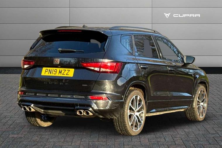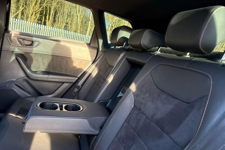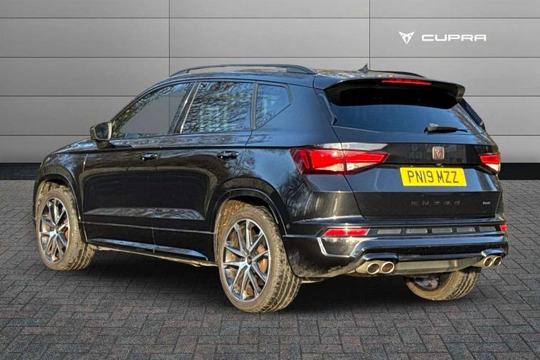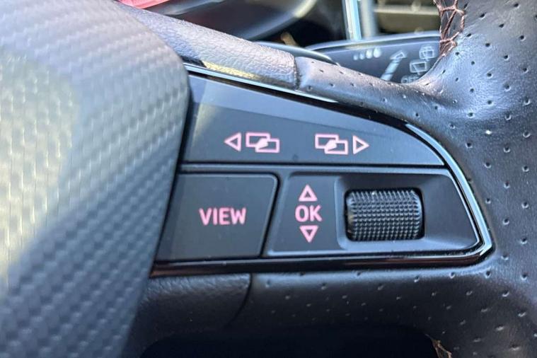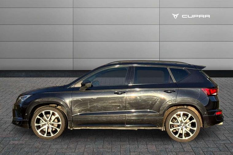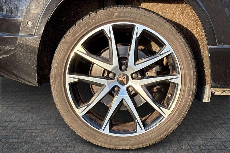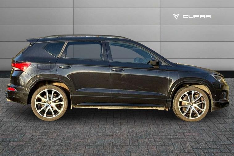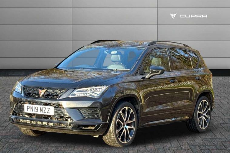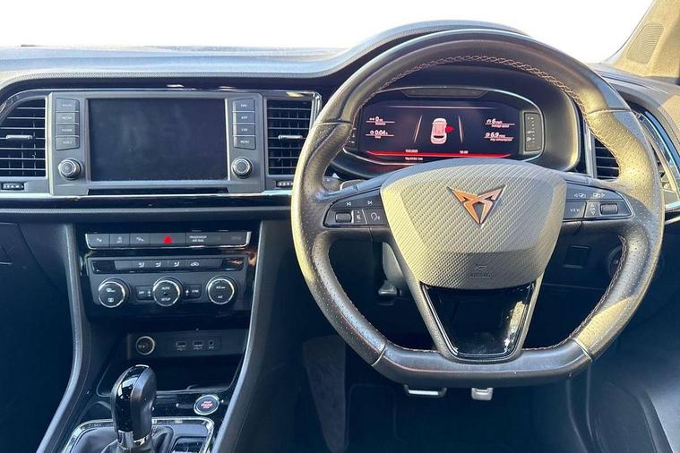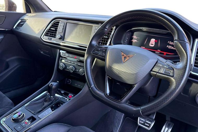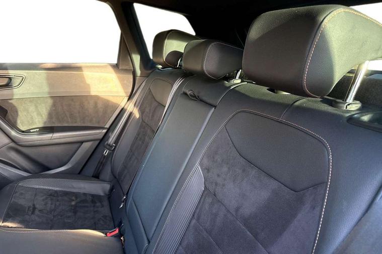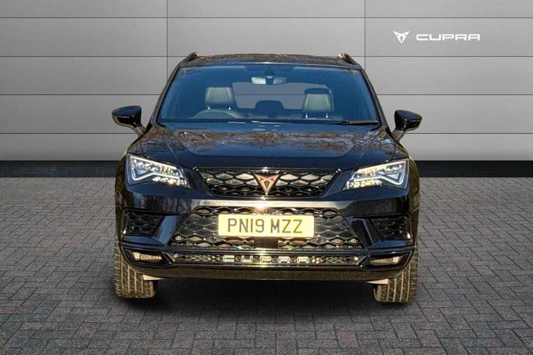 'Lights On' Reminder warning buzzer, 8.0" colour touchscreen with proximity sensor, Cruise control, Digital clock, Digital cockpit, Front assist city emergency braking and pedestrian protection, Full Link Smartphone Integration with Mirror Link, Apple Car Play, Google Android Auto, Low fuel warning light, Navigation system (incl. media system plus) - Dynamic route guidance feature with 3D Map display and 3D emblematic buildings, Outside temperature gauge, Park assist system with steering assist, Progressive power assisted steering, Rear view camera, RPM counter, SEAT Drive profile CUPRA, Self parking functionality (includes front and rear parking sensors), Top view camera, Trip computer, Wireless Smartphone charger, CUPRA sport suspension, XDS electronic differential lock, 10 GB hard disk, 2 additional USB ports in rear with storage net, 2 USB ports, 2x SD card slot, 8 Speakers, AM/FM radio, Aux-in socket, CD player, DAB digital audio broadcast, High resolution colour driver display, SEAT USB media cable, Steering wheel mounted audio/phone controls, Armrest with air outlet in rear, Automatic headlight adjustment, Black roof rails, Body colour door mirrors and handles, Body coloured wheel arch extensions, Dark tinted rear windows, Door mirrors with welcome CUPRA light silhouette, Electric adjustable/heated/folding door mirrors, Front and rear electric windows, Full LED headlights, Gloss black side window surrounds, High gloss black grille, Illuminated aluminium front door sill with CUPRA logo, LED daytime running lights, LED tail lights, Rear fog lights, Rear spoiler, Rear wash/wipe, Visible dual exhaust pipes, 12V power point front, 60/40 split folding rear seat, Adjustable front armrest with storage compartment, Advanced multicolour ambient light with LED interior light and LED illuminated glovebox, Alcantara upholstery + sports seats, Aluminium pedals, Ambient spot lighting and front footwell illumination, Black roof lining, Child seat ISOFIX attachment with rear outer seats includes top tether, Chrome dashboard detailing, Driver and passenger sun visor, covered and illuminated mirror, driver sun visor with card holder, Dual zone climate control, Four cargo rings in the boot, Front courtesy reading lights, Front cupholders, Front seat back storage pockets, Gear shift indicator, Height adjustable driver's seat, Height adjustable front headrests, Height adjustable passenger seat, Illuminated boot, Instrument lighting with brightness control, Rear armrest and easy back seat release mechanism from boot, Rear reading lights, Sports leather steering wheel + gearshift, Steering wheel gearshift paddles, Storage box under drivers seat, Convenience pack - Ateca, ABS, Active front headrests, Black brake callipers with CUPRA logo, Driver/Front Passenger airbags, Drivers knee airbag, Electronic parking brake with auto hold, Electronic stability control, Front and rear seatbelt reminder, Front passenger airbag deactivation, Front side airbags, Hill hold control, Tiredness recognition system, Traction control, Twin curtain airbags, Tyre pressure monitoring system, Central locking fuel filler cap, Keyless entry and go, Locking wheel bolts, Perimeter alarm with interior monitoring, Power locking and remote control with two foldable keys and opening boot selector, 19" Exclusive diamond cut alloy wheel,