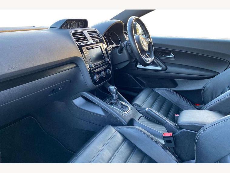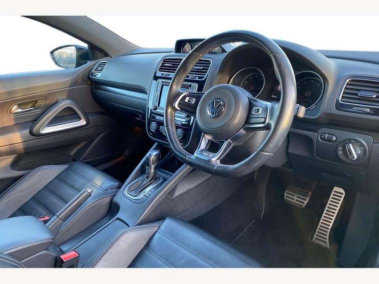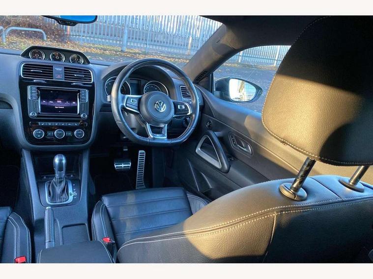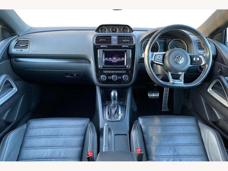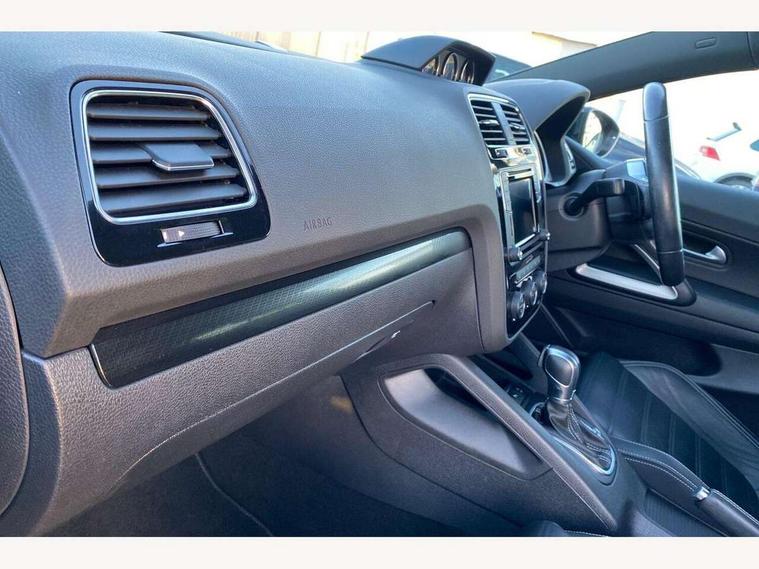'Lights On' Reminder warning buzzer, Bluetooth system, Discover navigation system with 6.5" colour screen + radio/CD player and aux in, Exterior temperature gauge, Flat tyre indicator, Front and rear parking sensors, Multi function display colour screen, Multifunction computer - Highline, Rev counter, Service interval indicator, Speed sensitive variable PAS, DAB Digital radio, MDI with USB/iPod connection cables, Volkswagen media control, Auto dimming rear view mirror/rain sensor, Automatic activation of hazard warning lights, Body colour door handles, Body colour door mirrors with integral indicators, Body coloured bumpers, Coming home function, Dusk sensor + auto driving lights, Electric front windows, Electrically heated + operated door mirrors, Front fog lights, Intermittent rear wash/wipe, LED rear lights, Range adjustable headlights, Rear roof spoiler, 12V socket in luggage compartment, 2 bag hooks in luggage compartment, 2 cupholders, 2 rear head restraints, 2 Zone electronic climate control with automatic air recirculation, 3 spoke multifunction leather steering wheel with radio controls + paddle shift, 4 lashing points on luggage floor, 50/50 split folding rear seat backrest, Aluminium pedals, Black roof lining, Dust/pollen filter, Easy entry slide seats (access to rear seats), Front + rear carpet mats, Front centre armrest with storage compartment, Front footwell illumination, Front reading lights, Height/reach adjust steering wheel, Illuminated vanity mirrors, Interior light with delay, Isofix Preparation 2 Rear child seats, Leather gear knob, Leather handbrake grip, Lockable/illuminated air conditioned glovebox, Luggage compartment cover, Luggage compartment lighting, Sports front seats, Storage compartments in doors, Vienna leather heated seats+electric drivers lumbar + front pass lumbar adjust, Styling pack - Scirocco R Line/GTS, 2 rear 3 point safety belts, 2x3 point front seatbelts with pre-tensioners, ABS+EBD+Brake assist, Door open warning reflectors, Driver/Front Passenger airbags, Driver/Passenger whiplash optimised head restraints, ESP with EDL + ASR, Front and rear curtain airbags, Front seat side impact airbags, Hill hold function, Manual passenger airbag deactivation function, Seatbelt warning, Two tone horn, Alarm with interior protection, Electronic engine immobiliser, Remote central locking with 2 remote folding keys, Brushed aluminium instrument surrounds, Carbon look decorative inserts, Steel space saver spare wheel,