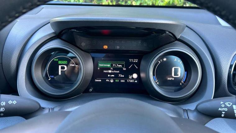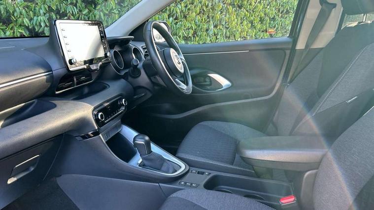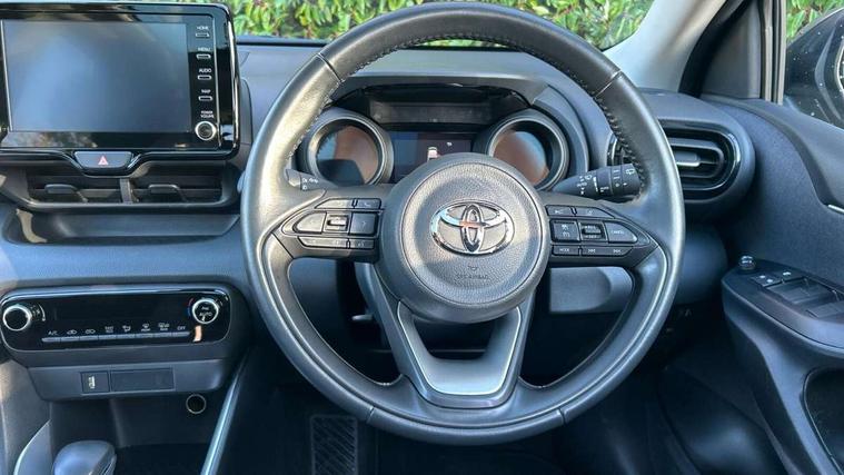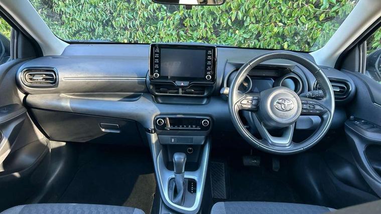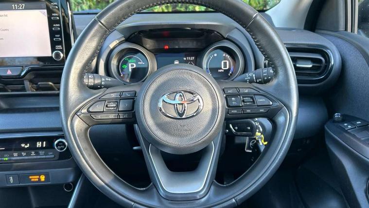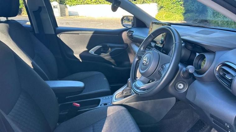 Adaptive cruise control, Adjustable speed limit with speed warning, Bluetooth connectivity, Colour binocular inspired displays with digital speedometer, E-call, Electric power steering, Hybrid energy display, Multi information display switches on steering wheel, Reversing camera, Smartphone integration with Apple CarPlay and Android auto, Tailgate, Voice recognition, Vehicle Stability Control (VSC), 4 speakers, 8" Multimedia display touch screen, USB connection, Acoustic windscreen glass, Auto windscreen wipers, Automatic headlights, Body coloured door mirrors, Electric adjustable heated door mirrors, Follow me home headlights, Front auto power windows with anti jam protection, Full LED rear lights, LED daytime running lights, LED front fog lights, LED front light guide, LED Headlights, LED High mounted stop lamp, LED Indicators, LED rear light guide, Manual headlight levelling, Painted chequered front grille, Rain sensor, Rear auto power windows with anti jam protection, Rear privacy glass, Rear side wing doors, Rear spoiler, Rear wiper, Shark fin antenna, Turning signal integrated indicators in door mirrors, Variable front intermittent wipers, 3 adjustable rear headrests, 3 spoke leather steering wheel, 60/40 split folding rear seat, Active headrests, Adjustable boot height, Auto air conditioning, Coat hooks in rear grab handles, Cup holders (2 front & door), Data Communication Module (DCM) connected services, Fabric upholstery, Front armrest, Glovebox, Grey roof lining, Height adjustable driver's seat, Isofix seat fixing, Leather gearshift, Pollen filter, Shopping bag hooks, Single front passenger seat, Tilt/telescopic steering column, 3 point seatbelts on all rear seats, ABS+EBD+Brake assist, Electronic parking brake, Emergency brake light system (EBS), Front passenger airbag on/off switch, Front seatbelt reminder, Hill start assist control (HAC), Rear child proof door locks, Rear seat belt reminder, Supplemental Restraint System (SRS) 8 airbags: Driver & passenger's airbags, dual side curtain airbags, side impact airbags, front centre airbag, Toyota Safety Sense 2, Precollison + Night time Pedestrian & Cyclist Detection, Lane Trace Assist, Auto High Beam, Intelligent ACC & Road Sign Assist, Tyre pressure warning system, 2x Master key, Alarm/immobiliser, Remote powered central double locking doors, Soft touch instrument panel, Space saver spare wheel,