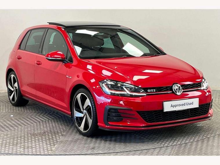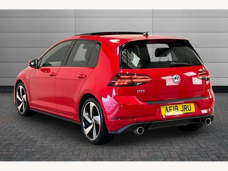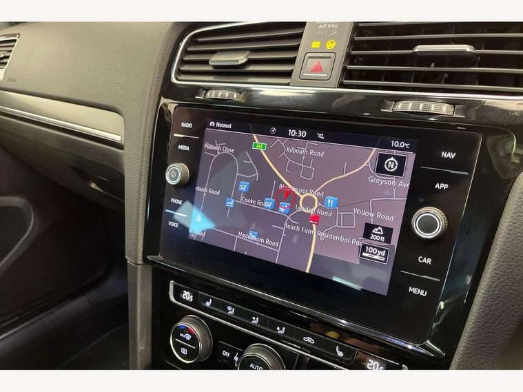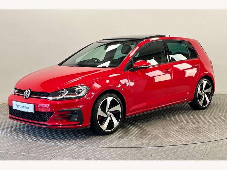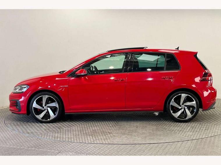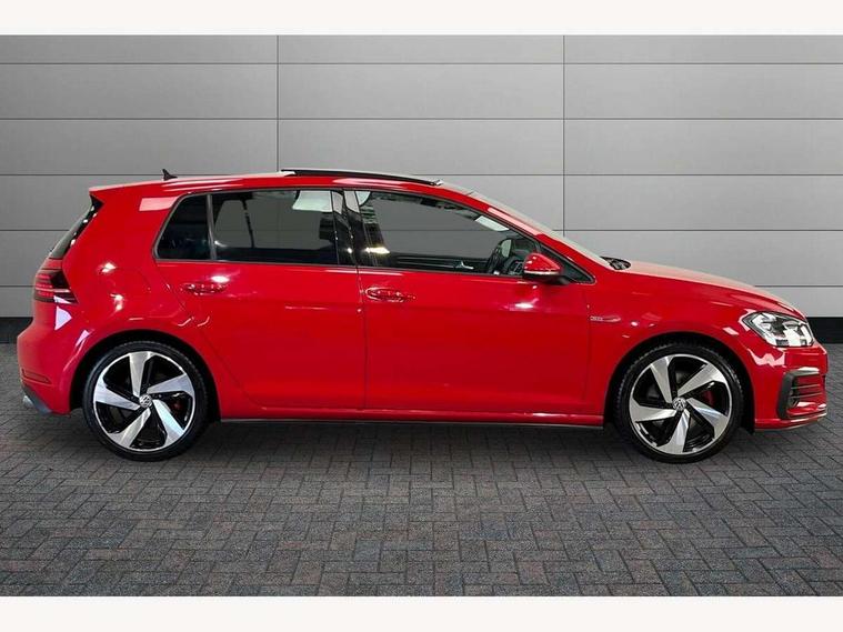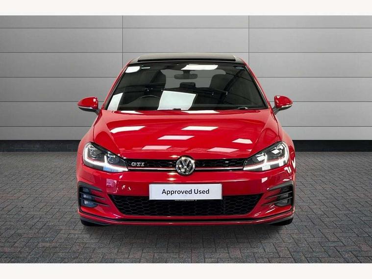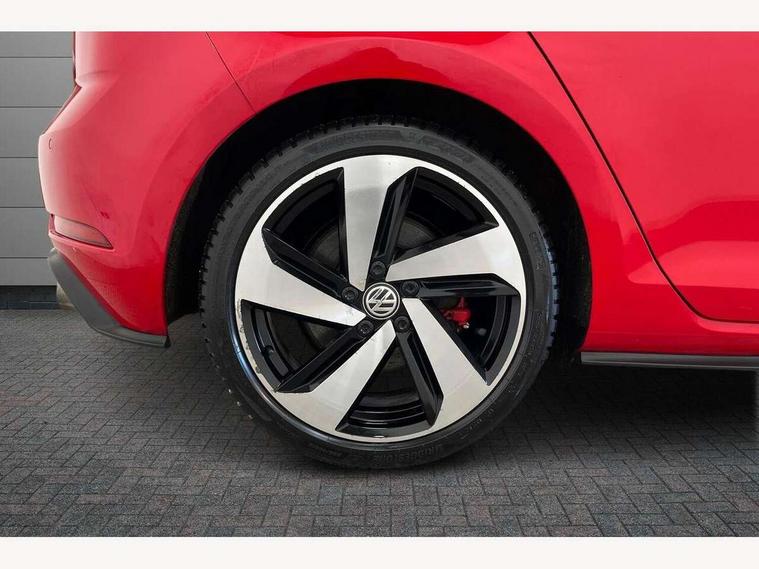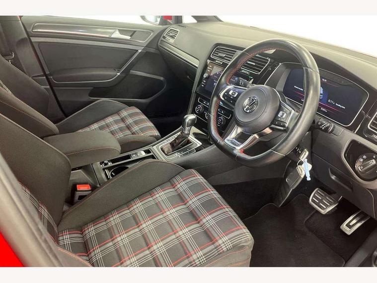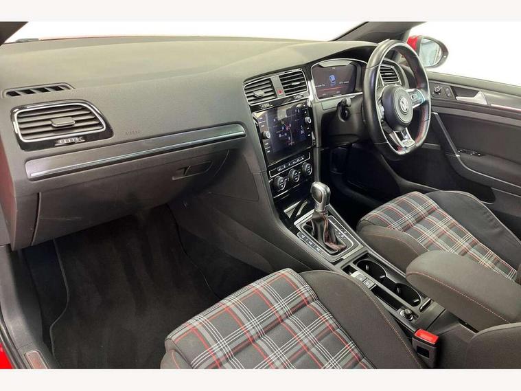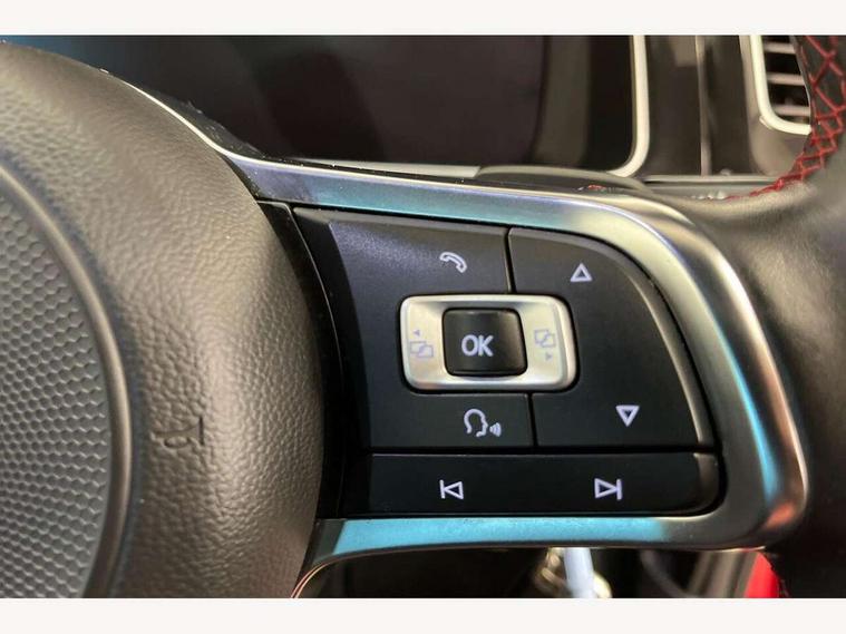 'Lights On' Reminder warning buzzer, 8" touch screen, Adaptive Cruise Control with pedestrian detection and speed limiter, App-Connect, Bluetooth hands free telephone connection, Brake pad wear indicator warning light, Driver alert system, Driver profile selection, Exterior temperature gauge, Front assistant collision mitigation, Instrument cluster in white, Multifunction computer, Progressive power assisted steering, Rev counter, Trip and service interval display, Ultrasonic front and rear optical and audible parking sensors, Warning buzzer and light for front seatbelts unfastened, Anti-tramp function, Lowered sports suspension, XDS plus electronic differential lock, CD/MP3/WMA, USB and SD card reader, aux-in, Composition media system, DAB Digital radio, 3D-LED-SBBR with sweeping indicator, Auto dimming rear view mirror, Automatic coming/leaving home lighting function, Automatic headlights, Black rear diffuser, Body colour door handles, Body colour door mirrors, Body colour rear roof spoiler, Body colour sports bumpers, Electric front windows, Electric rear windows, Electrically adjustable and heated door mirrors, Heated rear windscreen, Honeycomb radiator grille - black, LED daytime running lights, LED front fog lights, LED rear lights, Rain sensor, Rear windscreen washer and wiper with interval delay, Twin exhaust tailpipe, 12V socket in luggage compartment, 3 rear headrests, 3 spoke steering wheel, 60/40 split folding rear seat, Air conditioning - 2 zone electronic climate control, Bag hook in luggage compartment, Black headlining, Boot lashing points, Cooled glovebox, Courtesy light delay, Cover for storage compartment in centre, Dust/pollen filter, Front + rear carpet mats, Front centre armrest with storage box and rear air vents, Front passenger seat height adjust, Front seat back storage pockets, Gearshift paddles, Grab handles, Height adjustable driver's seat, Height/reach adjust steering wheel, Illuminated door sills, Illuminated vanity mirrors, Isofix preparation for 2 rear child seats, Load through provision with rear centre armrest and cupholders x2, Luggage compartment cover, Luggage compartment lighting, Multi-function leather steering wheel with red stitching, Overhead storage box, Stainless steel pedals, Storage box in luggage compartment, Storage compartments in doors, Sun visors, Variable boot floor, height adjustable and removable, Ambient lighting pack - Golf, Mirror pack - Golf, 3 point height adj front seatbelts + pretensioners, 3 rear 3 point seatbelts, ABS, Automatic post collision braking, Child locks on rear doors, Driver/Front Passenger airbags, Driver/Passenger whiplash optimised head restraints, Drivers knee airbag, Electronic parking brake with auto hold, ESP with EDL + ASR, Front and rear curtain airbags, Front passenger airbag deactivation, Front side airbags, Pre crash system, Red brake calipers, Tyre pressure monitor, Alarm with interior protection, Electronic engine immobiliser, Remote central locking with 2 remote folding keys, Chrome-plated light switch surround, Honeycomb black decorative inserts, Piano black centre console, Space saver spare wheel,