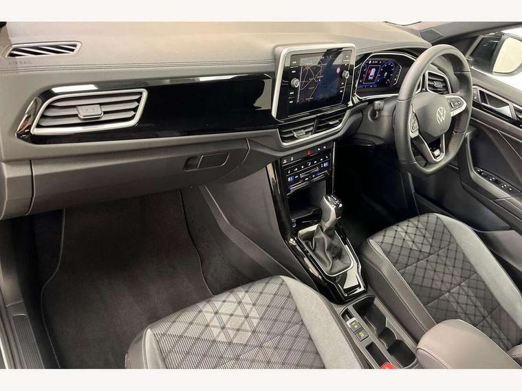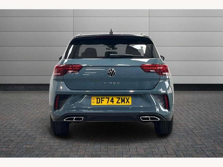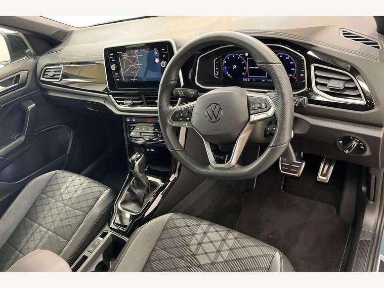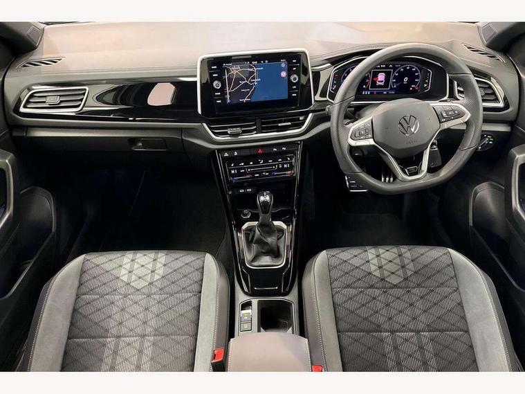 10.25" Digital cockpit pro, Advanced driver attention and drowsiness monitor, Emergency call service, Lane keeping system Lane Assist, Mobile phone interface, Modified key software - reduce switch off time for key status change to Long no motion, Online services, Park assist including front and rear parking sensors, Service interval indicator, Tailgate/trunk lid release from outside, Think blue trainer driver tips and journey analysis, Warning sound and light for front seatbelts unfastened, Wireless app connect, Battery regeneration during braking, Start/stop function with battery regeneration, DAB Digital radio, Diversity antenna for FM reception, Front and rear 6 speakers, Music playback - MP3, WMA and AAC files, Premium USB cable in choice of either Apple or Android smartphone compatibility, SD card slot, Simultaneous pairing of 2 compatible mobile devices, Title and cover art display, We Connect and We Connect Plus functionality, Auto dimming interior rear view mirror, Automatic hazard lights activation under emergency braking, Automatic headlight control with LED separate daytime running lights with coming/leaving home function, Body coloured exterior mirror housings and door handles, Electrically adjustable and heated door mirrors, Extended roof spoiler, Exterior mirrors aspherical on driver side, convex on front passenger side, External USB type C socket and charging sockets, Front windscreen wiper with intermittent wipe and 4 position delay, Heated rear window, LED 3rd brake light, LED rear combination lamps, LED rear number plate lights, Power windows with comfort operation and circuit breaker, Privacy glass for rear side windows and rear window, R-Line design body coloured bumpers, Rain sensor, Rear exhaust tailpipe, Rear fog light on one side and reversing lights on both sides, Rear side wing doors, Rear wash/wipe with intermittent wipe setting, Remote electrically foldable door mirrors, puddle lights and reverse activated passenger's door mirror, 12V power socket in centre console, 3 rear head restraints, 3 seat bench in 2nd row, 4 load lashing points in luggage compartment, Air care climatronic air conditoning system with active combination filter and 2-zone temperature control, Black roof lining, Chrome plated decorative trims, Chrome plated radiator grille inserts, air vent surrounds and light switch surrounds, Door and side trim panel with leatherette insert, Front + rear carpet mats, Front centre armrest, Front cupholders x 2, Front footwell illumination, Front reading light, Front scuff plates with R Line logo, Front seat back storage pockets, Glove compartment door with light, Instrument lighting, white adjustable panel illumination, Interior ambient lighting and surround lighting, Interior light delay, Isofix child seat preparation, Leather gearshift handle, Load-through provision with cup holder when folded down ('Unsplit rear seat bench, split folding backrest, with centre armrest), Luggage compartment lighting, Single front passenger seat, Stainless steel pedals, Storage compartment in left and right luggage area, Storage compartment in rear doors, Storage compartments in driver and front passenger doors, Sunvisors with illuminated vanity mirrors, Variable boot floor, height adjustable and removable, Driver assistance pack without proactive passenger protection - T-Roc, 3 point height adj front seatbelts + pretensioners, 3 point seatbelts in outer rear with ECE label, ABS, Child locks on rear doors, City emergency braking and pedestrian monitoring, Driver and front passenger airbag with front passenger airbag deactivation, Driver and front passenger safety-optimised head restraints, Drivers seatbelt reminder, Electronic parking brake, Electronic Stability Control (ESC) inc EDL (Electronic Differential Lock) and ASR (Traction Control), Front and rear passengers curtain airbag system including front side airbags, Hill start assist, Predictive pedestrian protection, Rear disc brakes, Two tone horn, Tyre pressure loss indicator, Volkswagen roadside assistance, Piano black decorative inserts in dashboard and front door trim panels, Trims for alloy wheels,